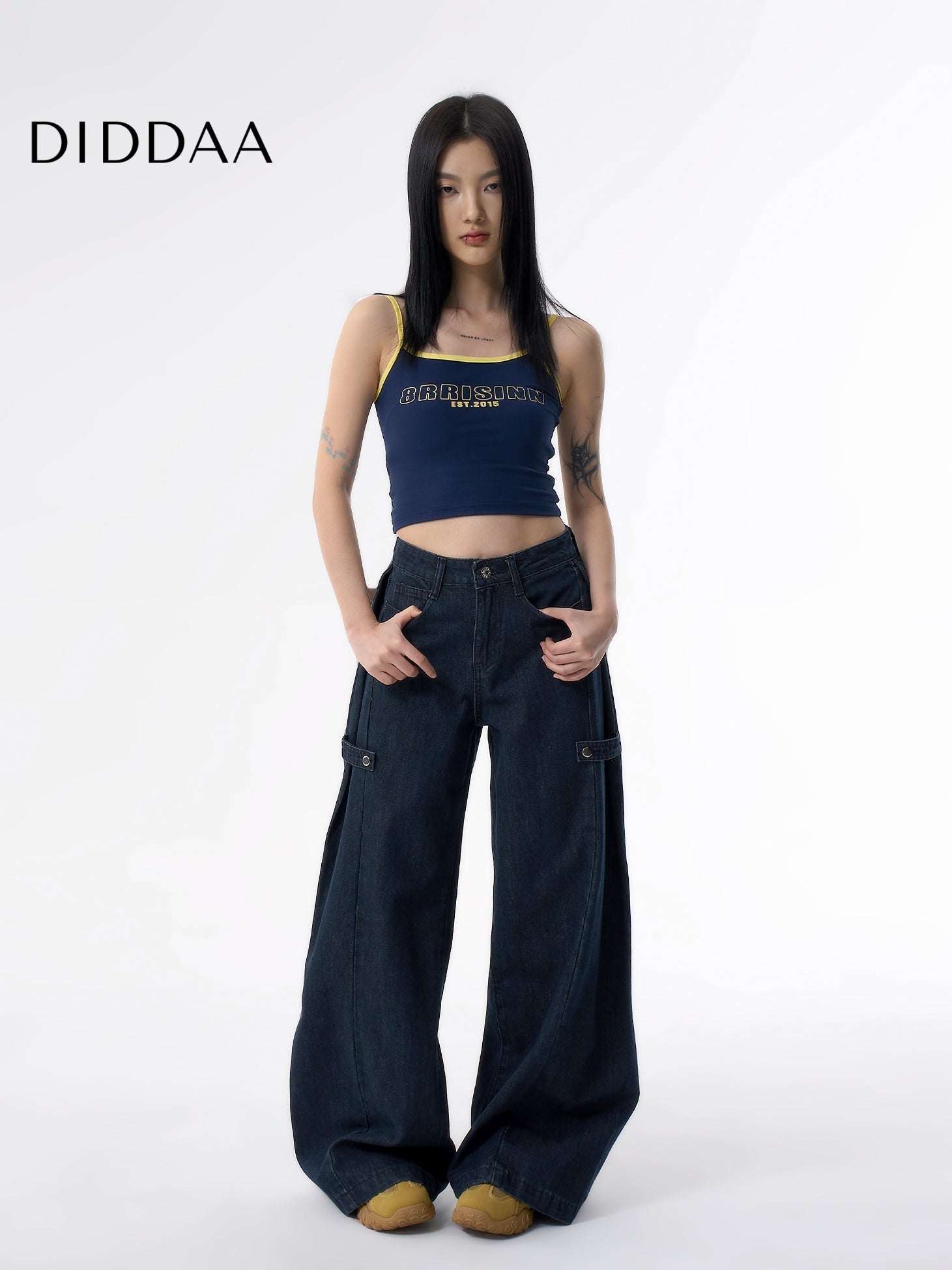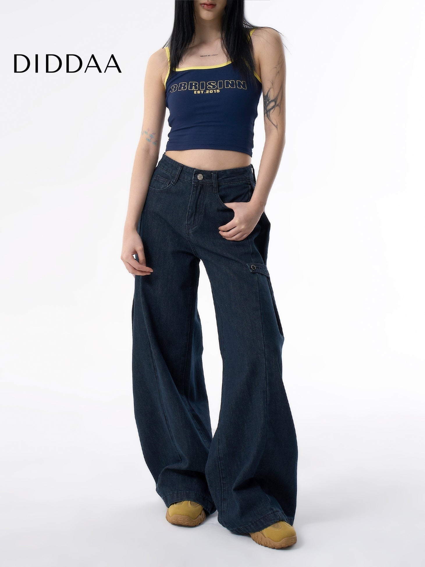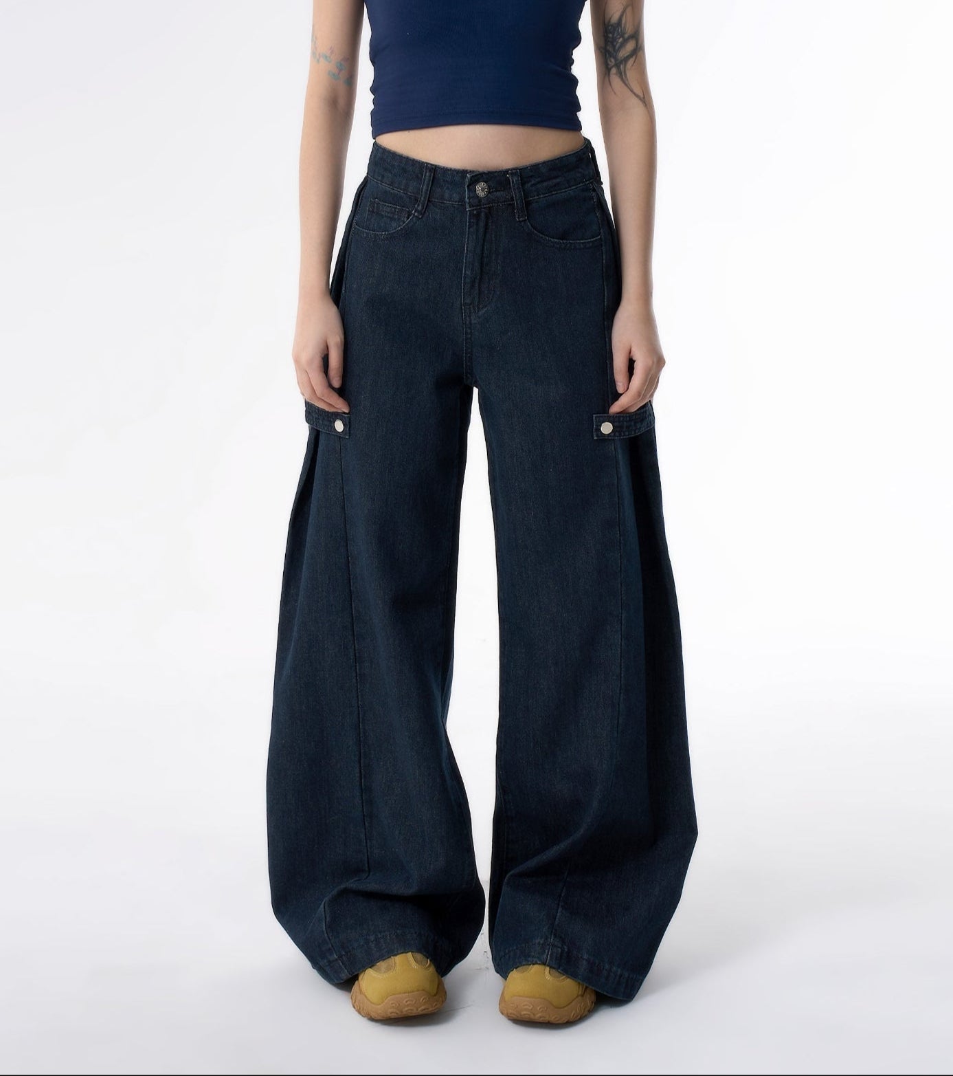 Light Blue Loose Fit Wide-Leg Jeans for Women