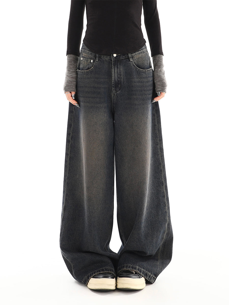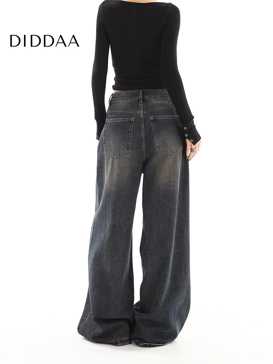 Light Blue Distressed High-Waisted Wide-Leg Jeans