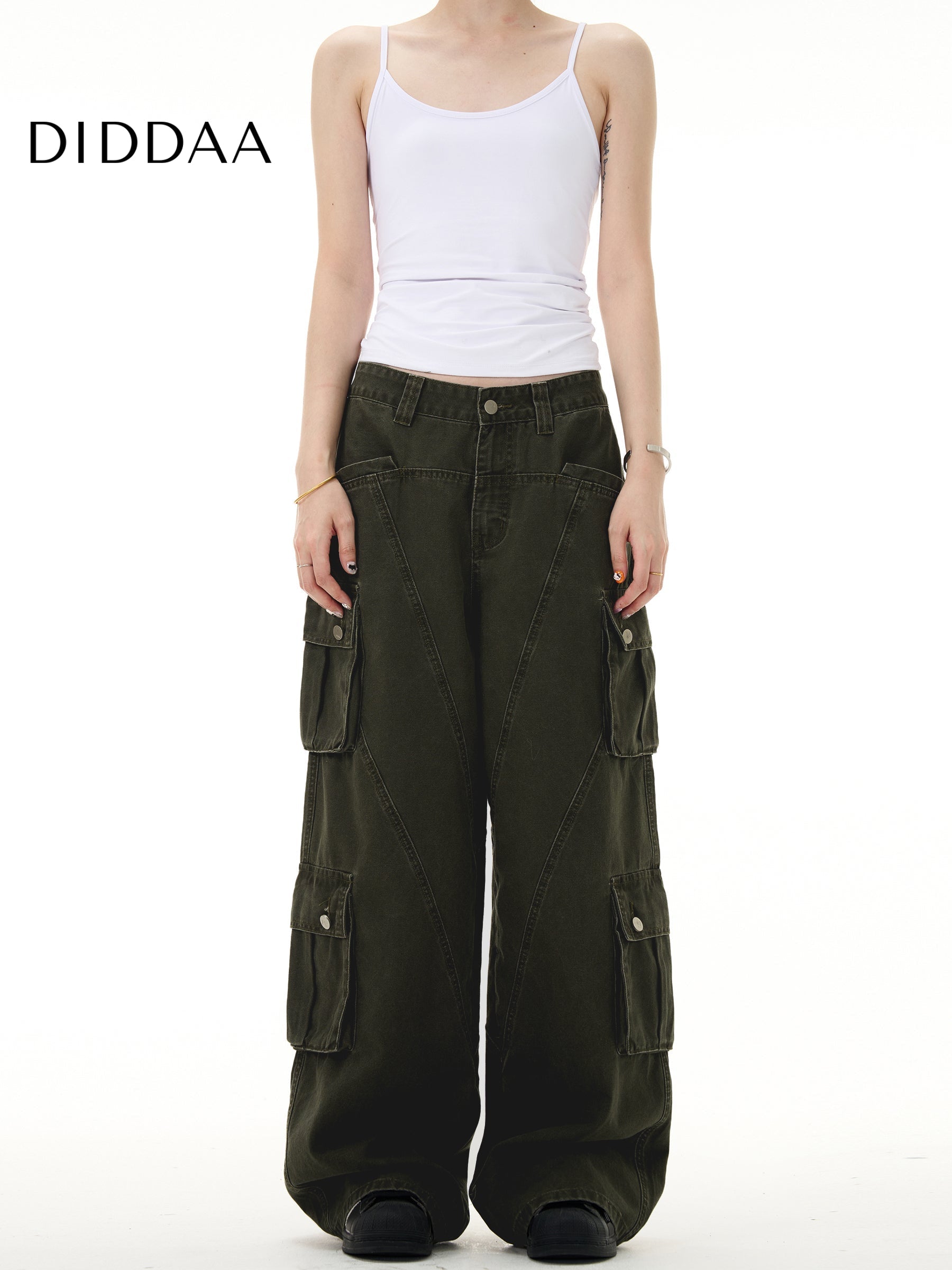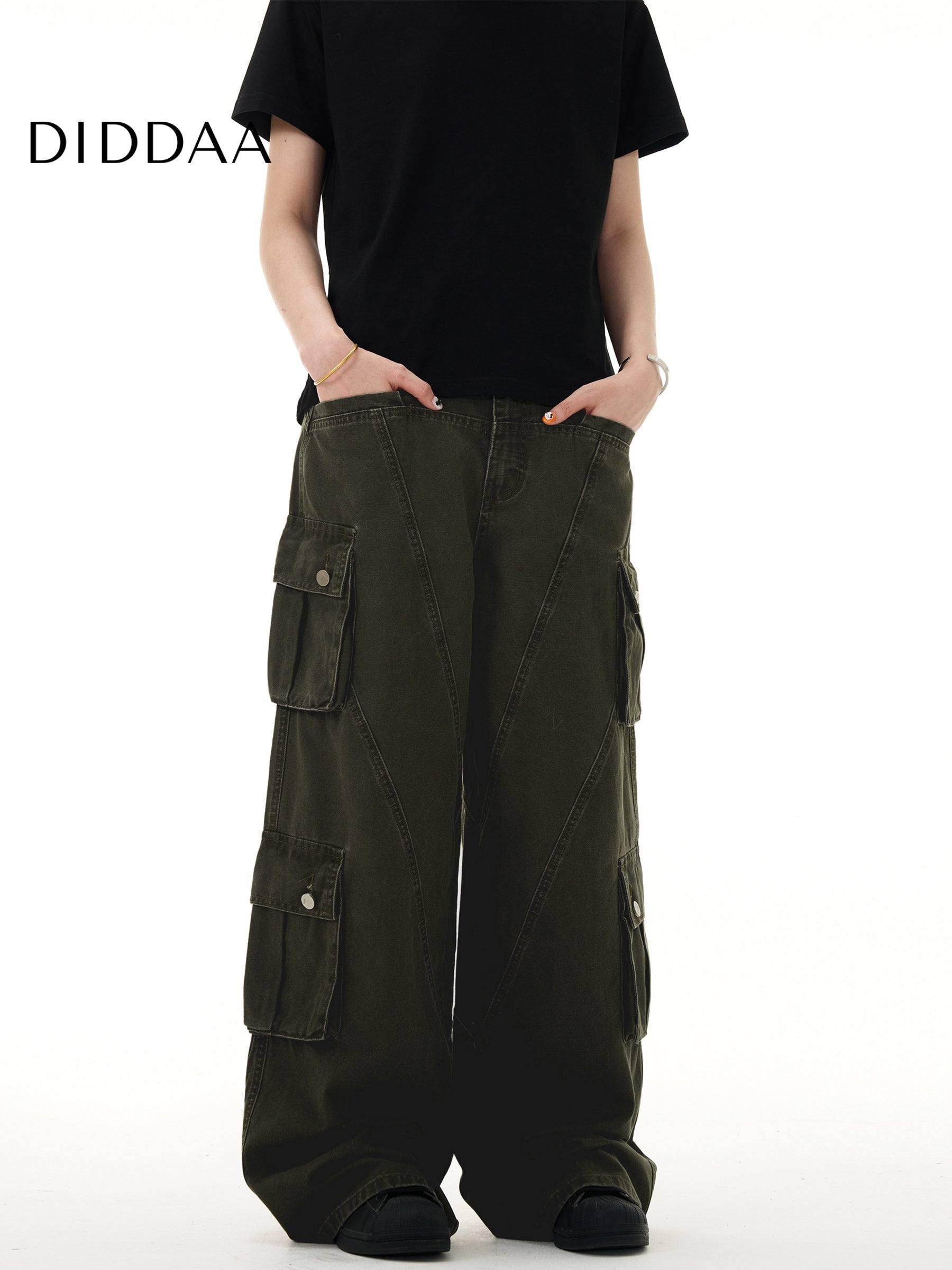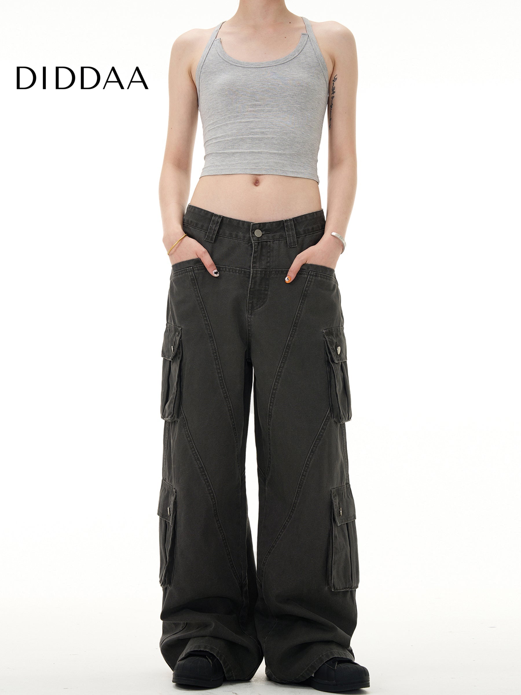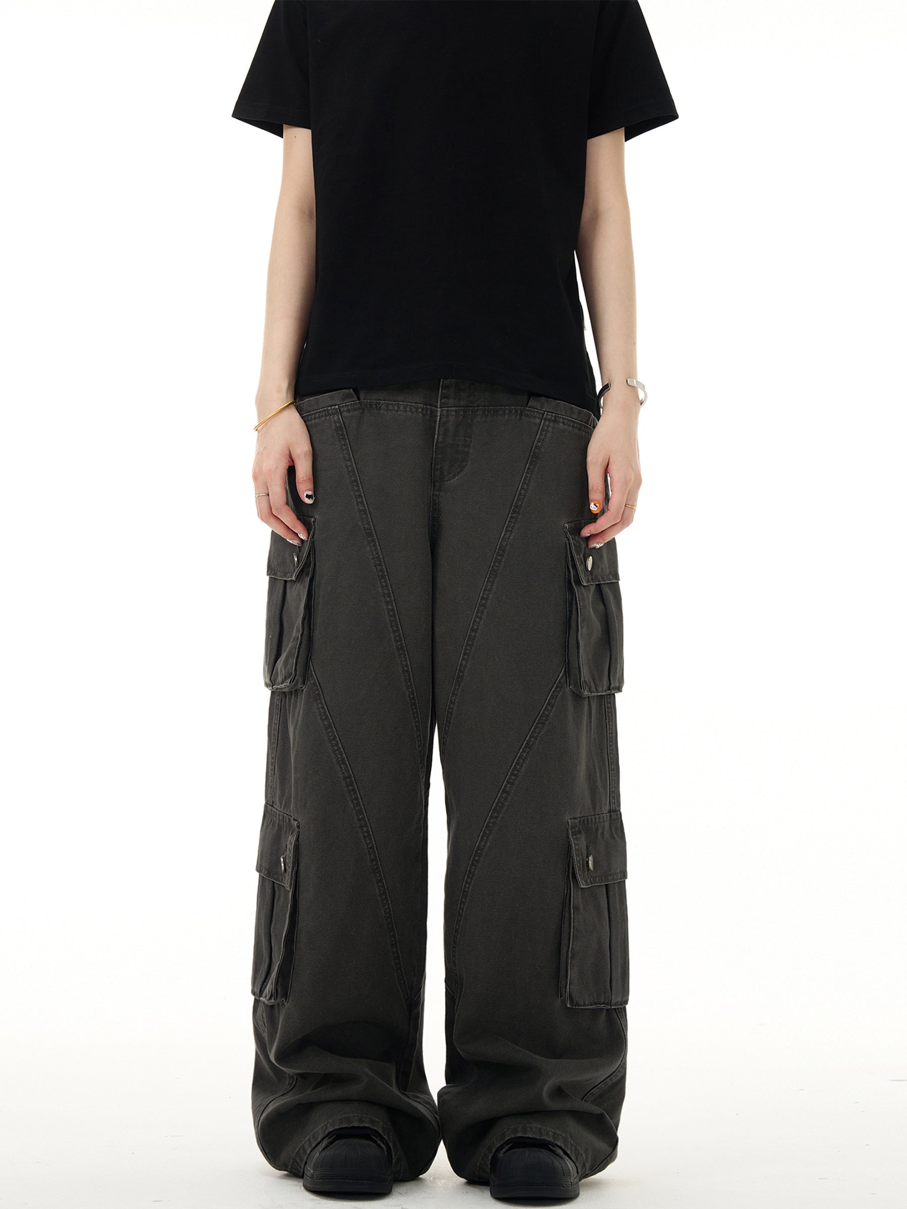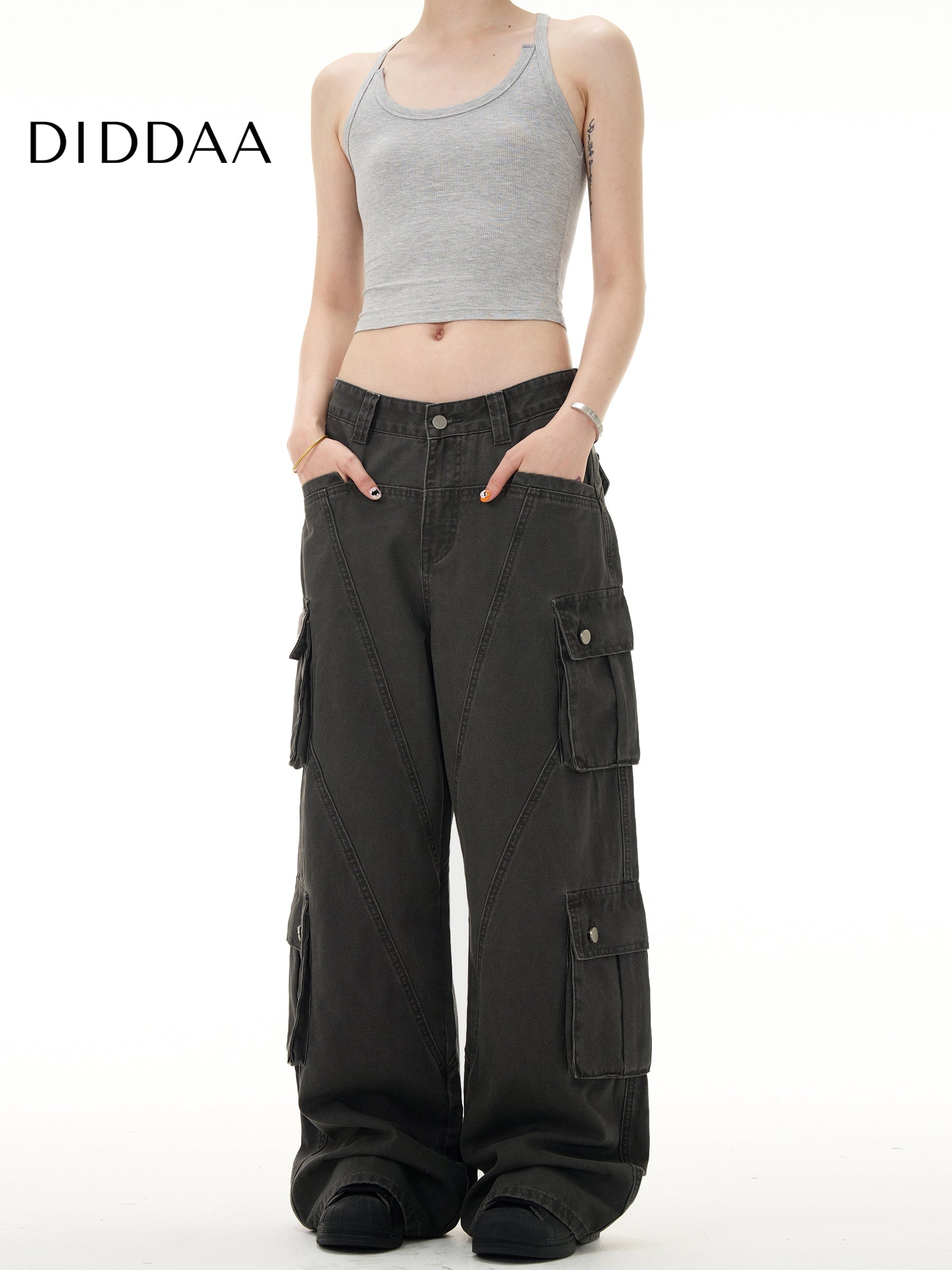 Beige Deconstructed Cargo Jeans Multi-Pocket Loose Fit