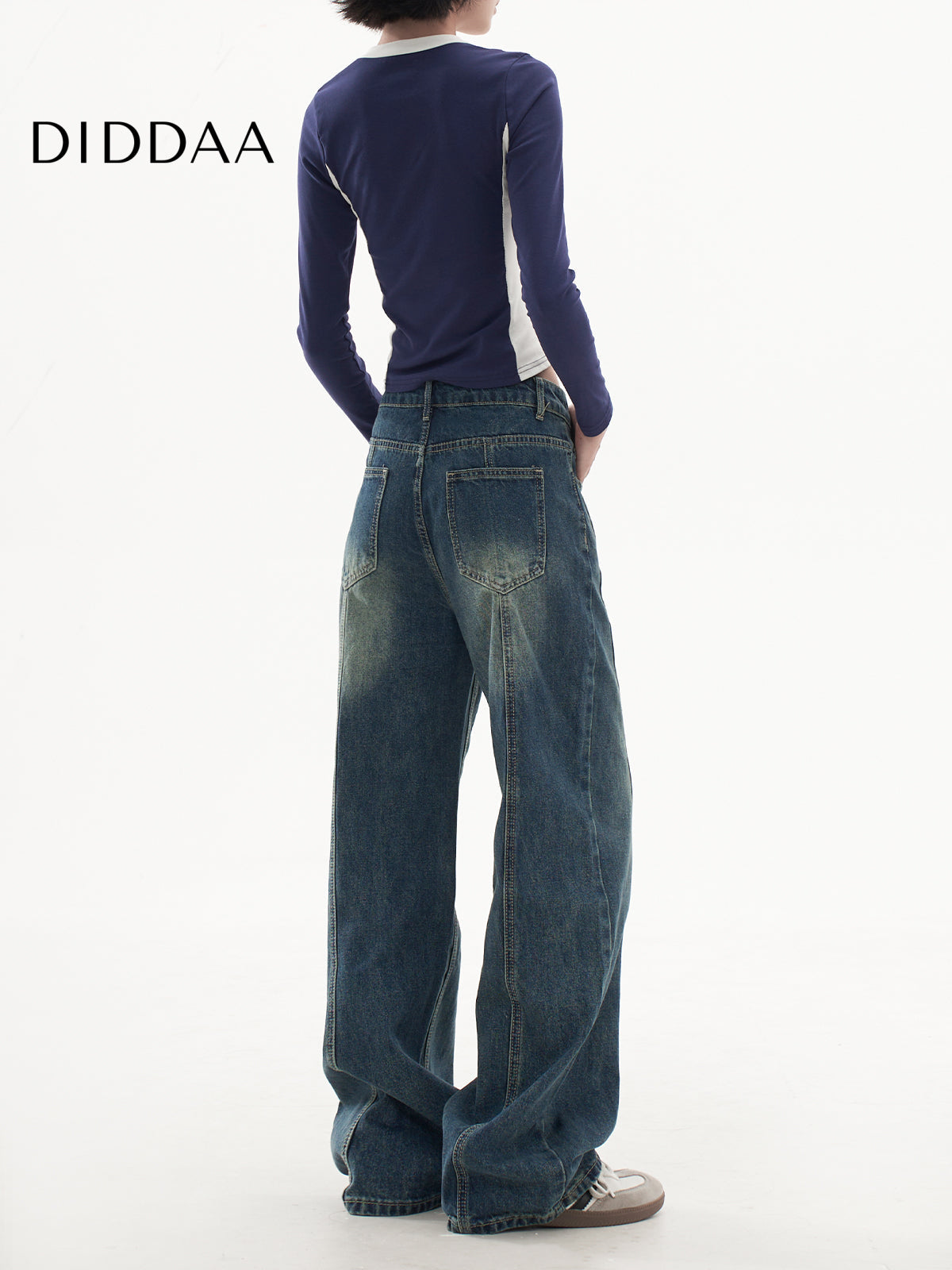 Beige Draped Design Wide-Leg Jeans Women's Spring 2025