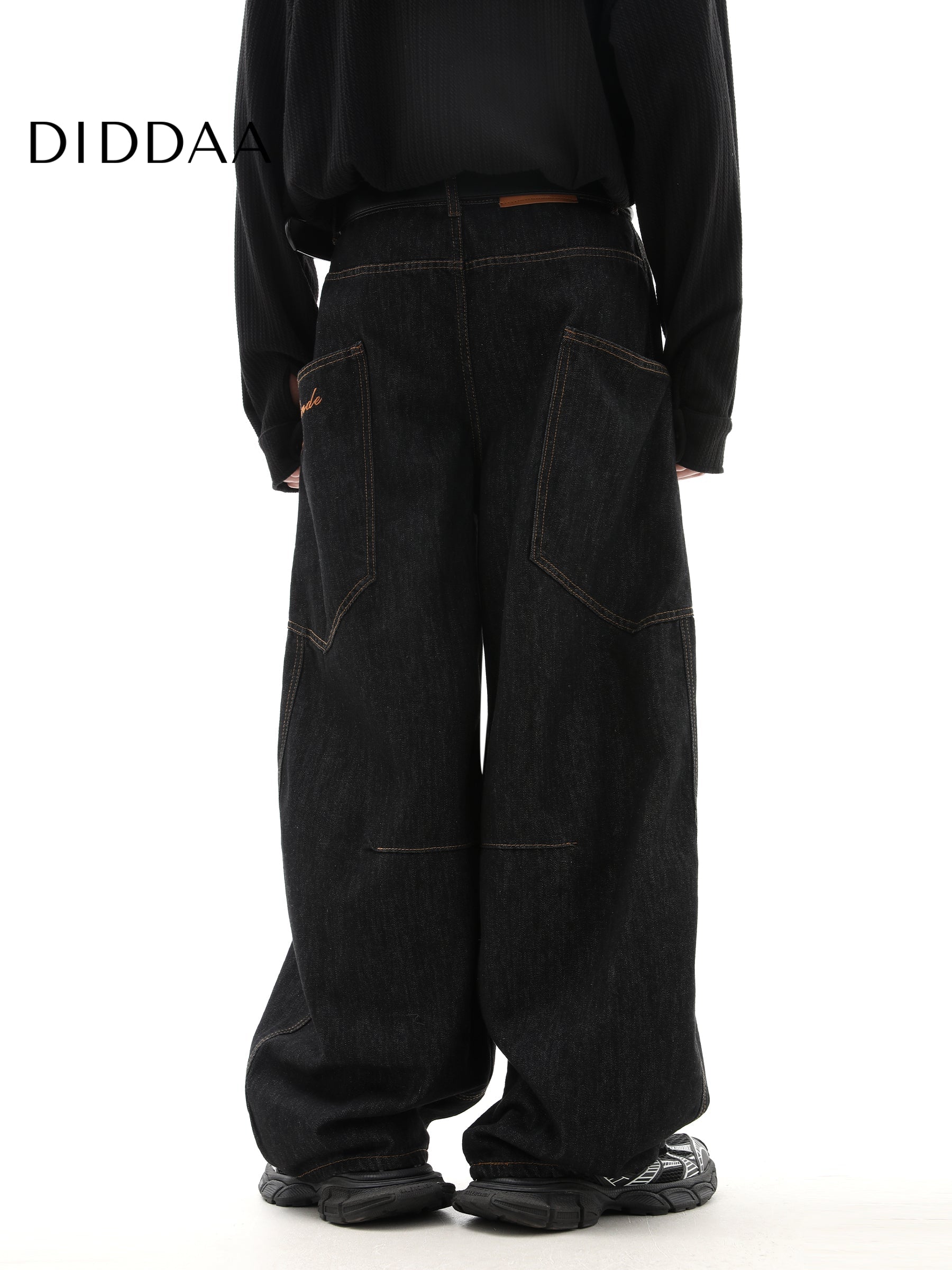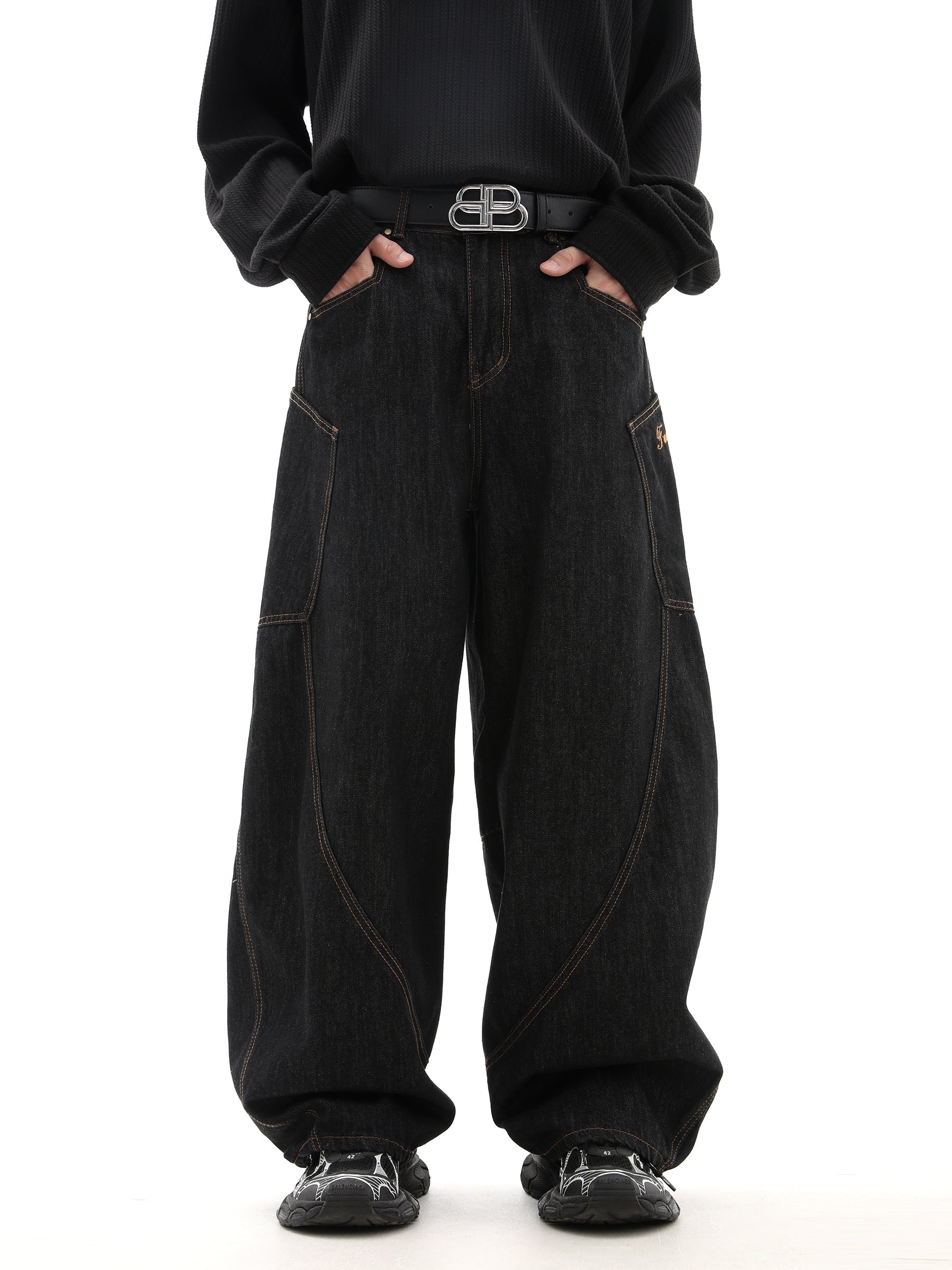 Beige Loose Fit Scimitar Wide-Legged Jeans
