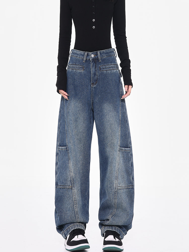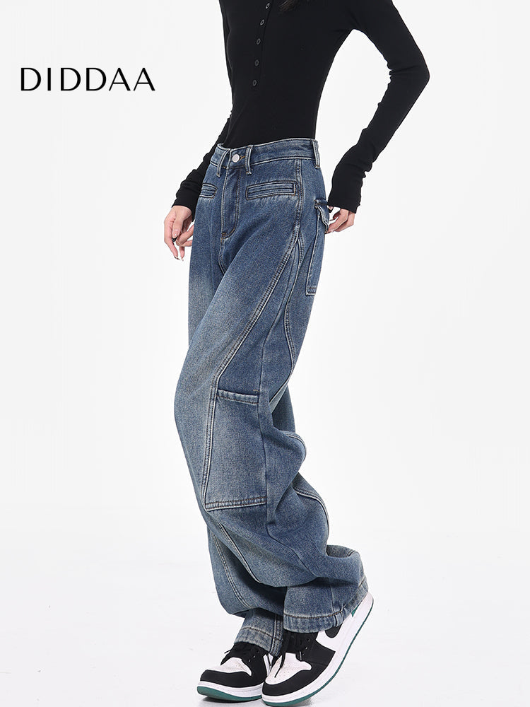 Beige Loose Fit Vintage Cargo Wide-Leg Pants