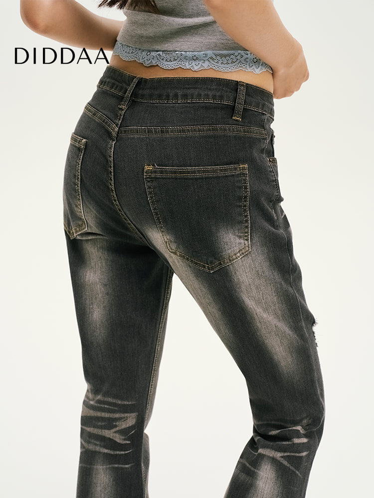 Black and Gray Frayed Bootcut Jeans for Women