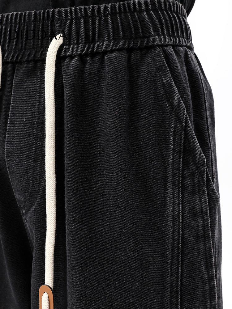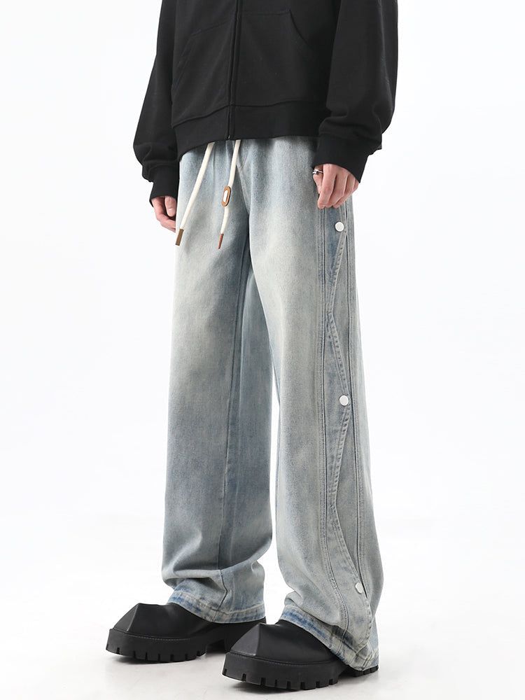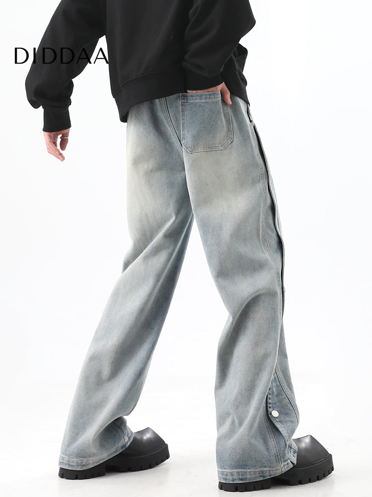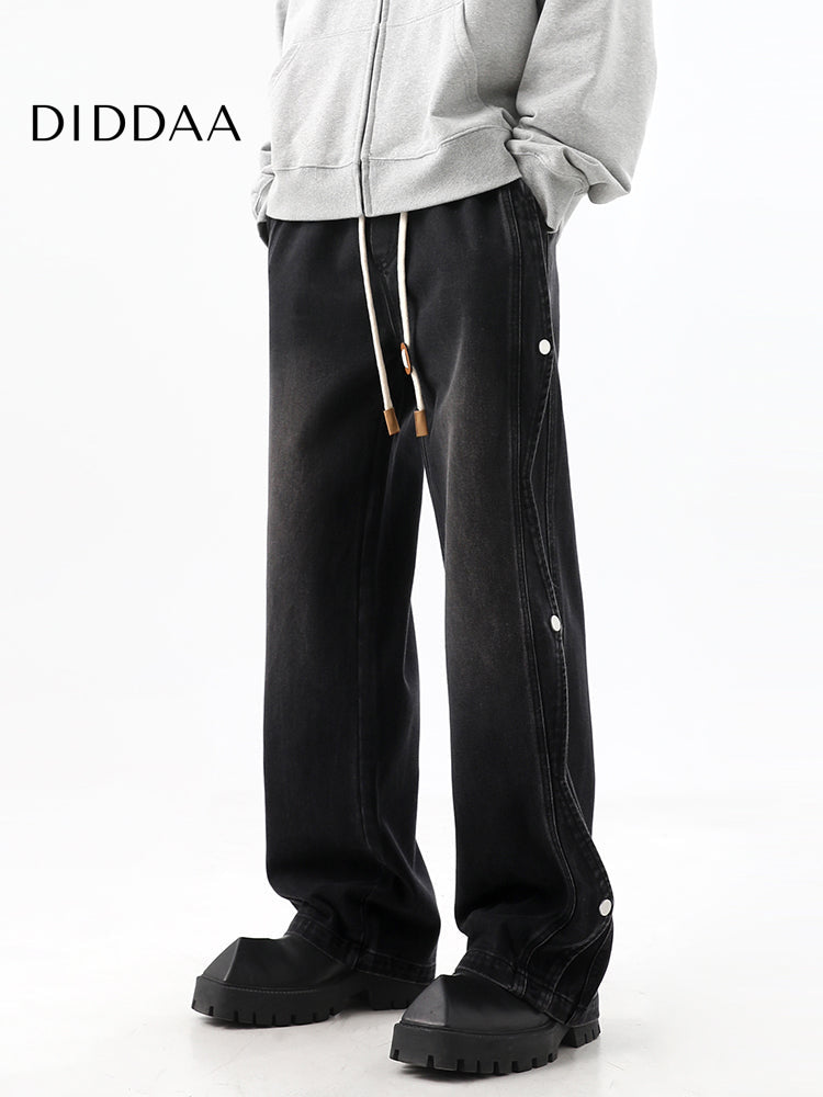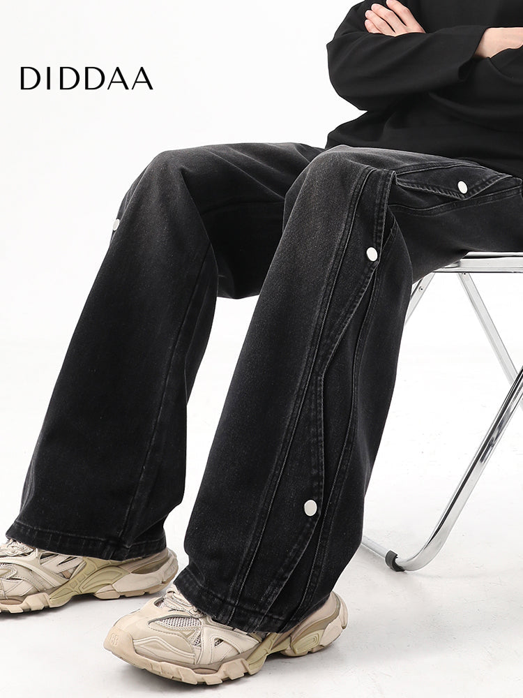 Black Deconstructed Loose Wide-Leg Jeans for Men