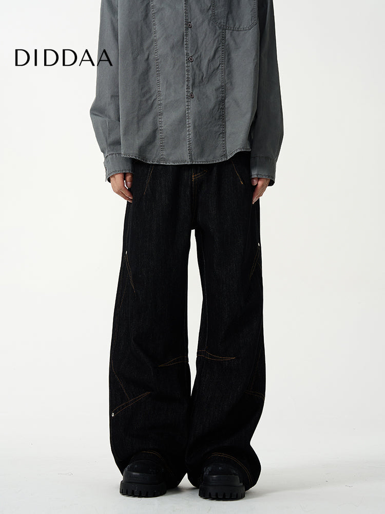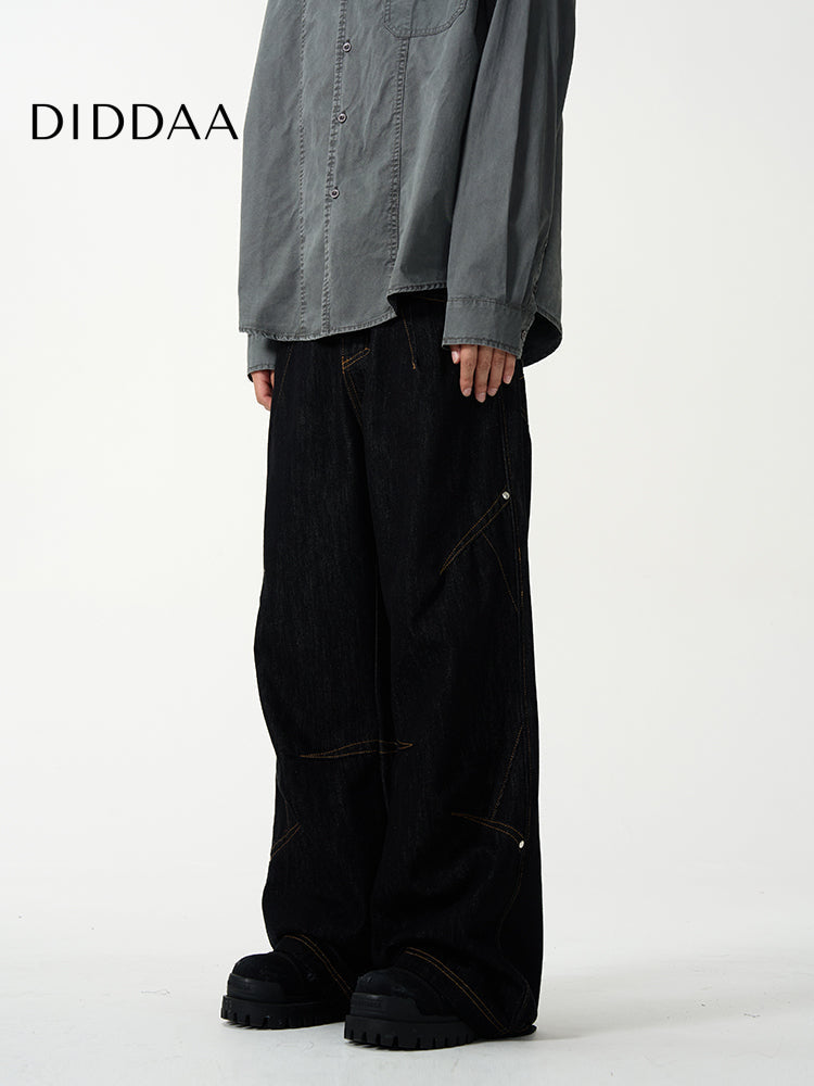 Black Deconstructed Straight Leg Jeans for Men