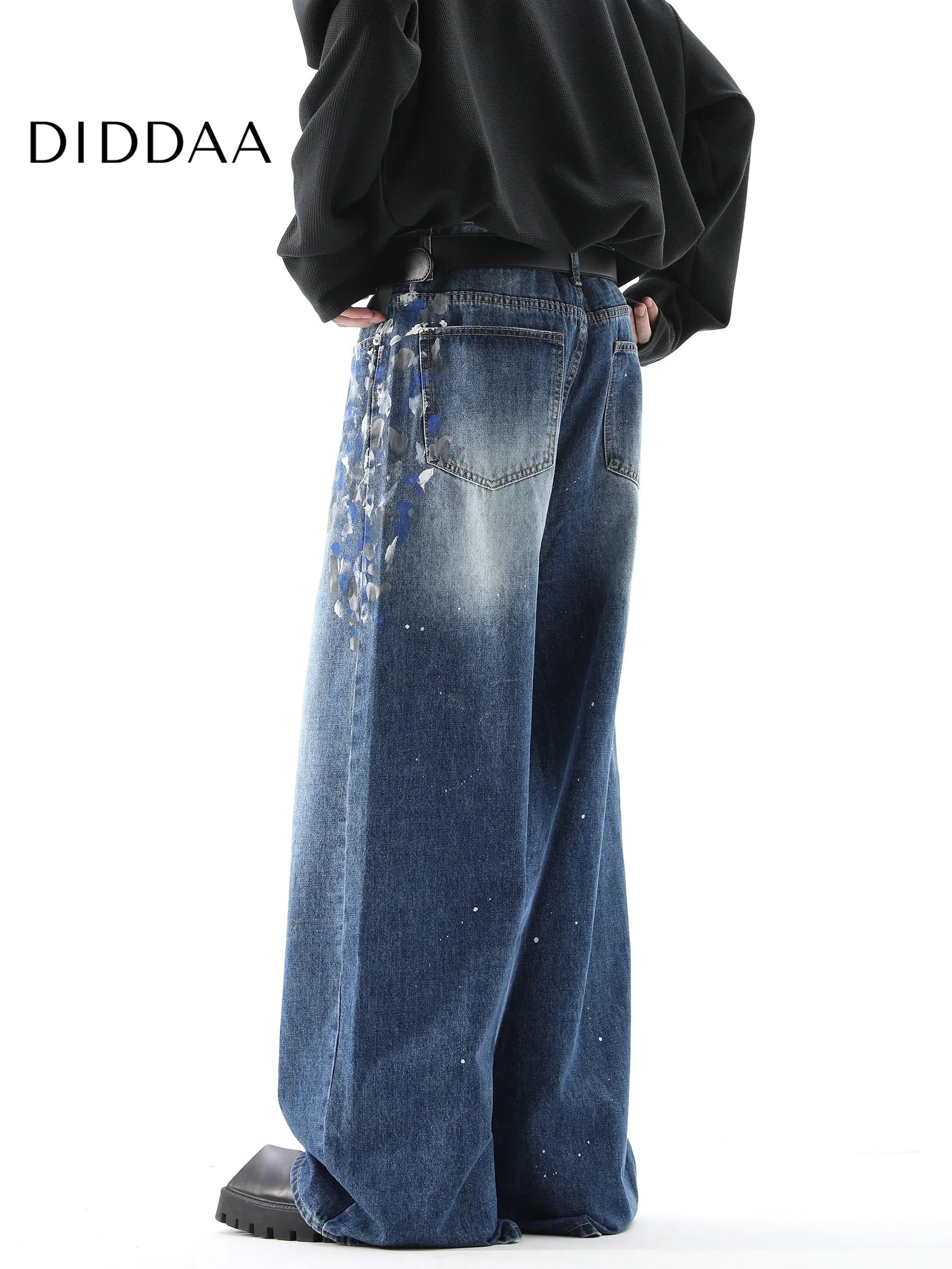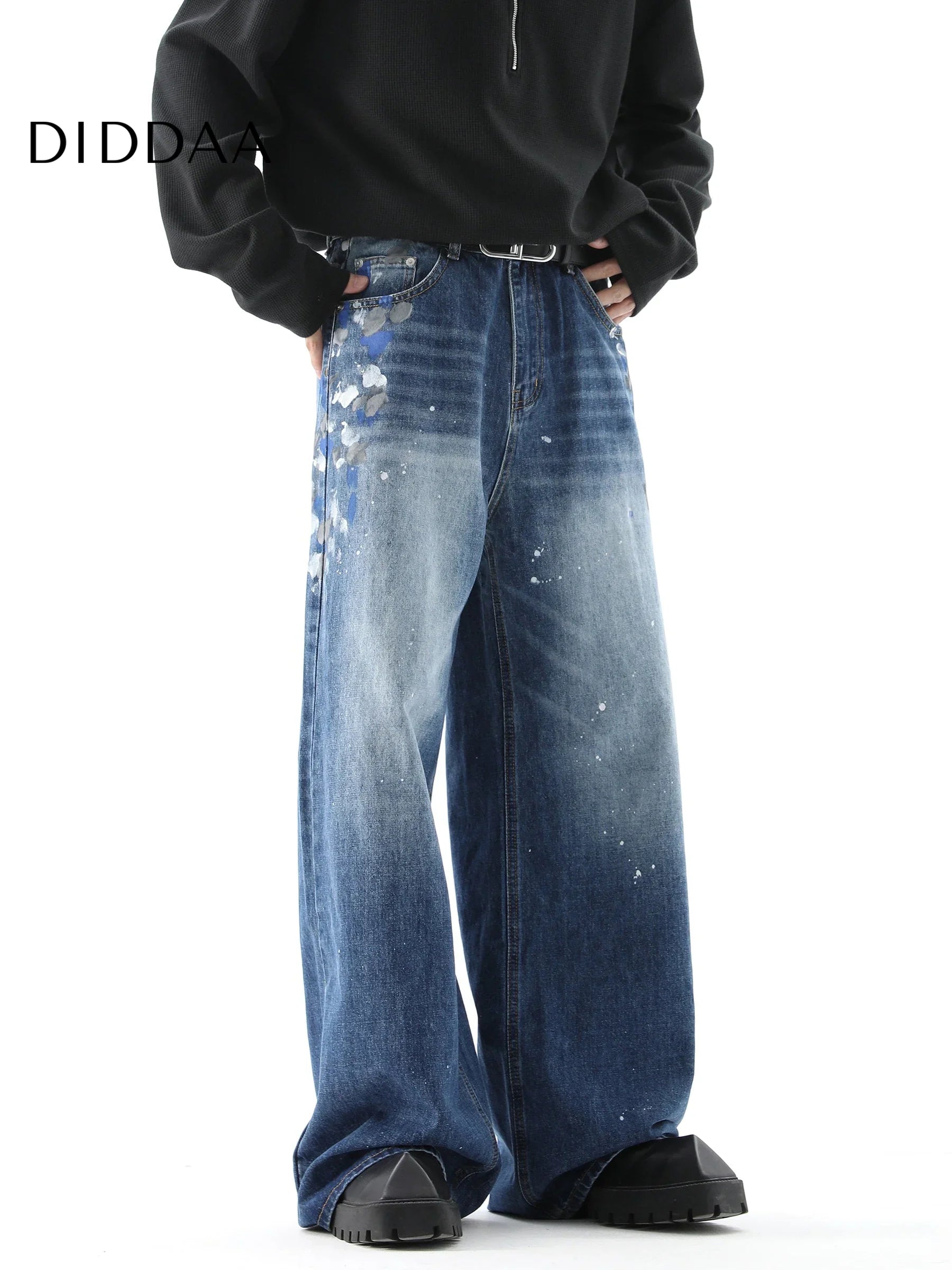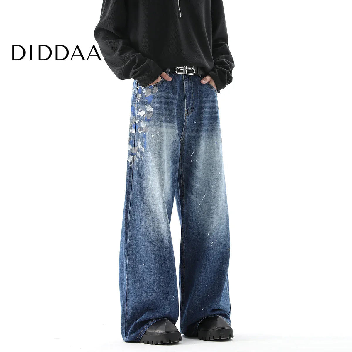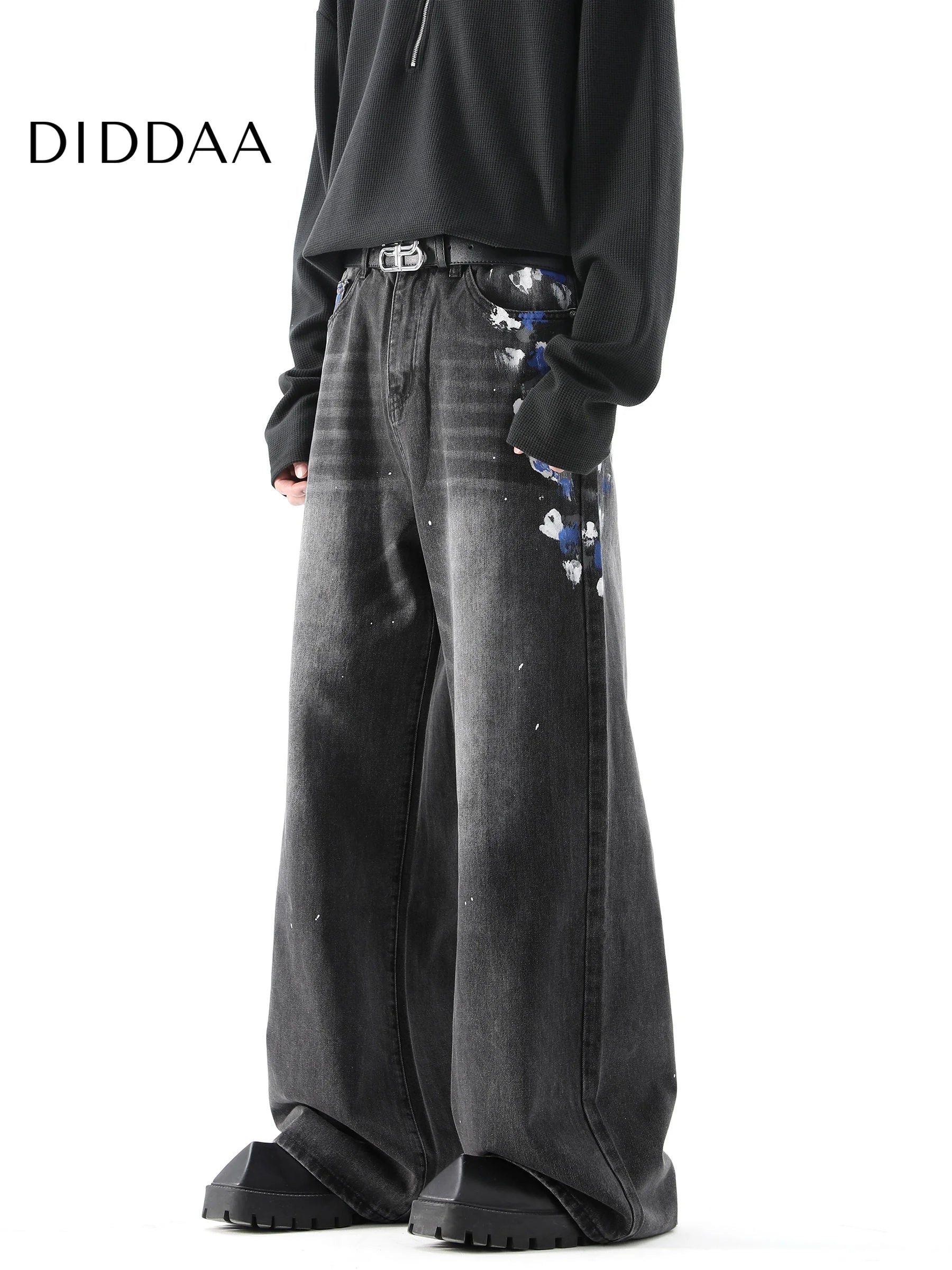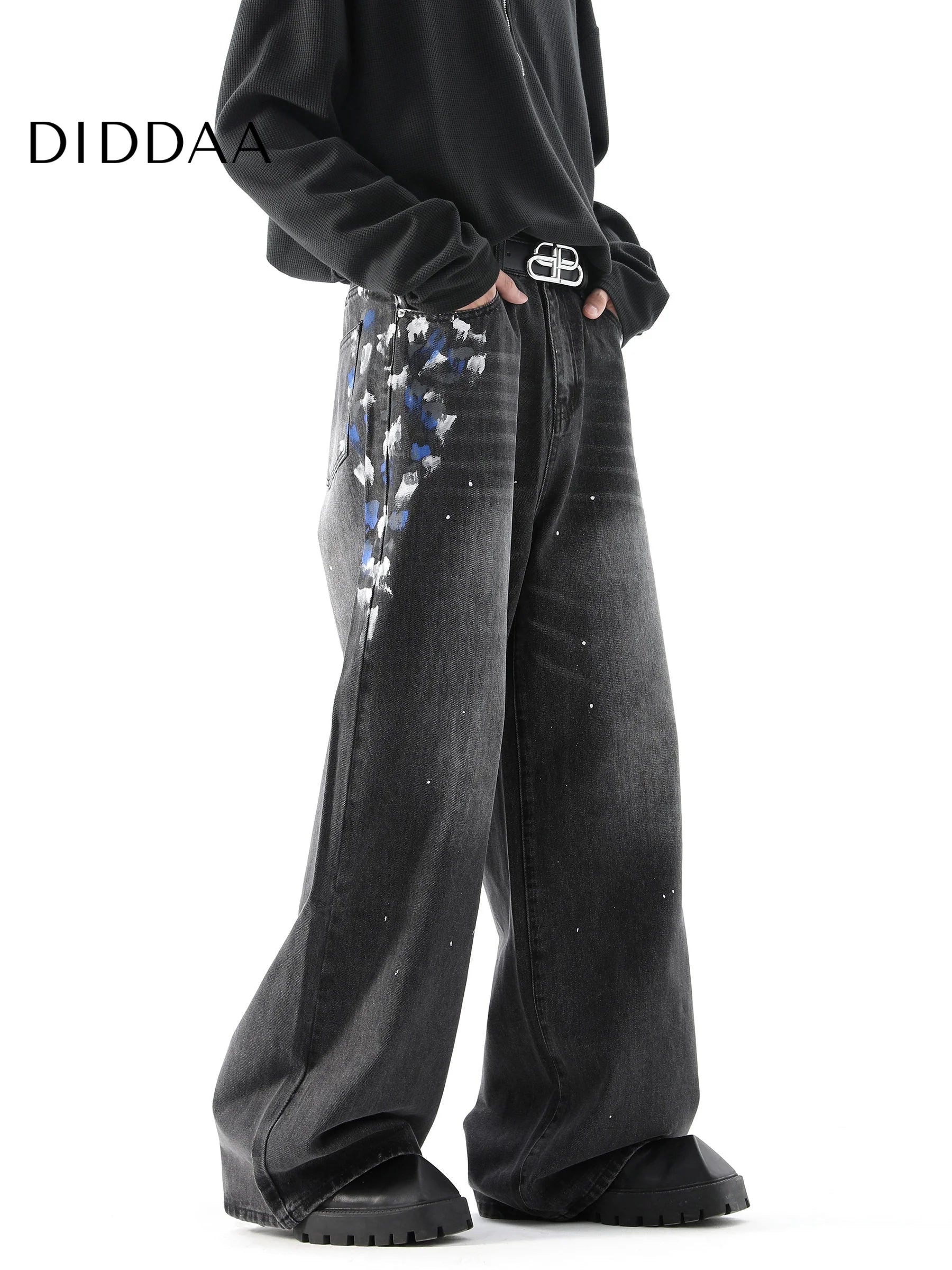 Black Graffiti Print Wide Leg Street Niche Design Jeans