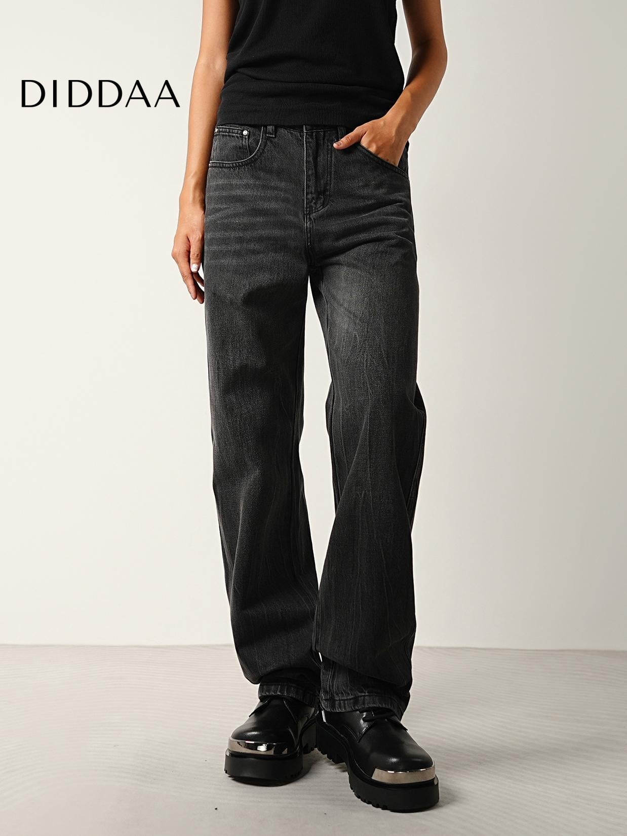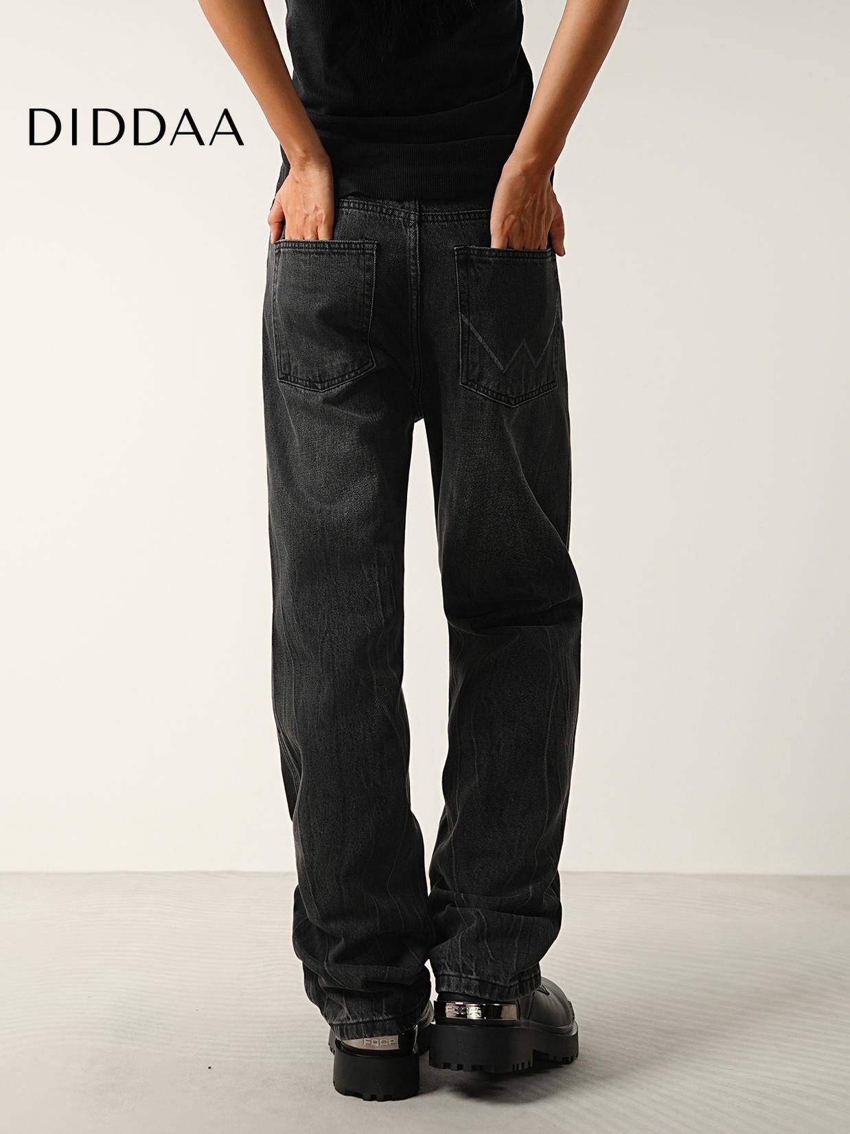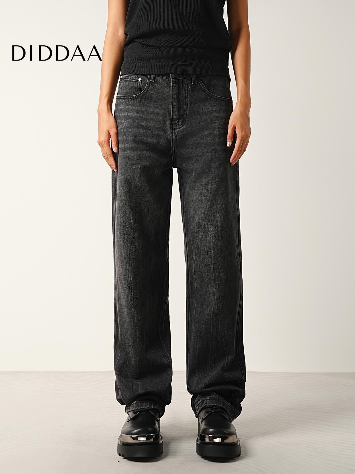 Black Grey Vintage Washed Wide-Leg Jeans for All