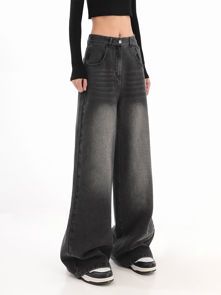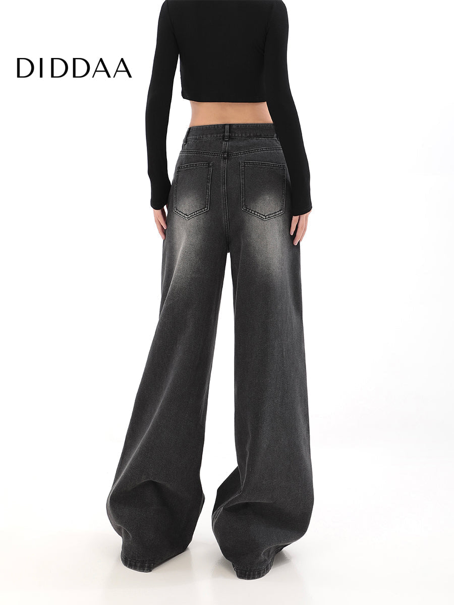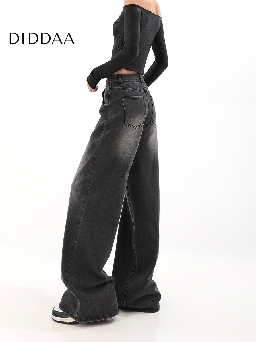 Black High Waist Loose Fit Wide Leg Jeans for Women
