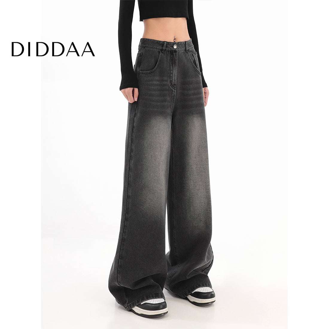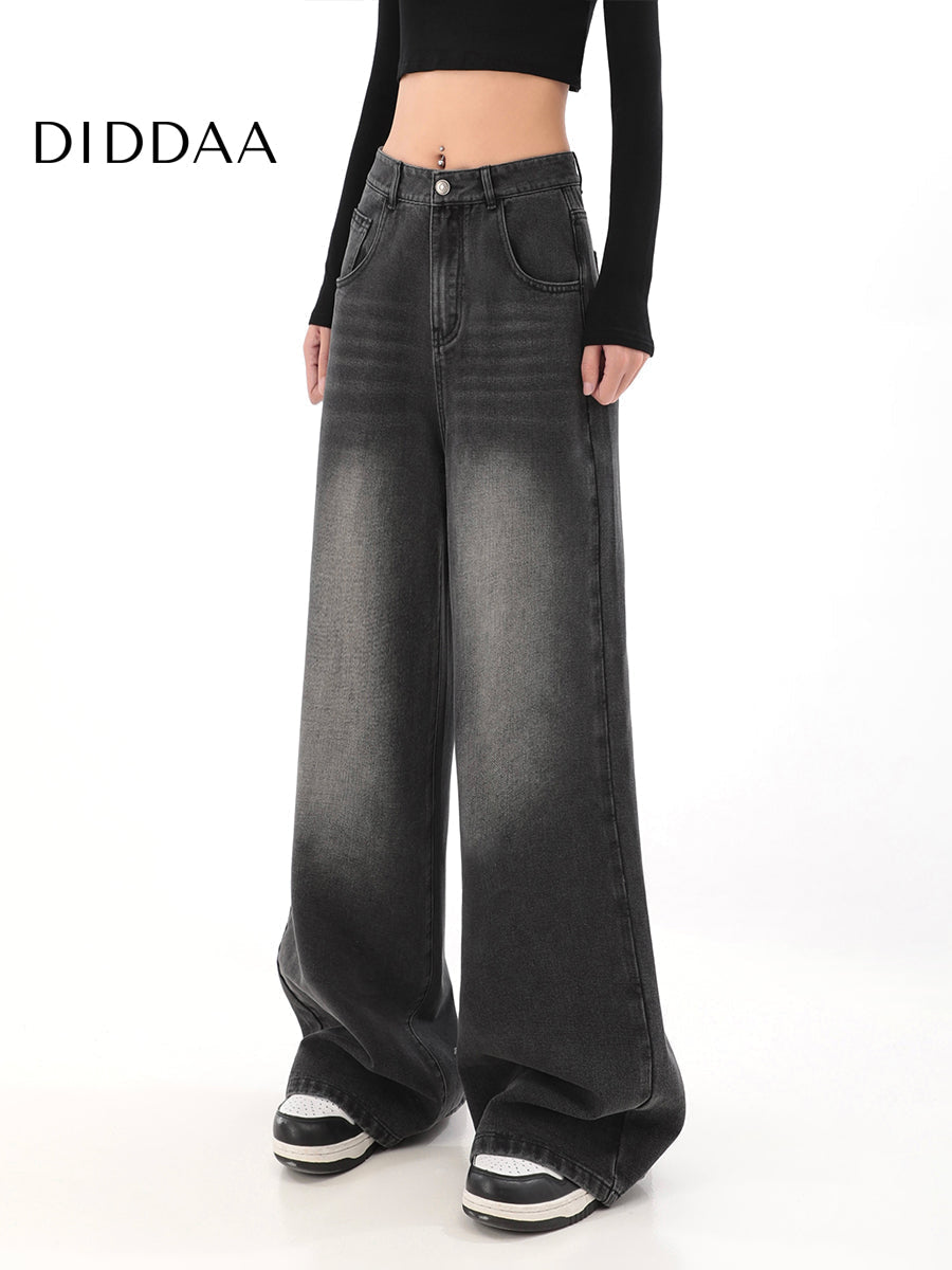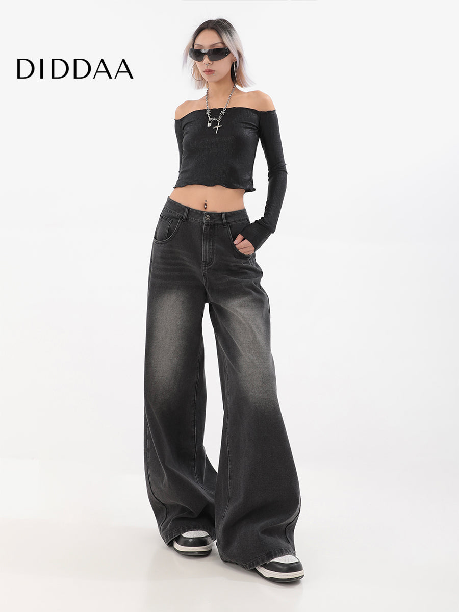 Black High Waist Loose Fit Wide Leg Jeans for Women