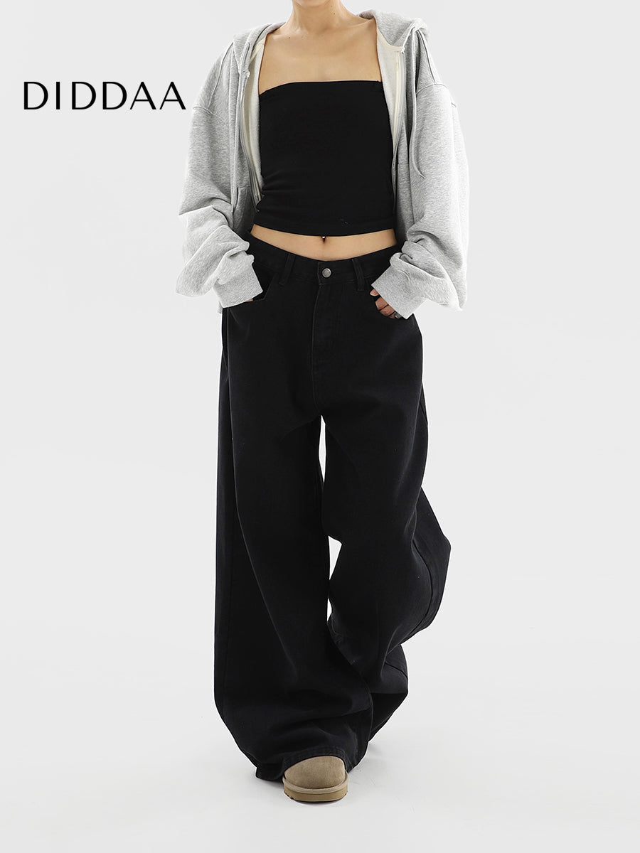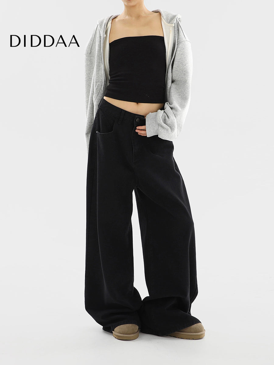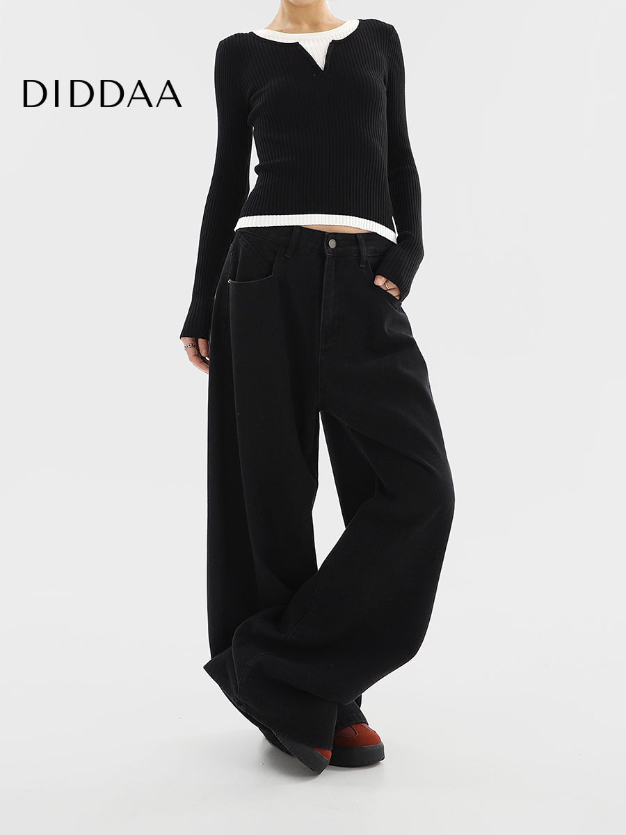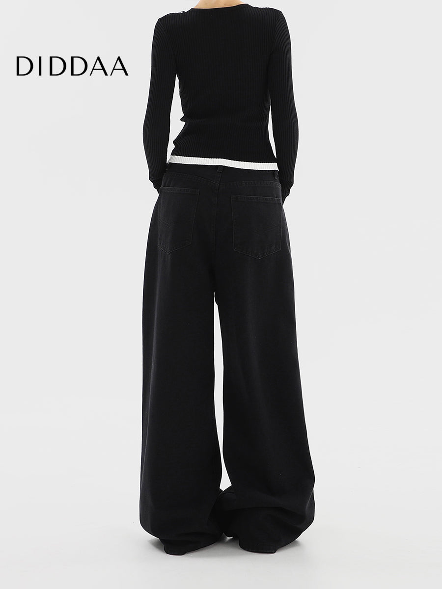 Black High Waist Wide Leg Jeans Slim Casual Pants