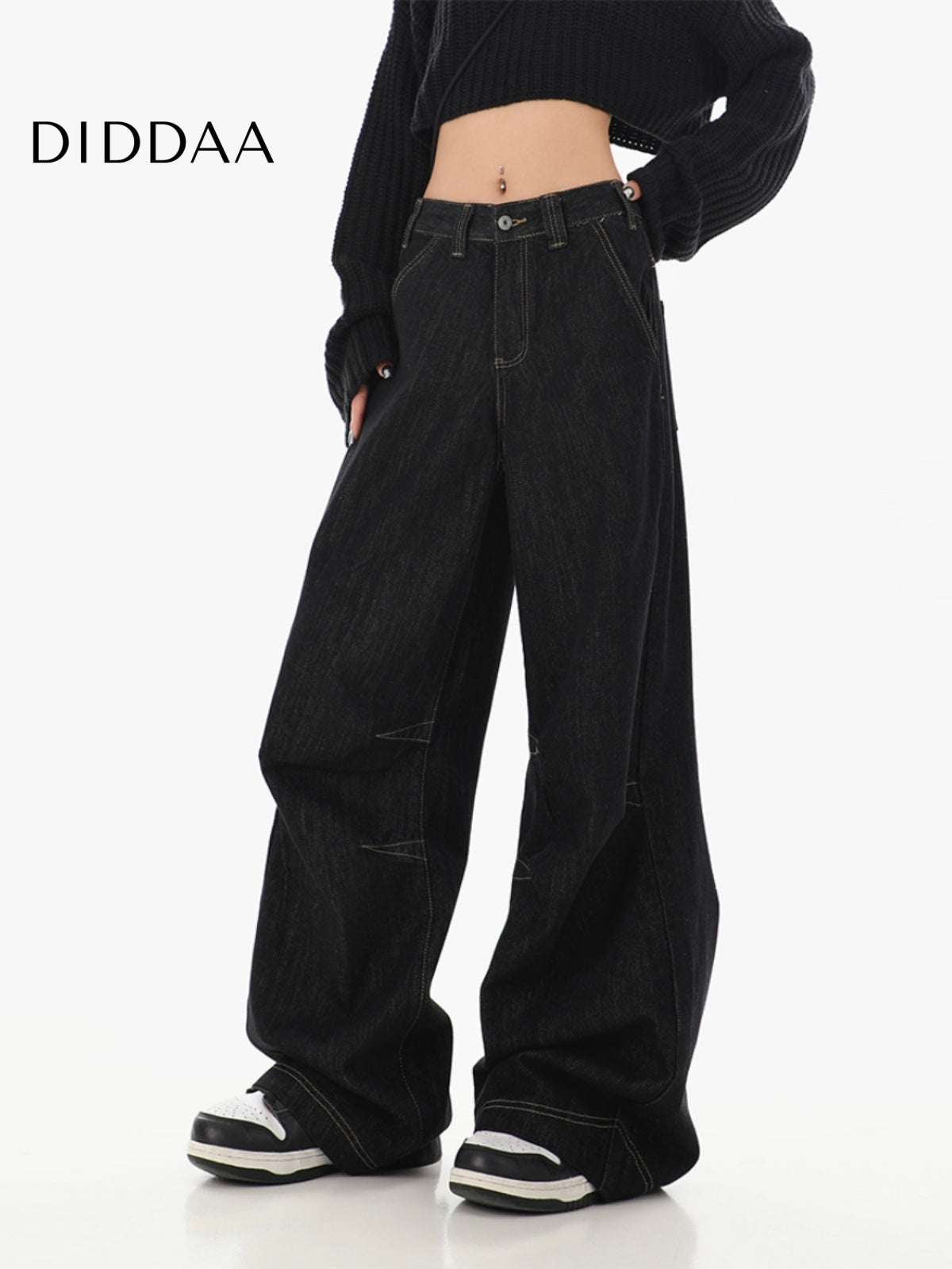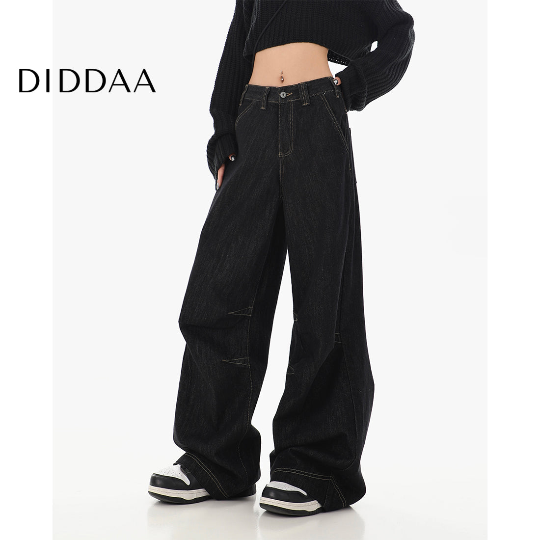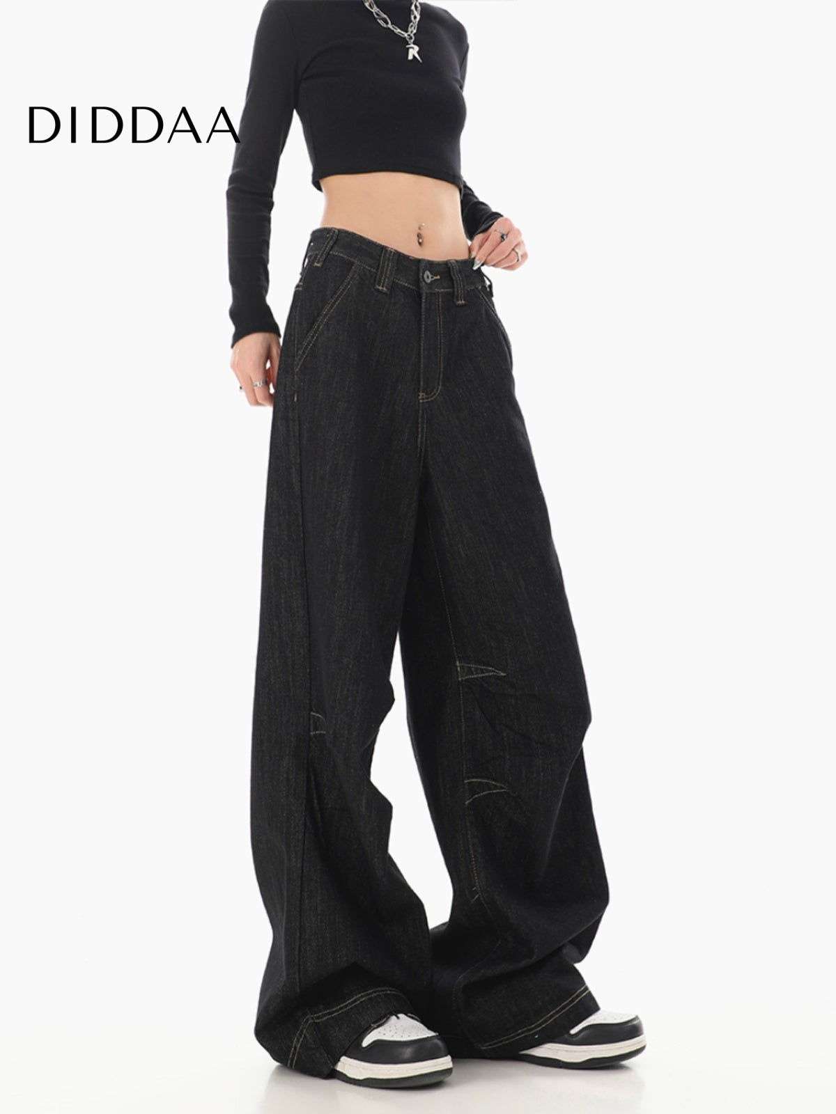 Black High-Waisted Loose Wide-Leg Jeans for Women