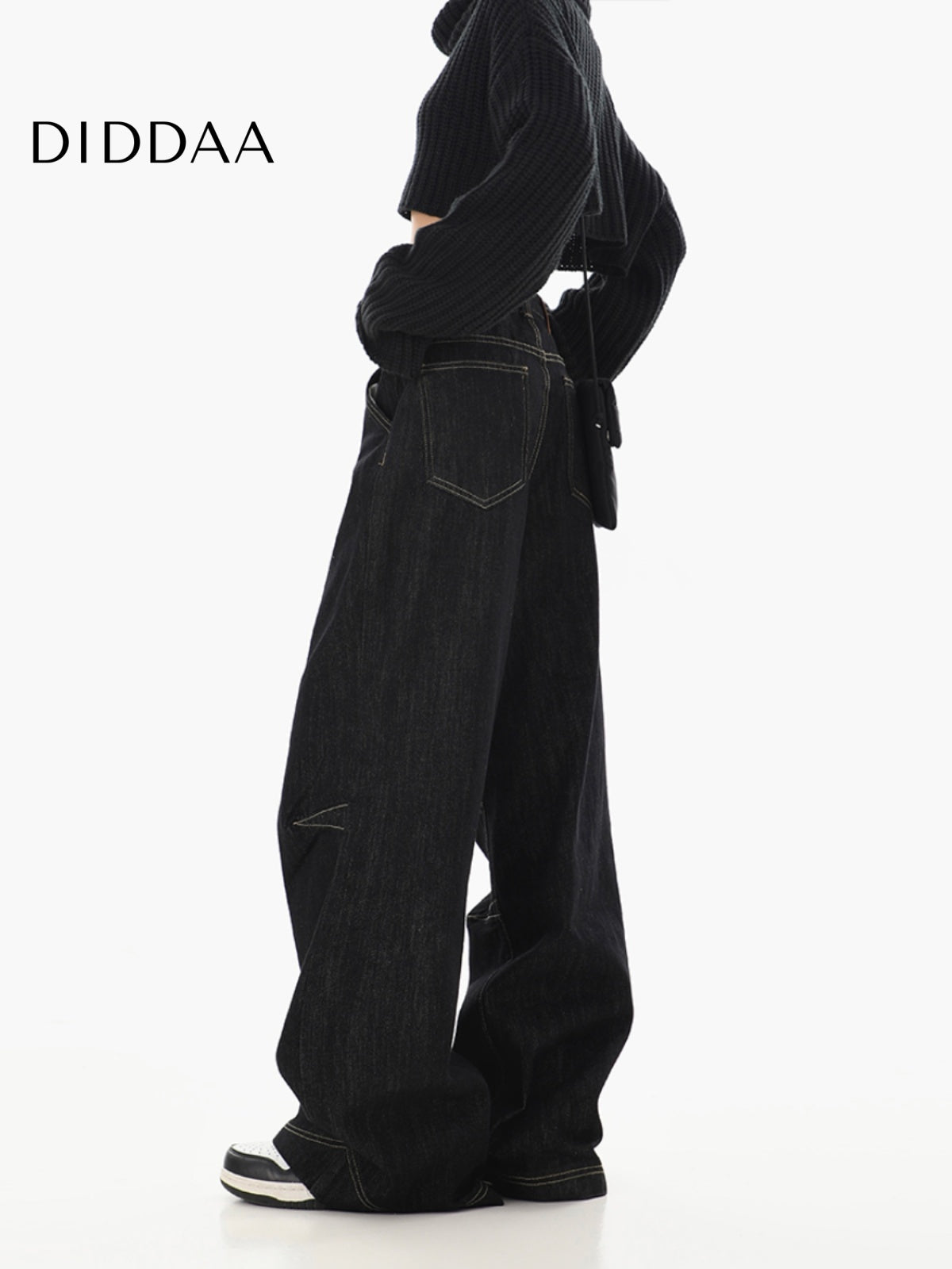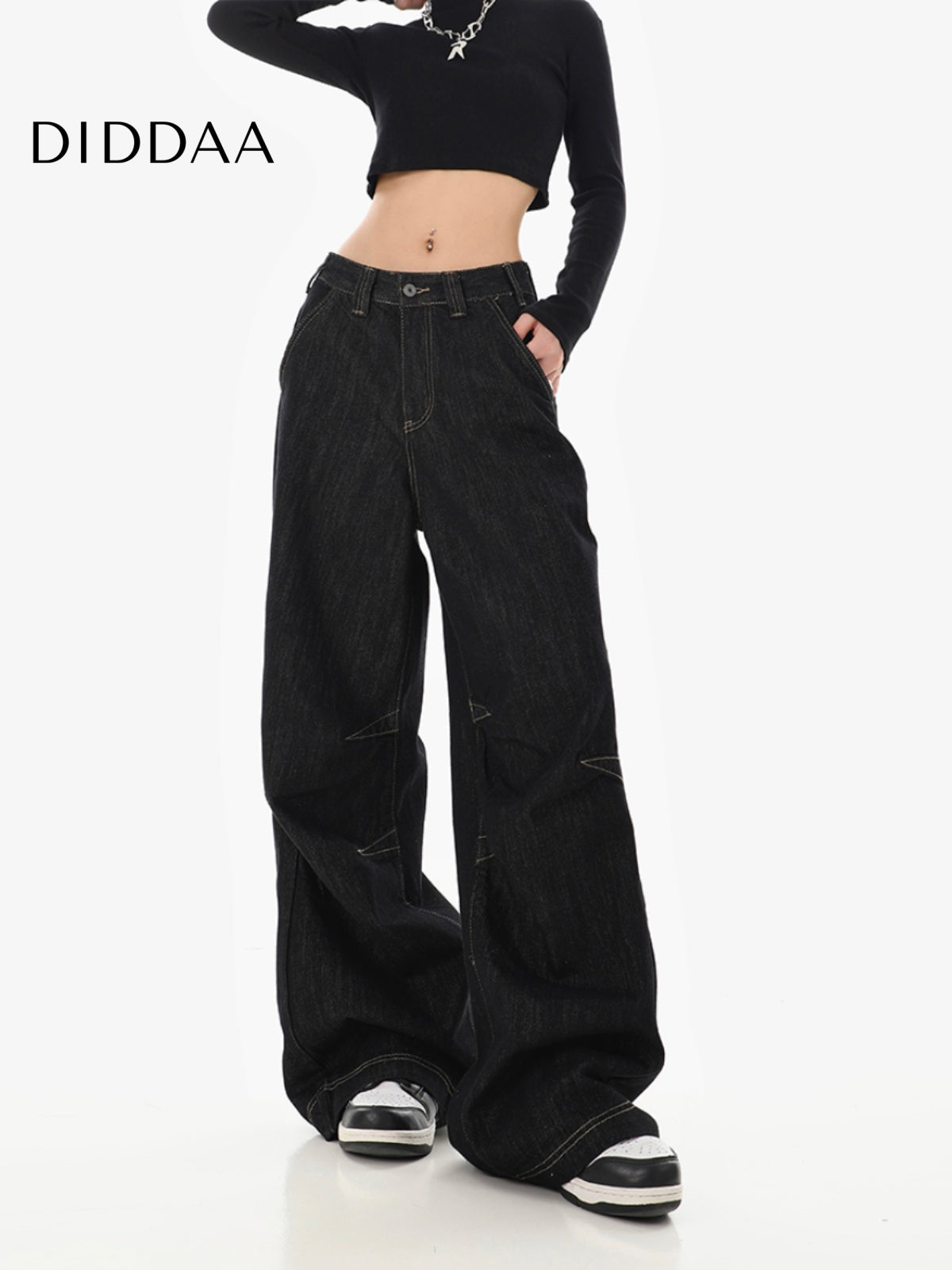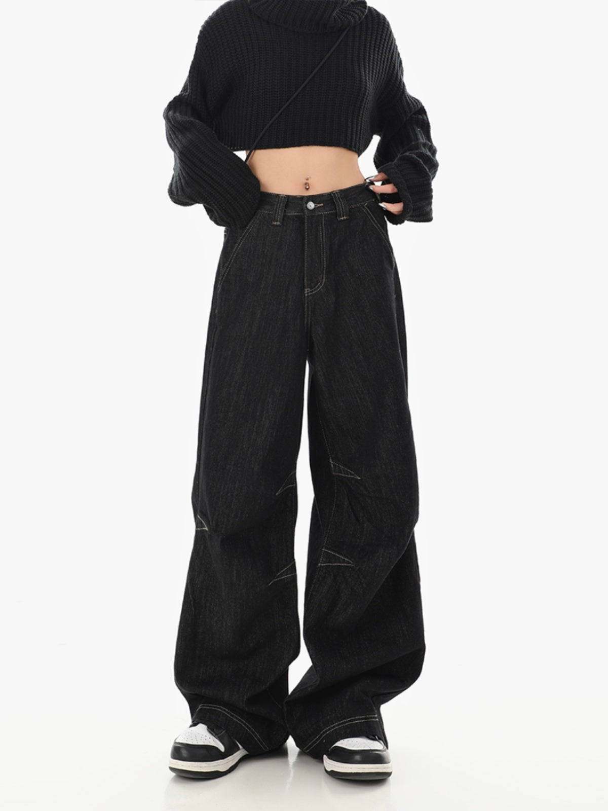 Black High-Waisted Loose Wide-Leg Jeans for Women