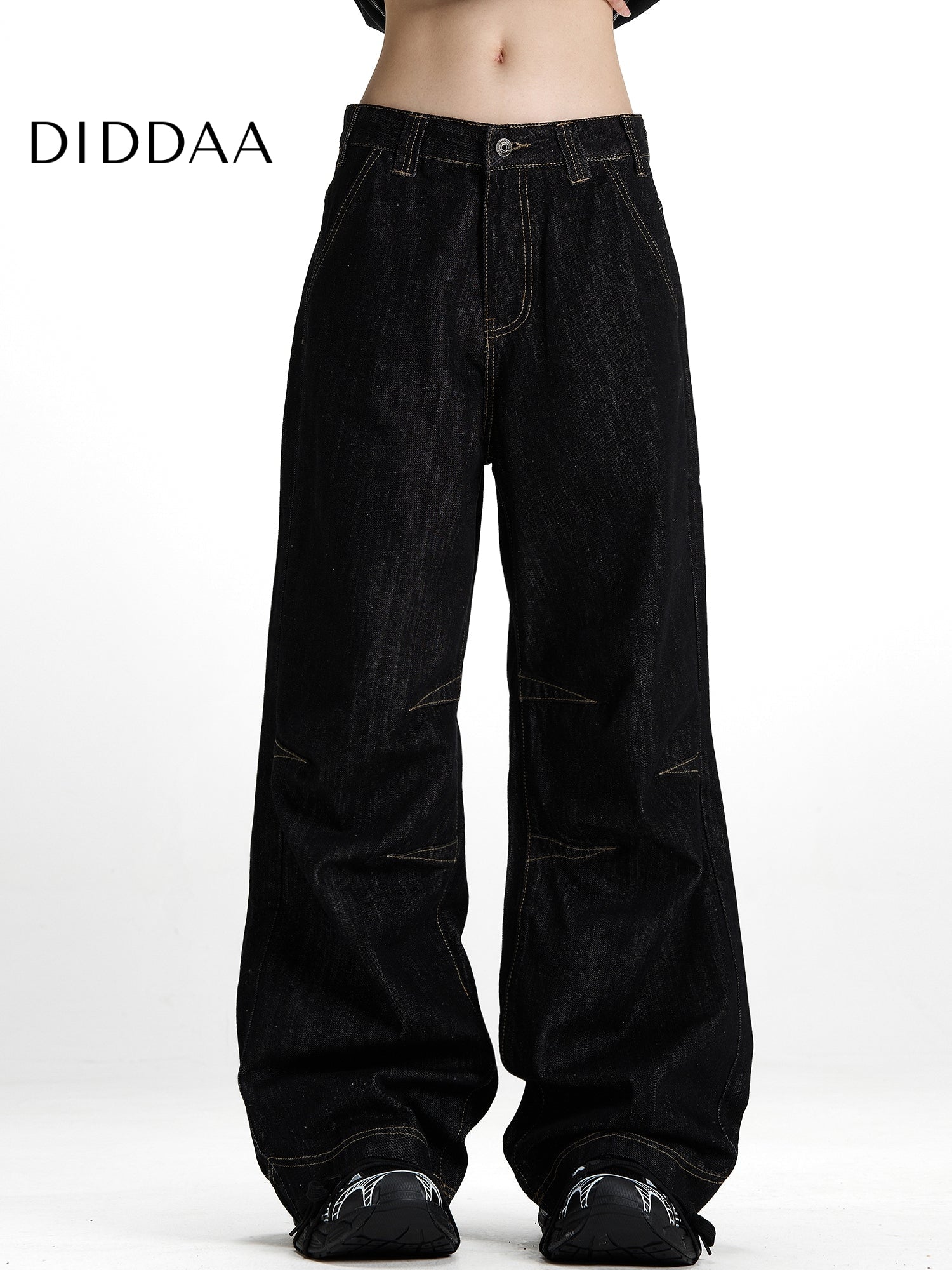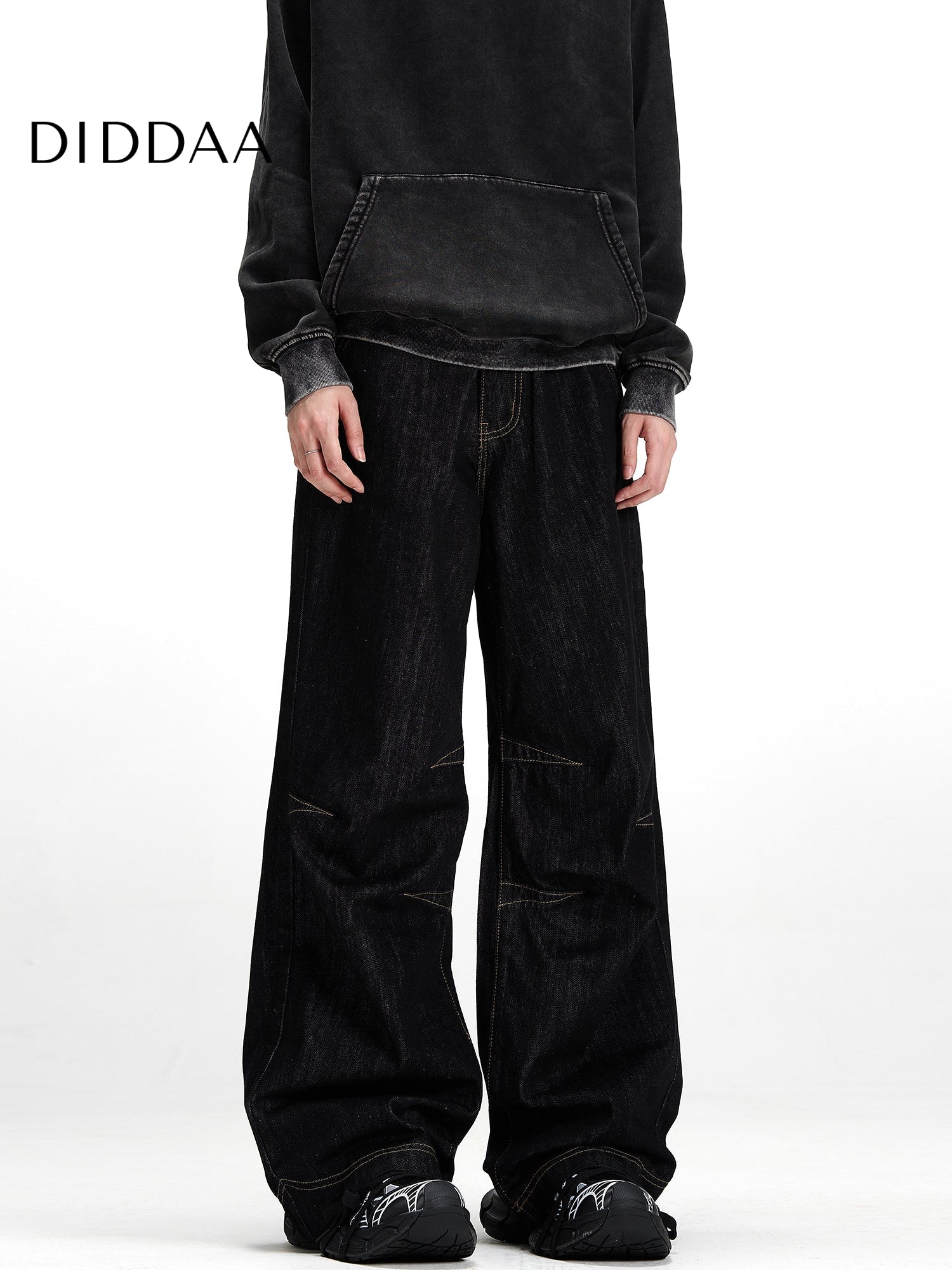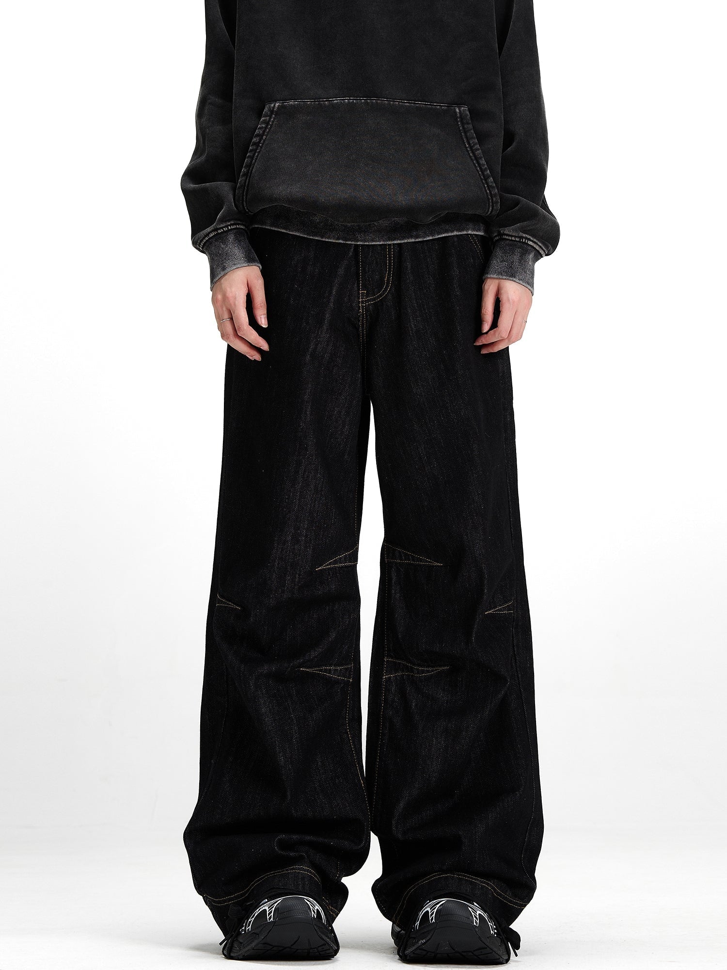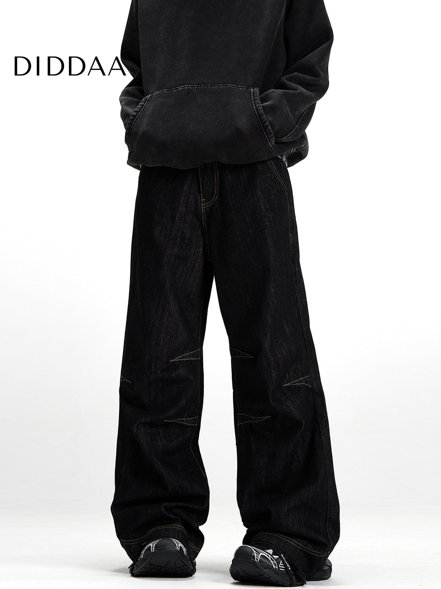 Black Loose Fit Retro Wide-Leg Jeans for Men