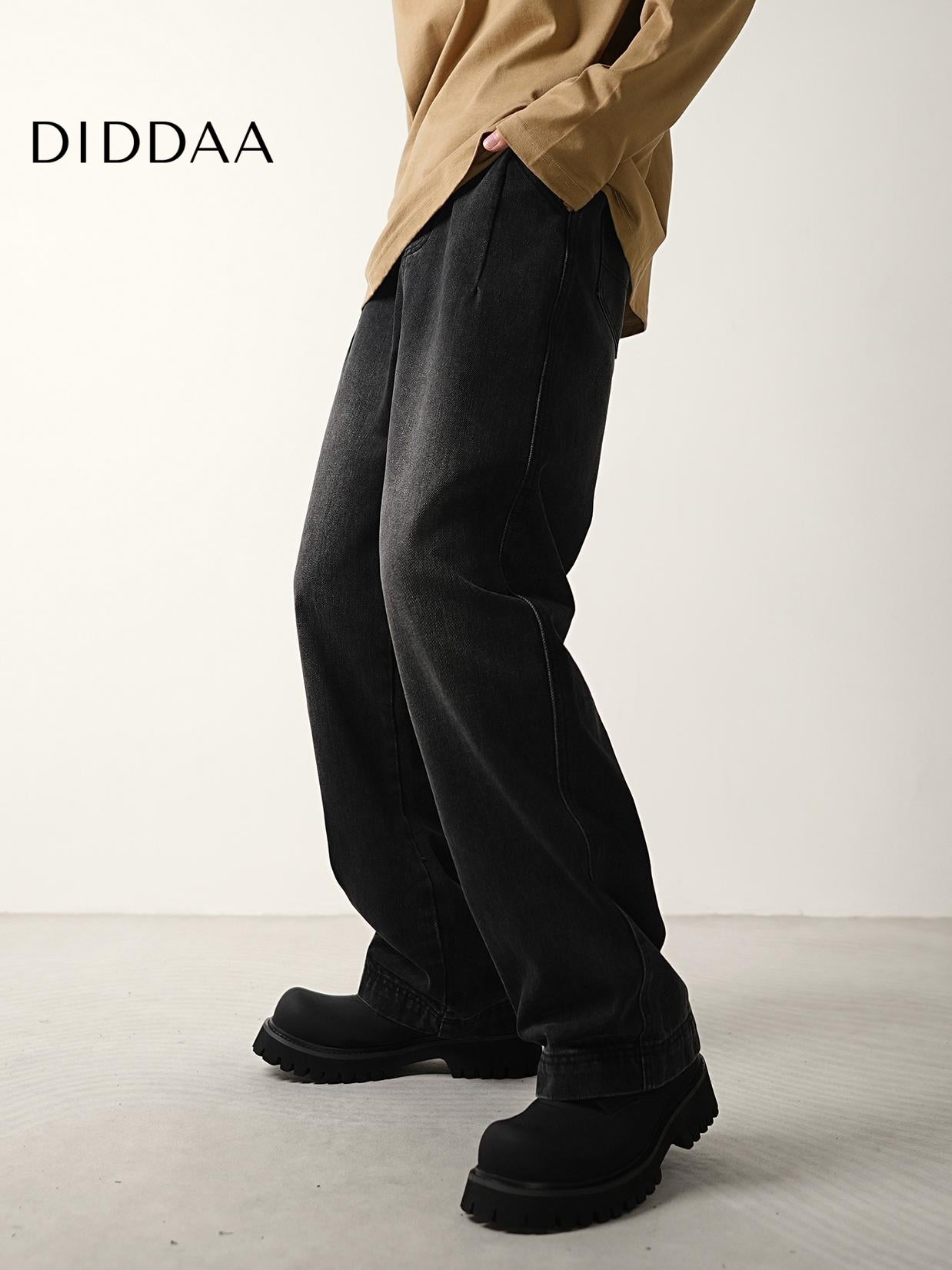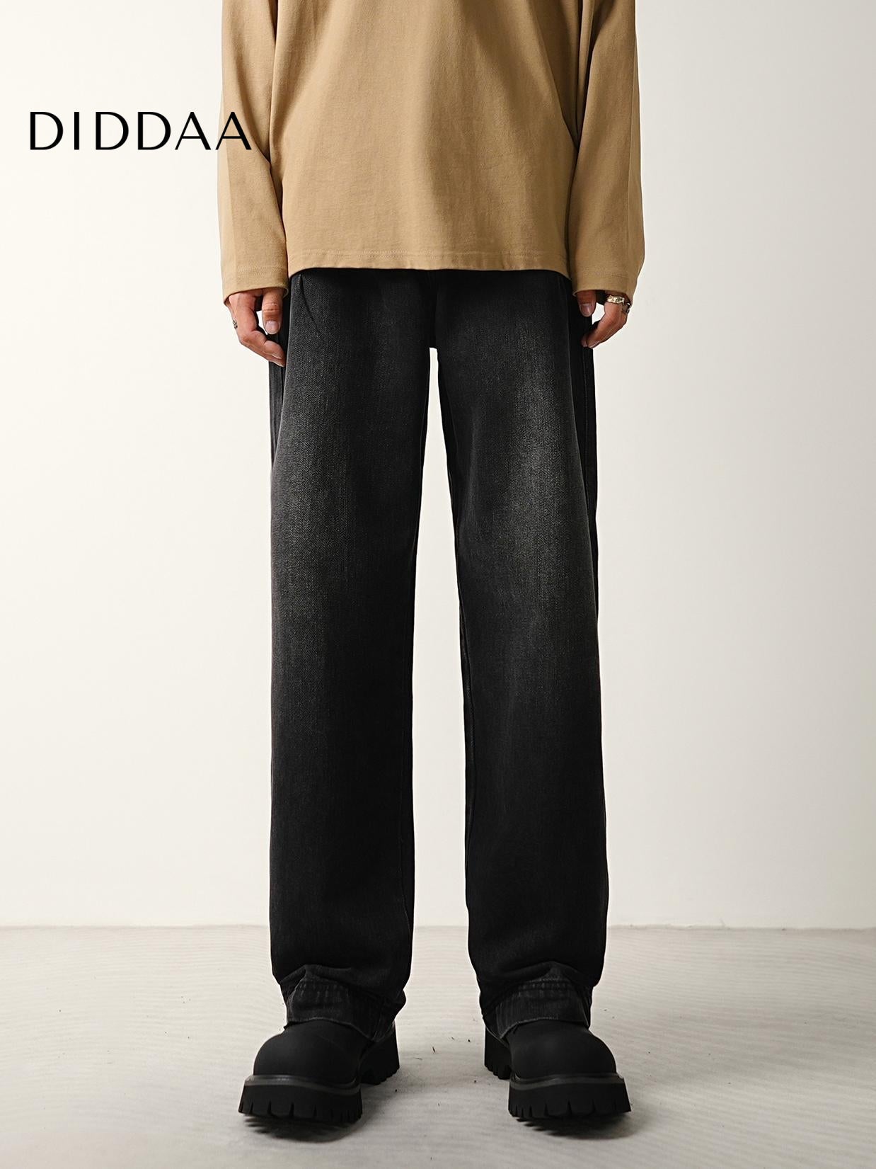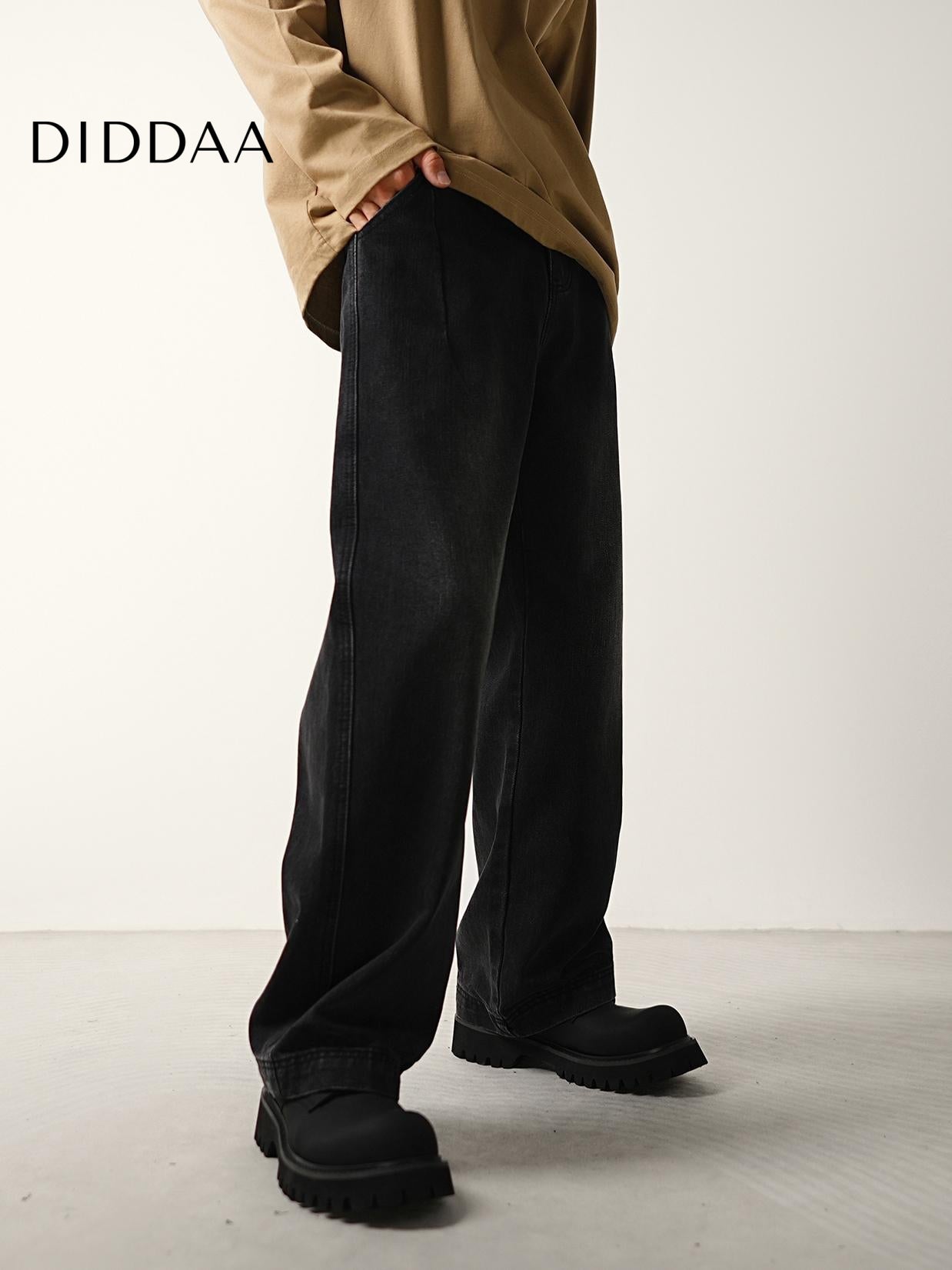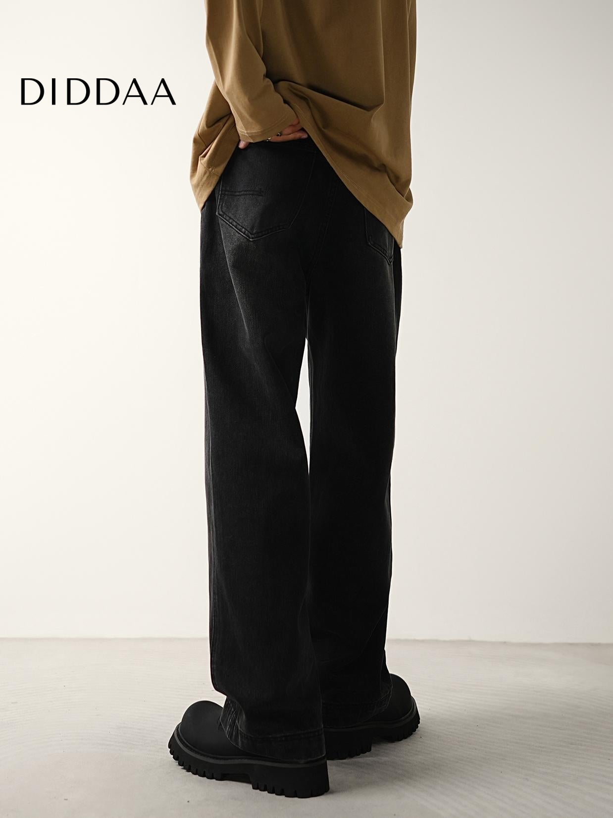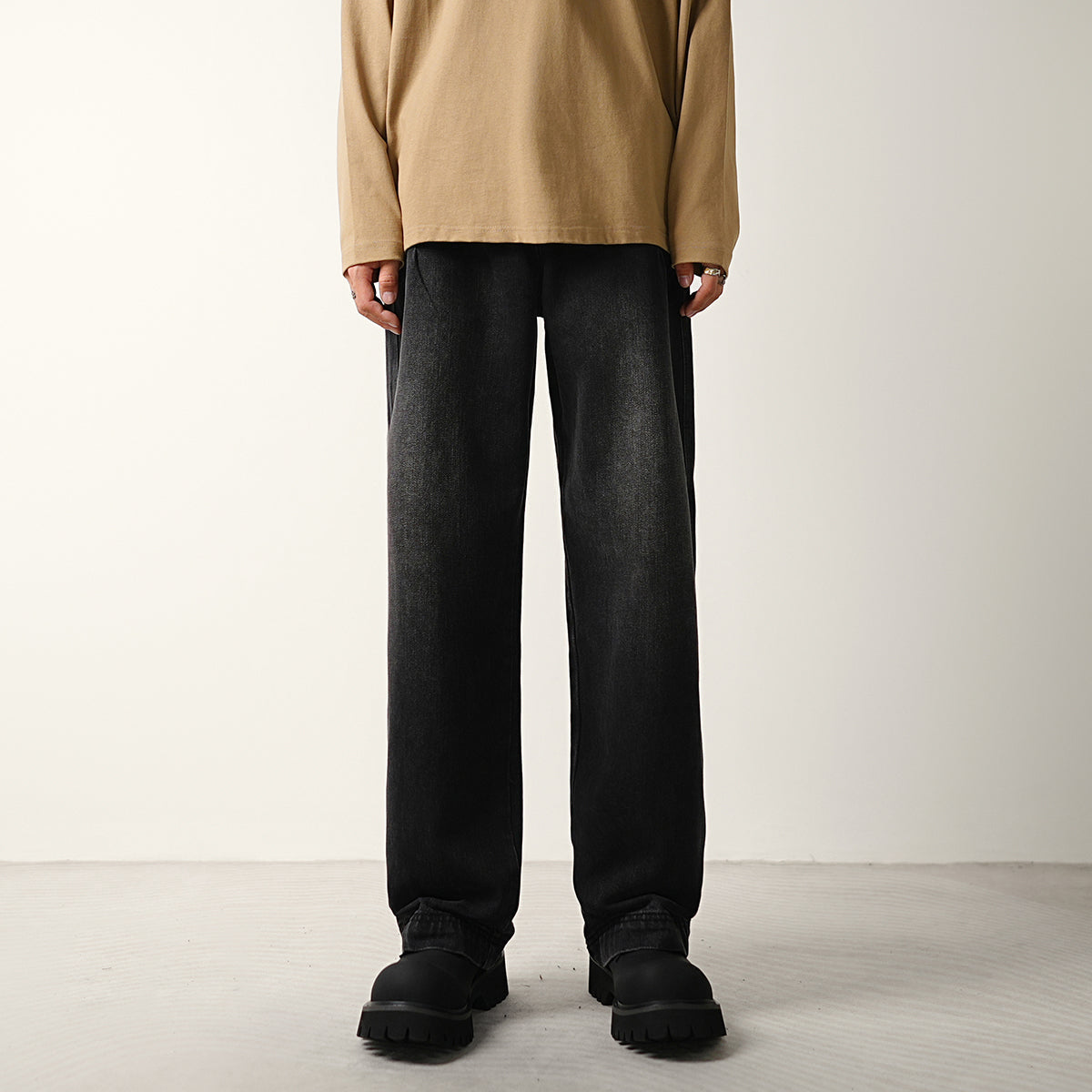Black Loose Wide-Leg Straight Leg Jeans for Men