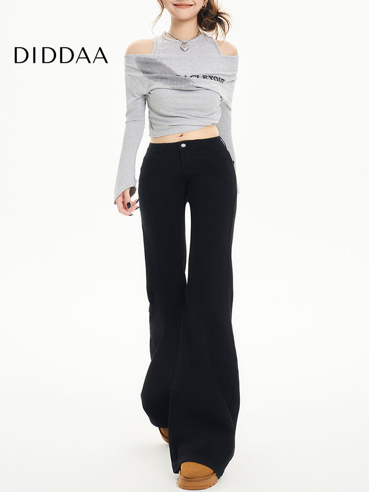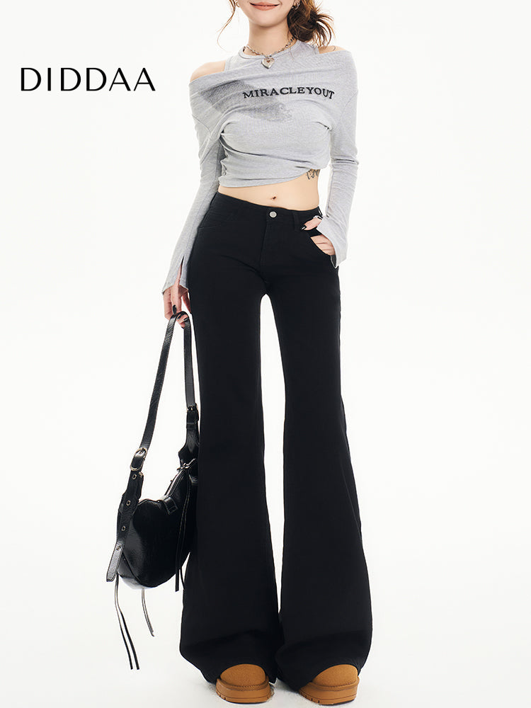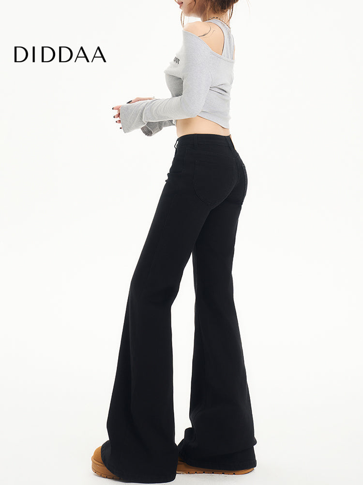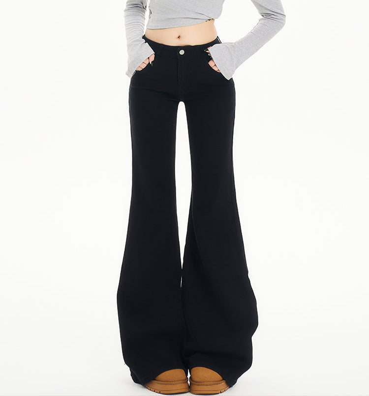 Black Non-Stick Flared Pants Women's Wide-Leg Jeans