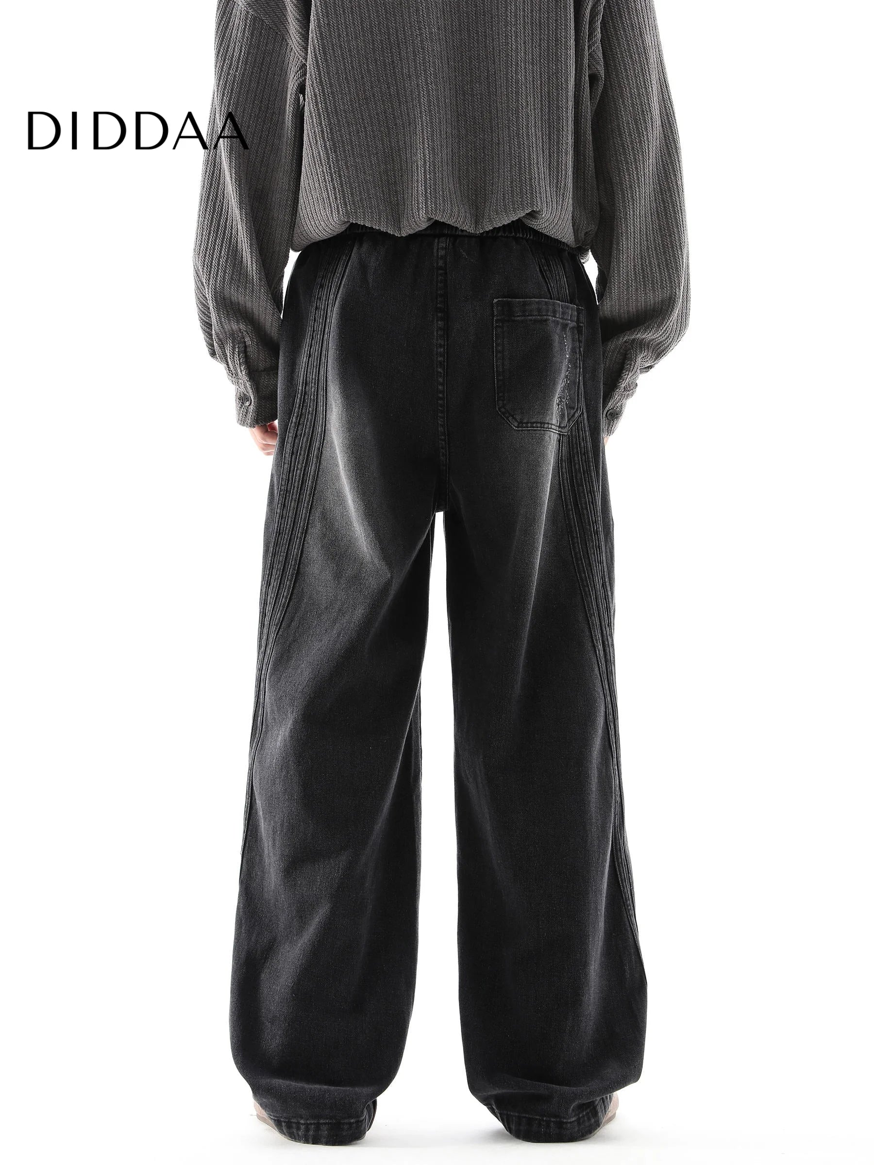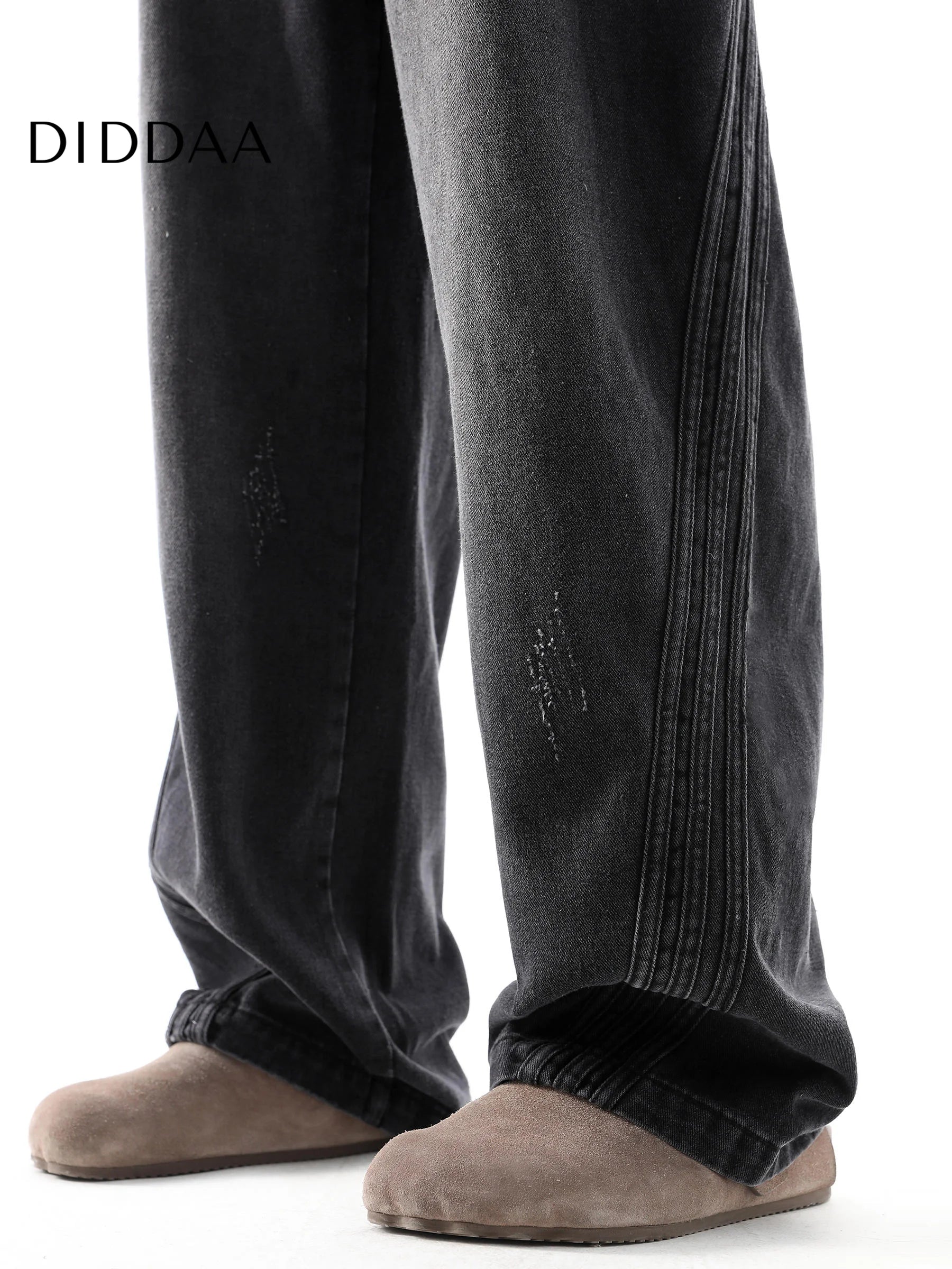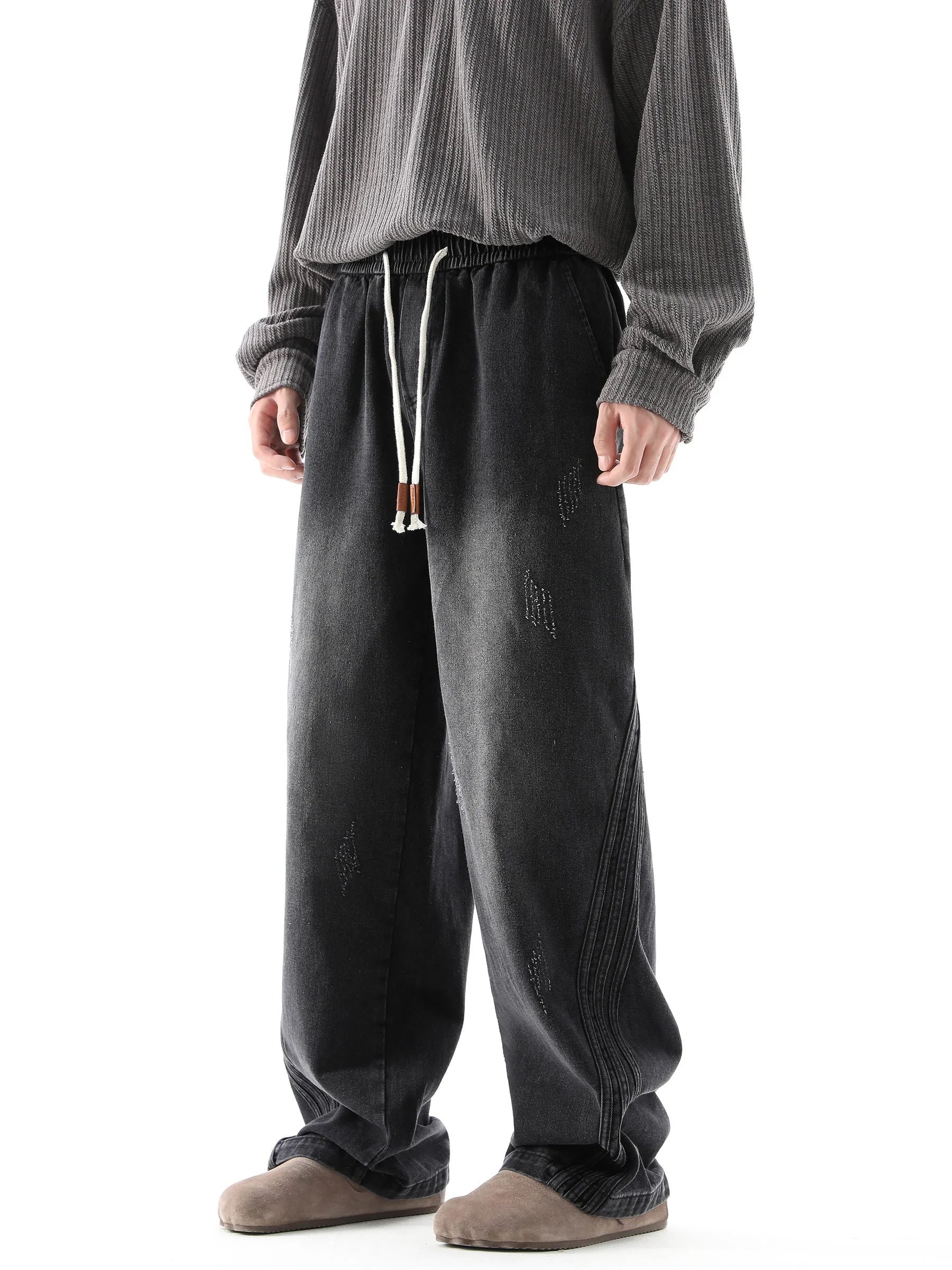 Black Retro Distressed Loose Fit Wide Leg Jeans