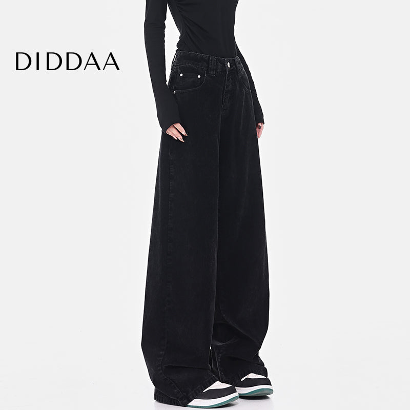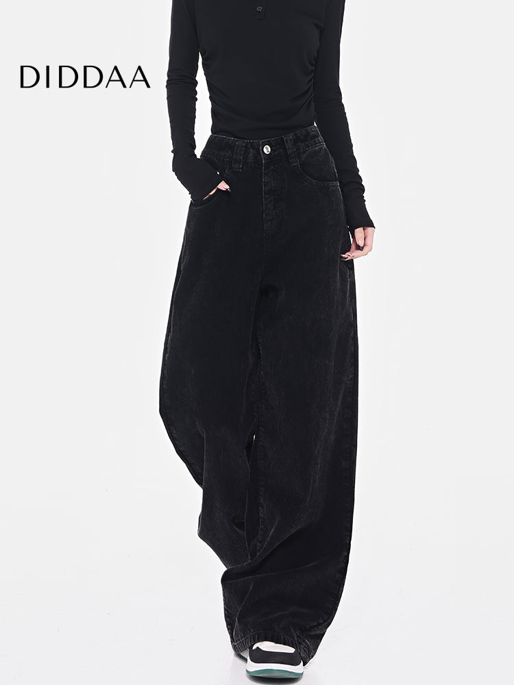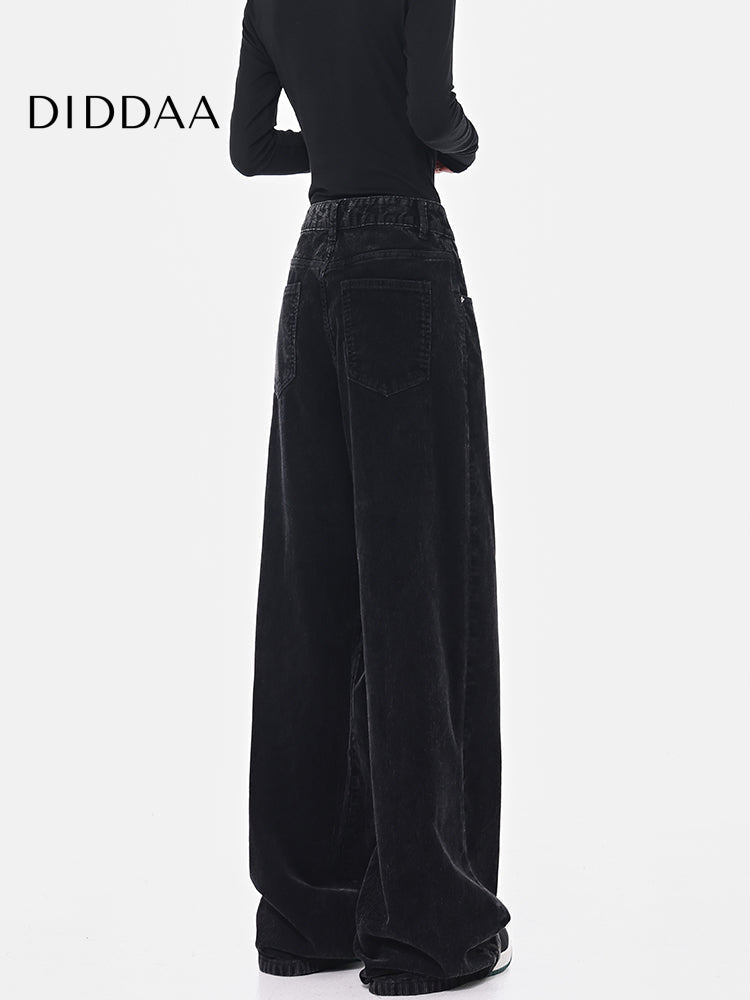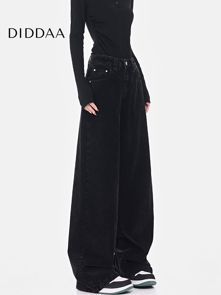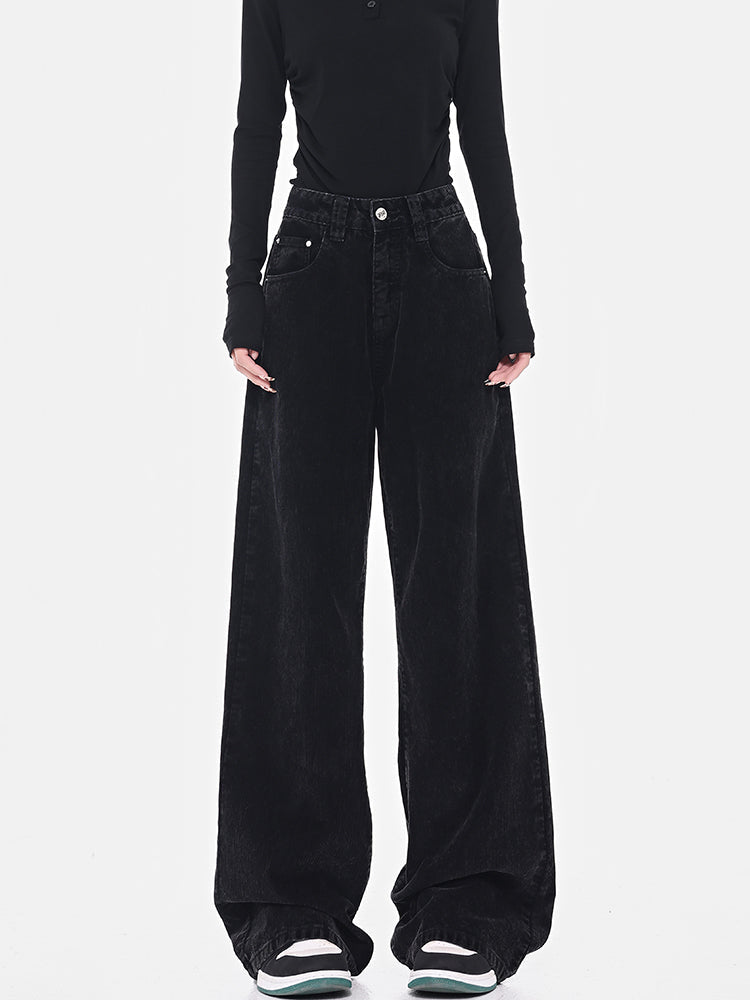 Black Retro High Waist Corduroy Wide-Leg Jeans