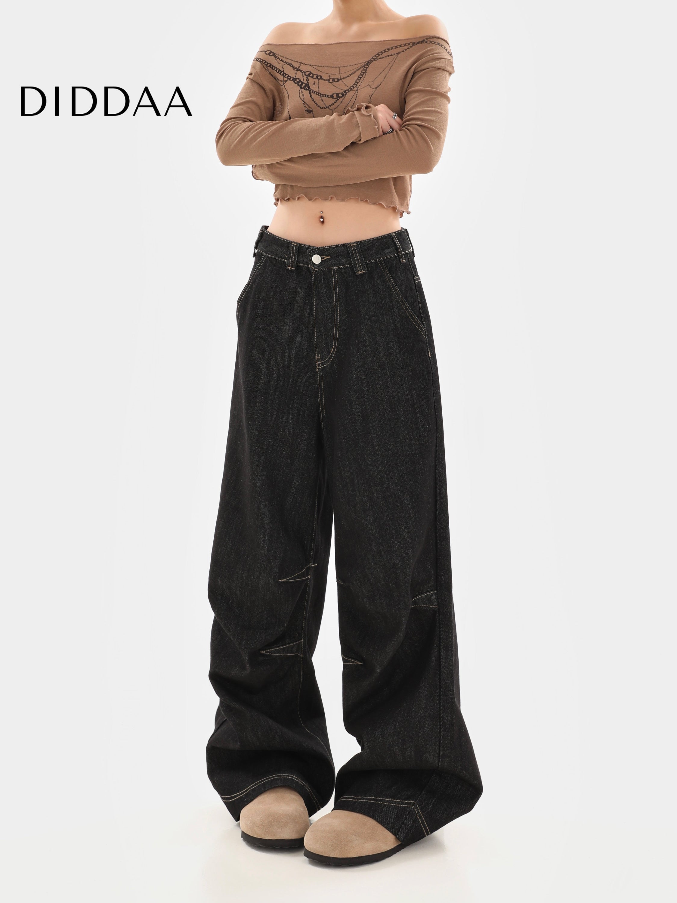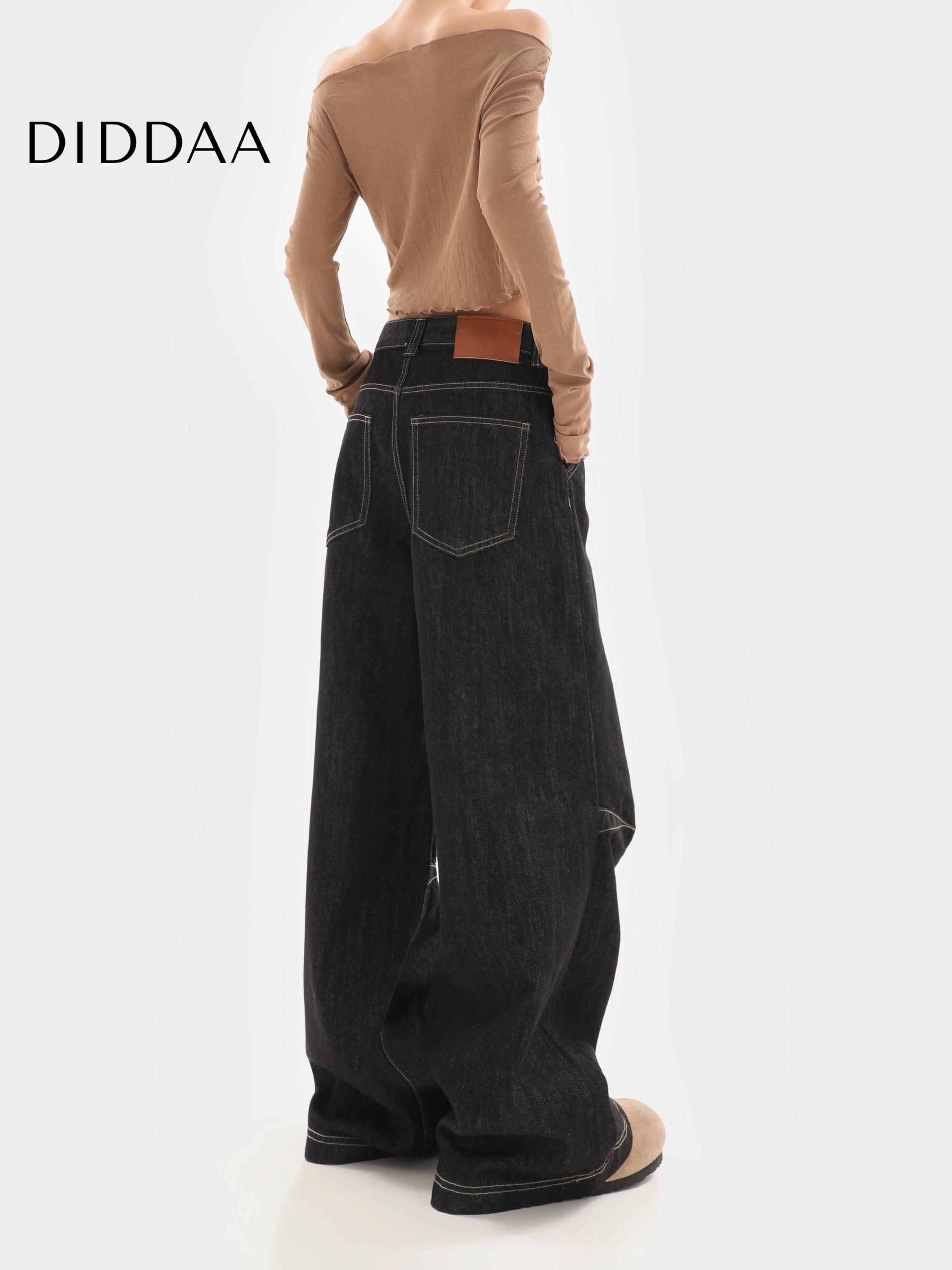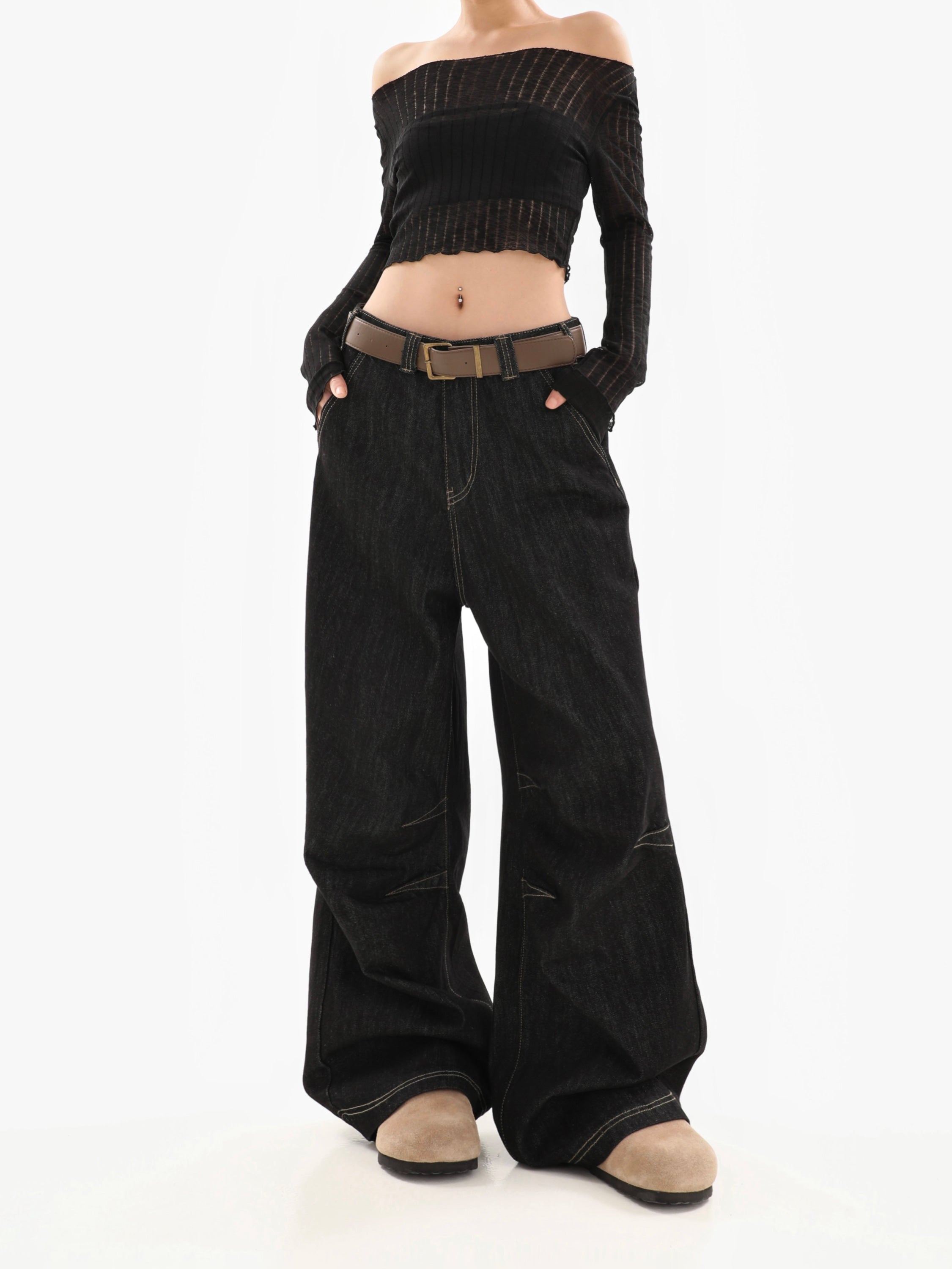 Black Retro Wash Loose Fit Wide-Leg Jeans