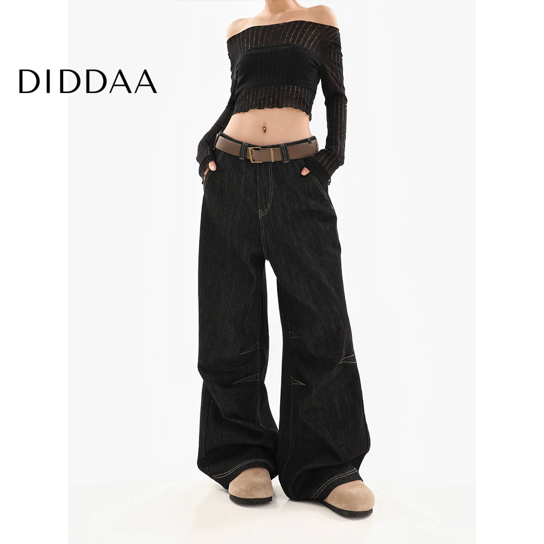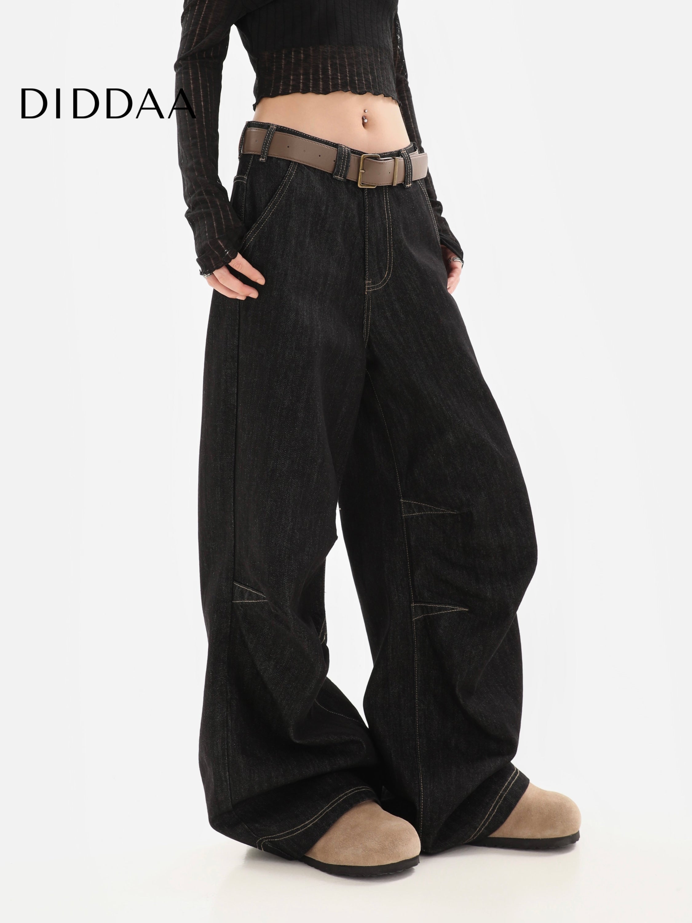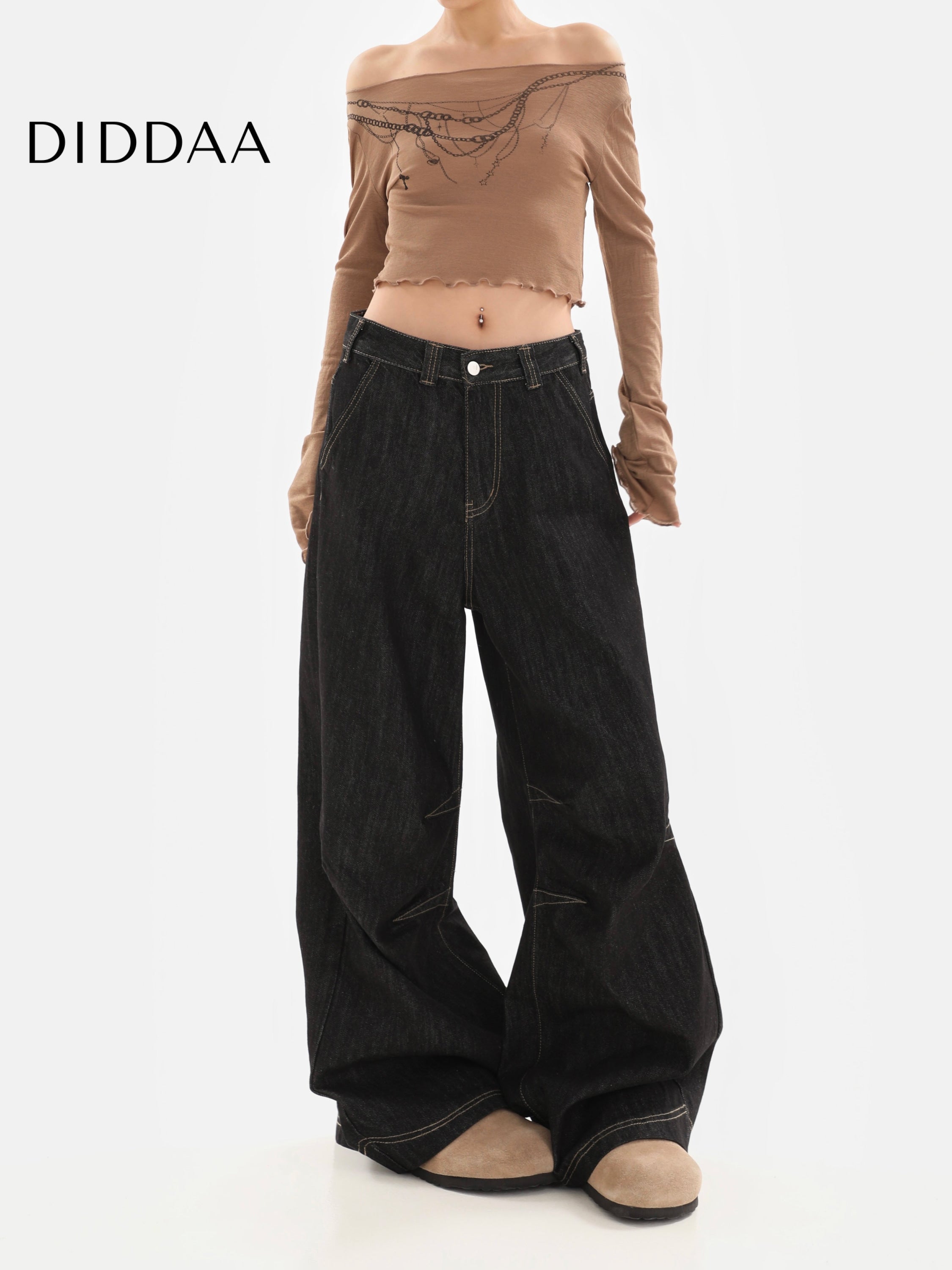 Black Retro Wash Loose Fit Wide-Leg Jeans