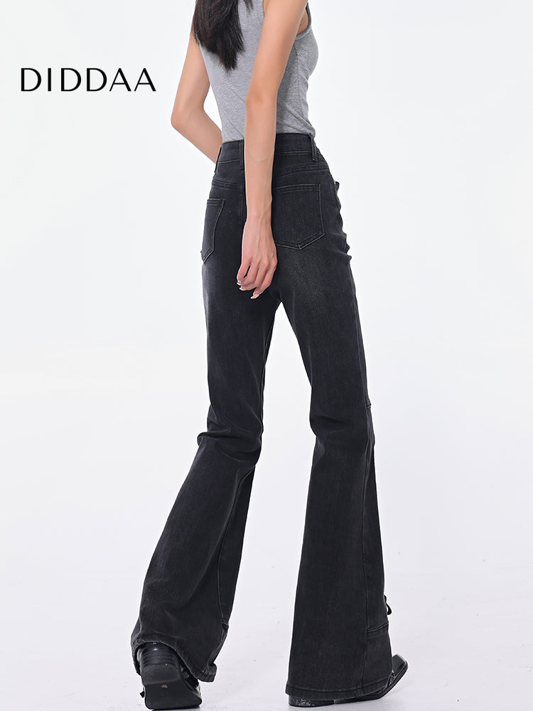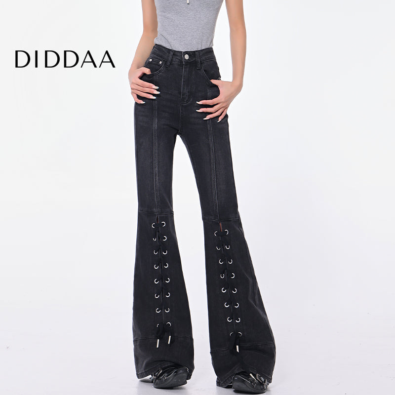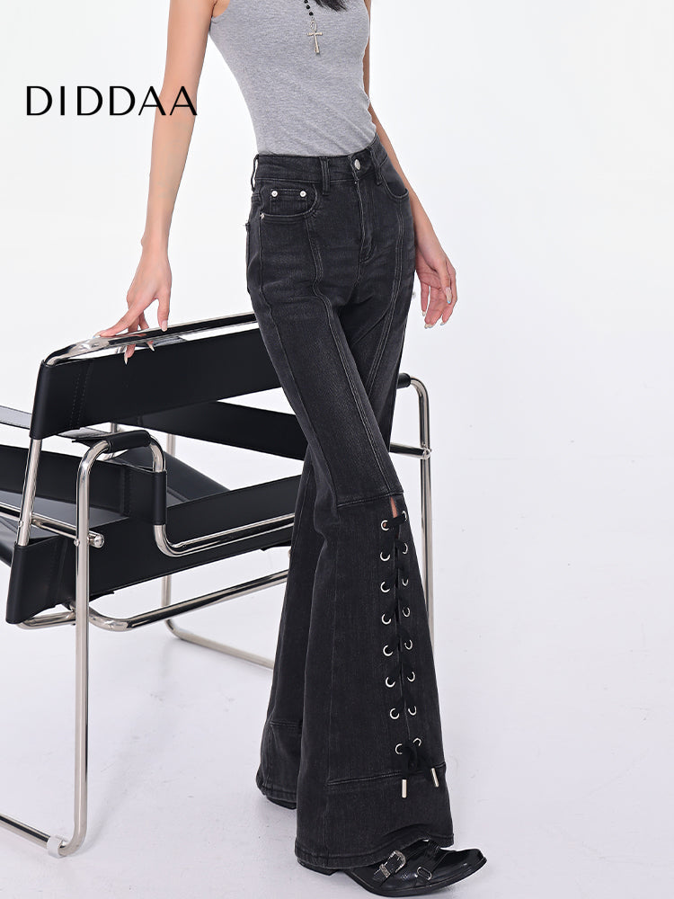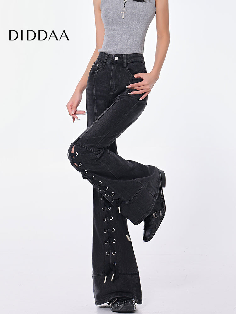 Black Strappy High Waist Bootcut Jeans for Women