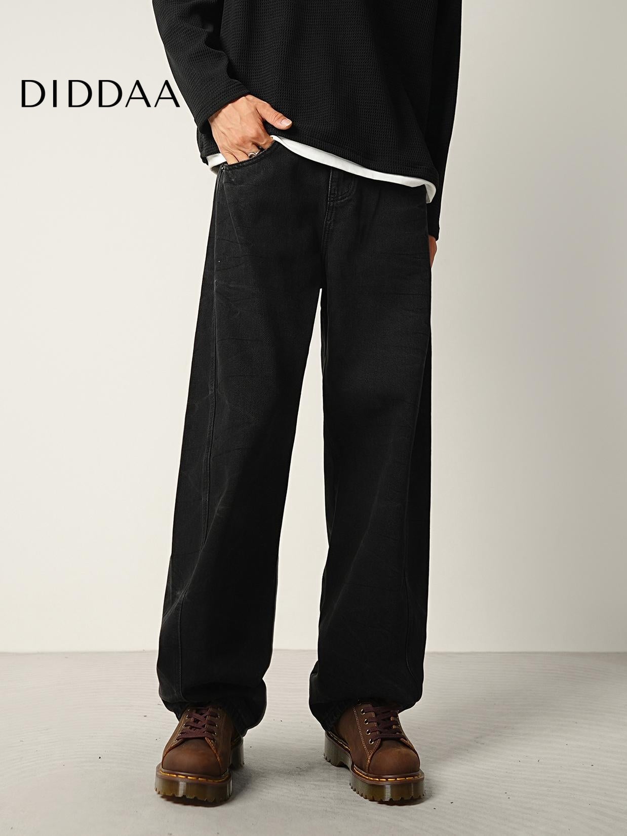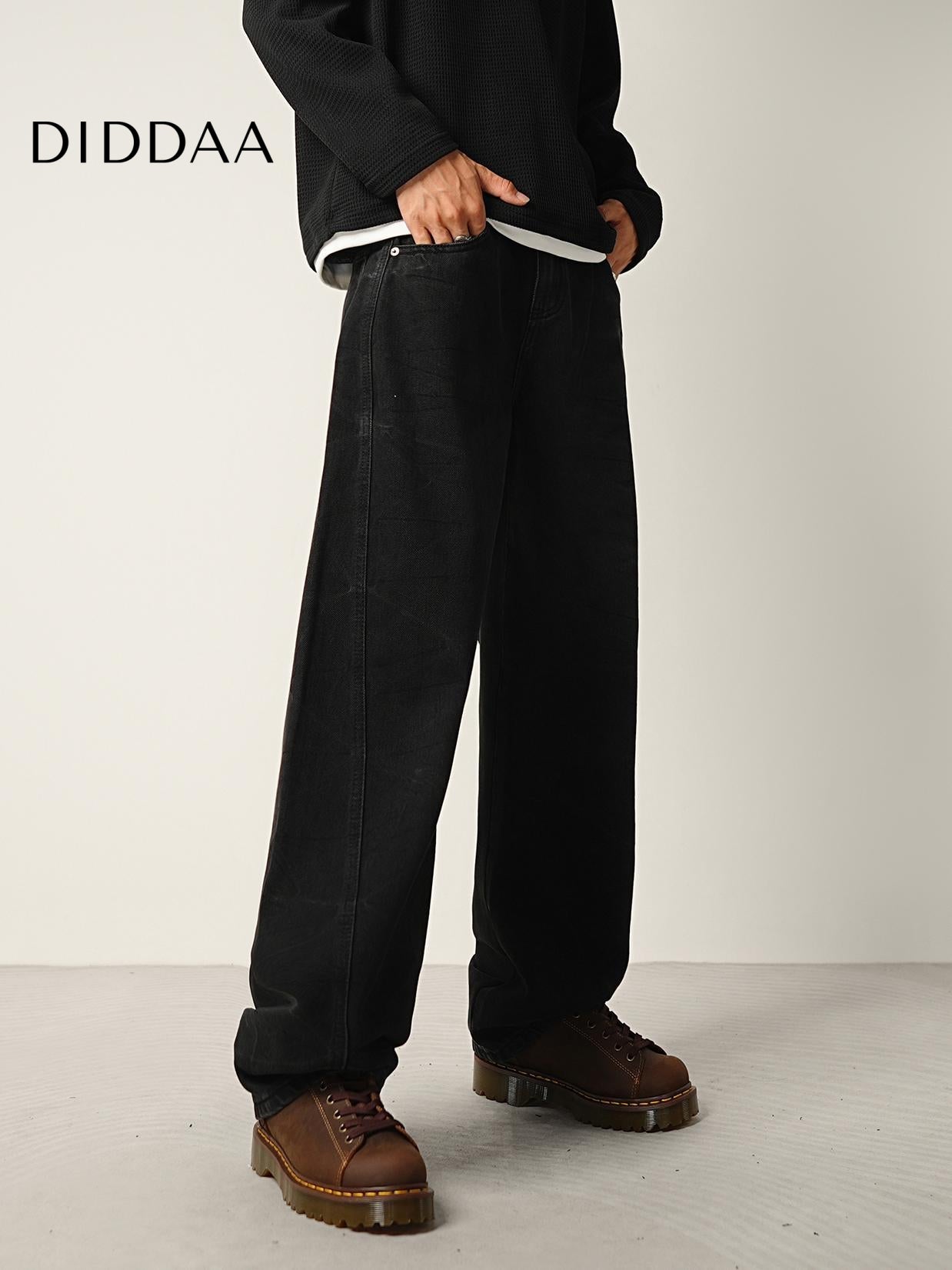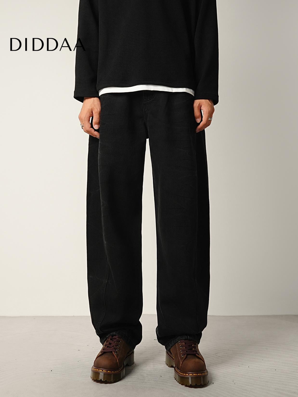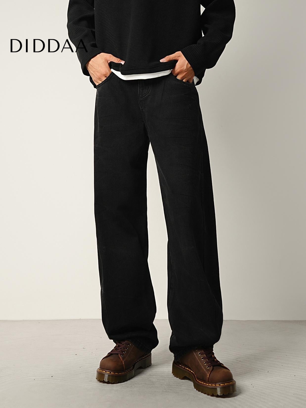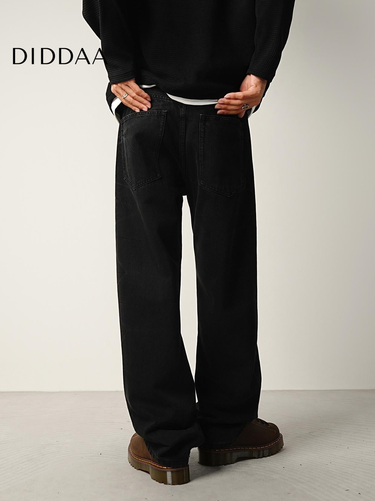 Black Water Pattern Tie Flower Loose Straight Jeans