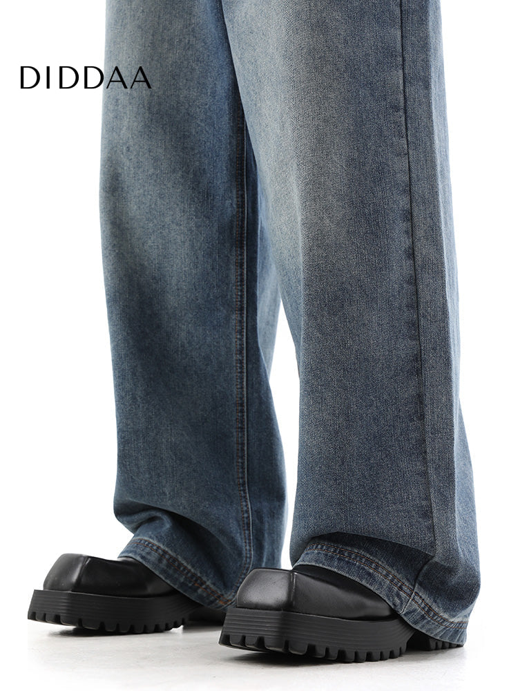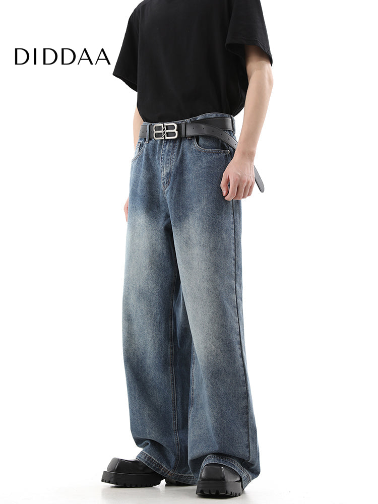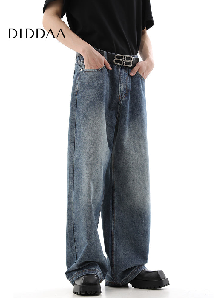 Blue Cleanfit Loose Wide-Leg Casual Jeans for Men