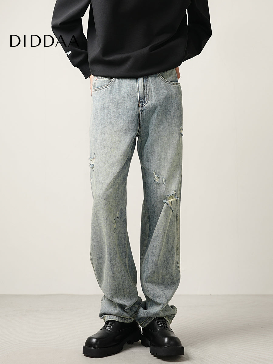 Blue Distressed Ripped Jeans Men's Casual Loose Trousers