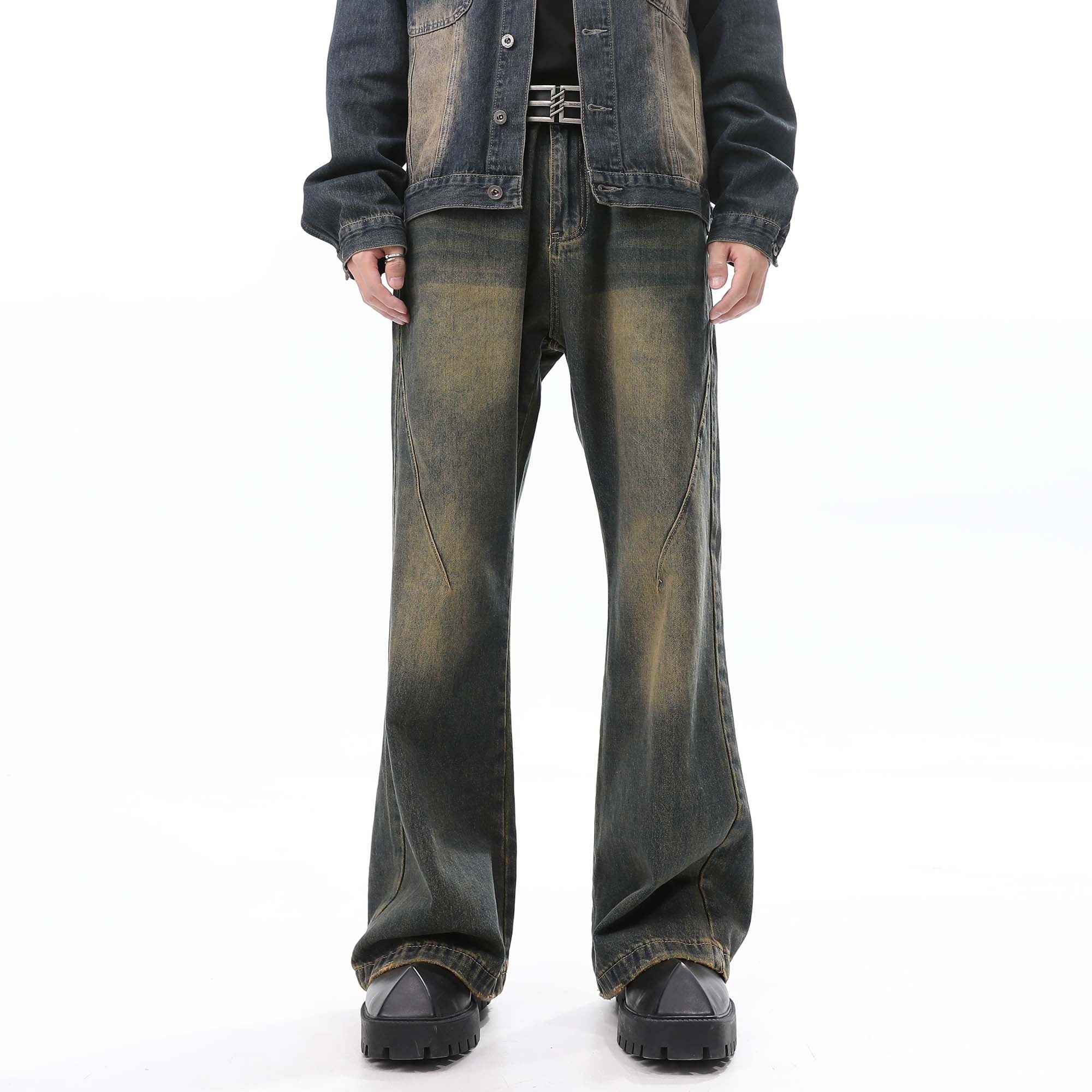Blue Distressed Washed Bootcut Jeans for Men