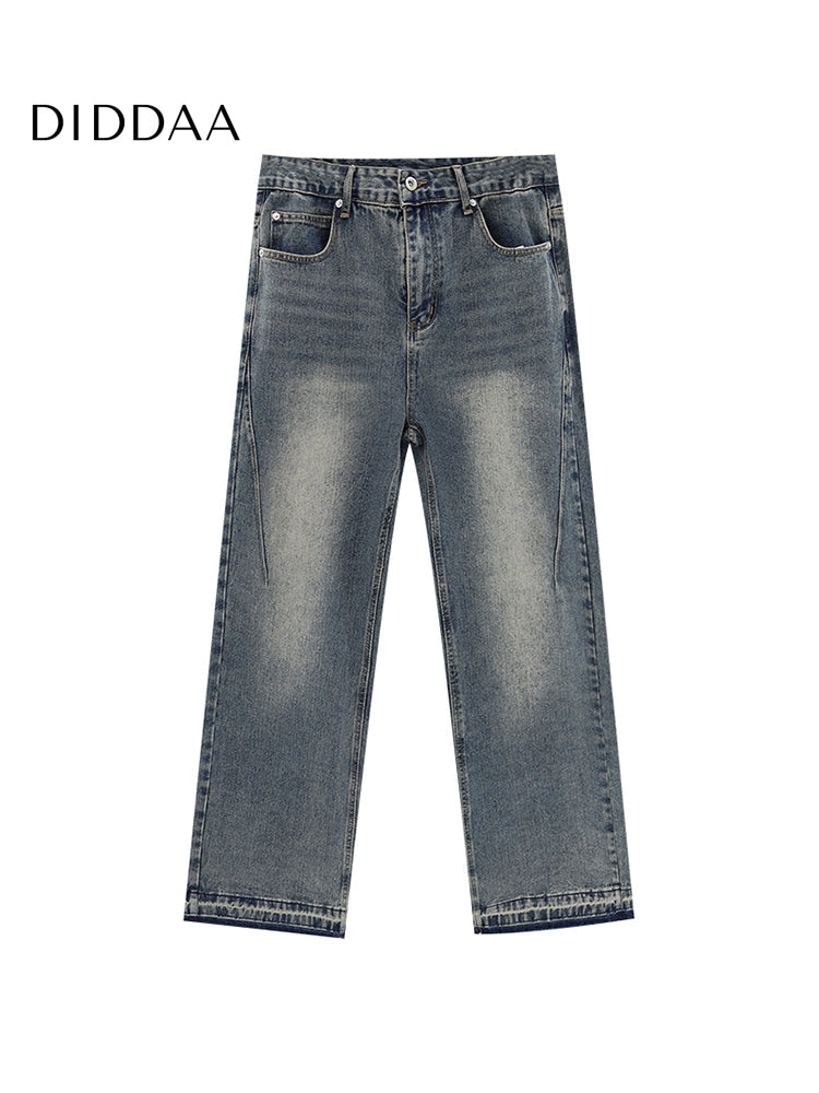 Blue Distressed Washed Straight Jeans for Men