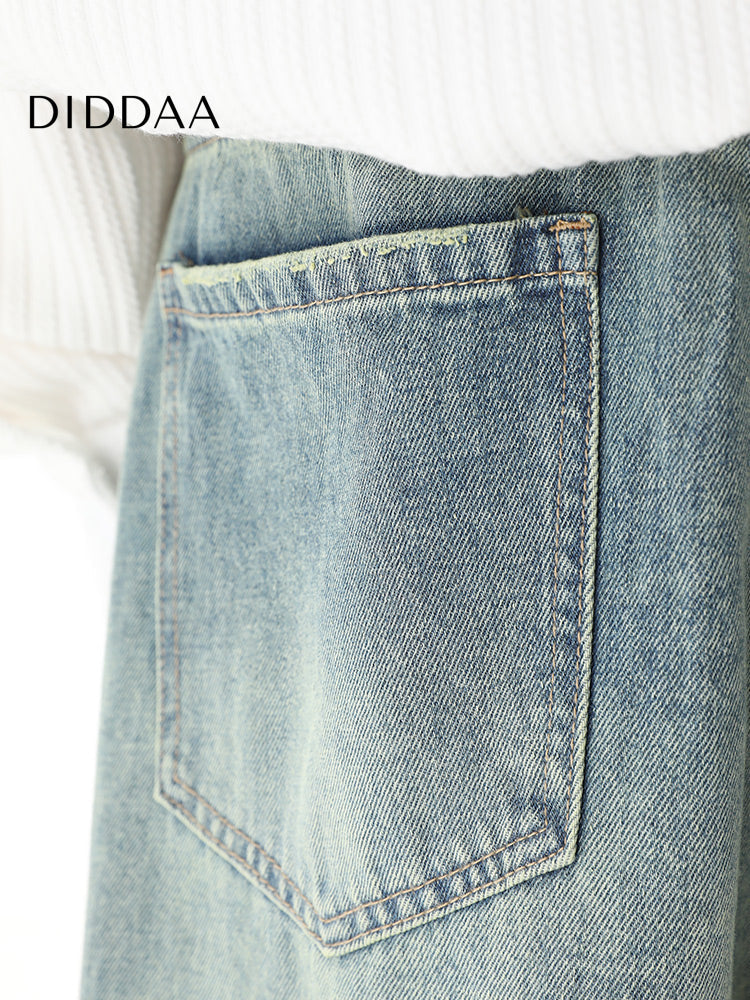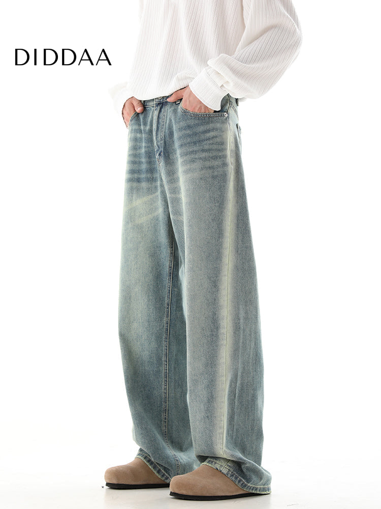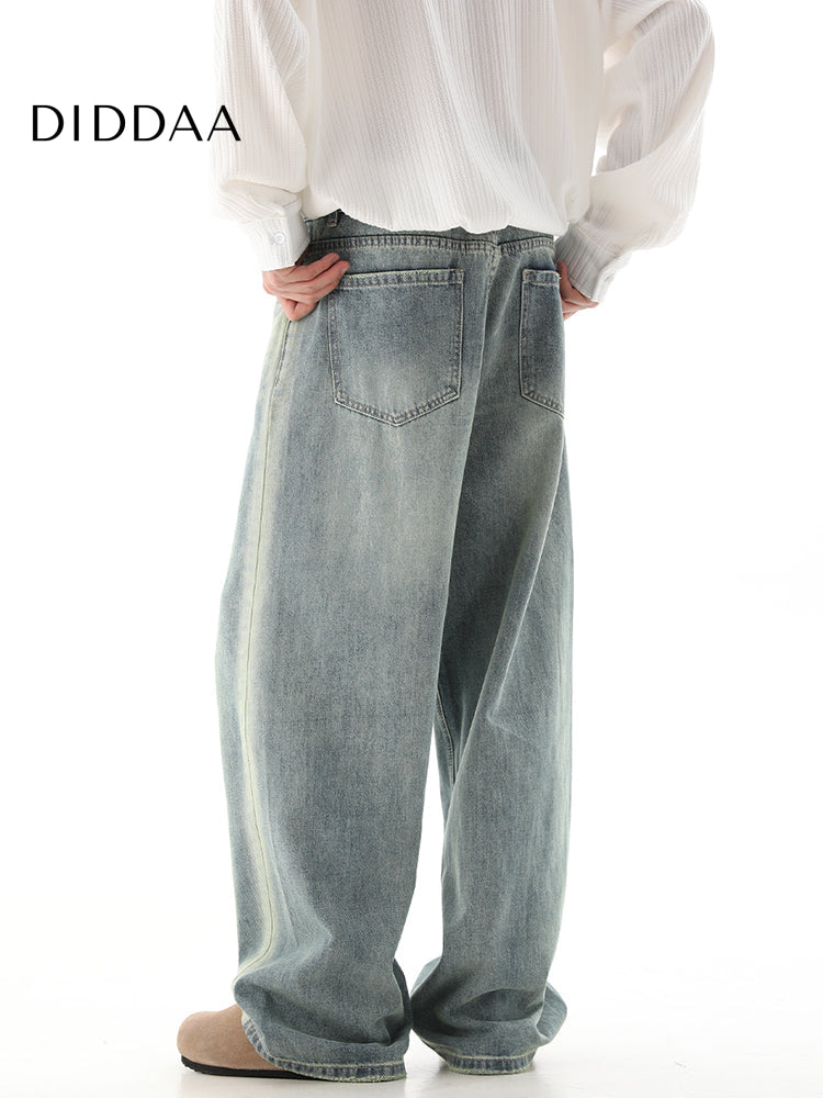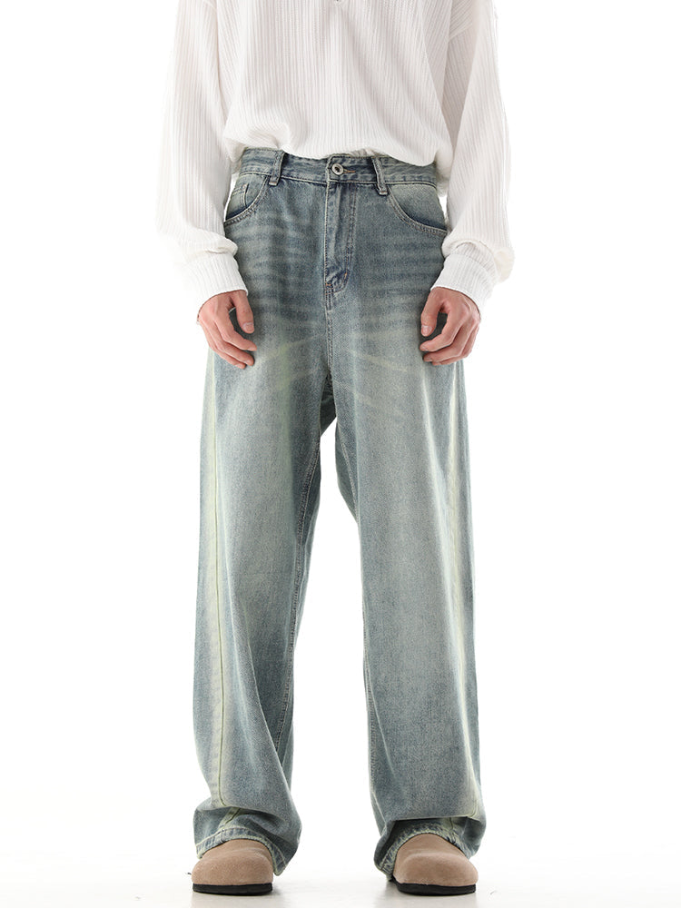 Blue Distressed Wide-Leg Vintage Jeans for Men