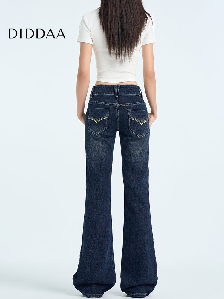 Blue Double-Button Hip Lifting Slim Bootcut Jeans