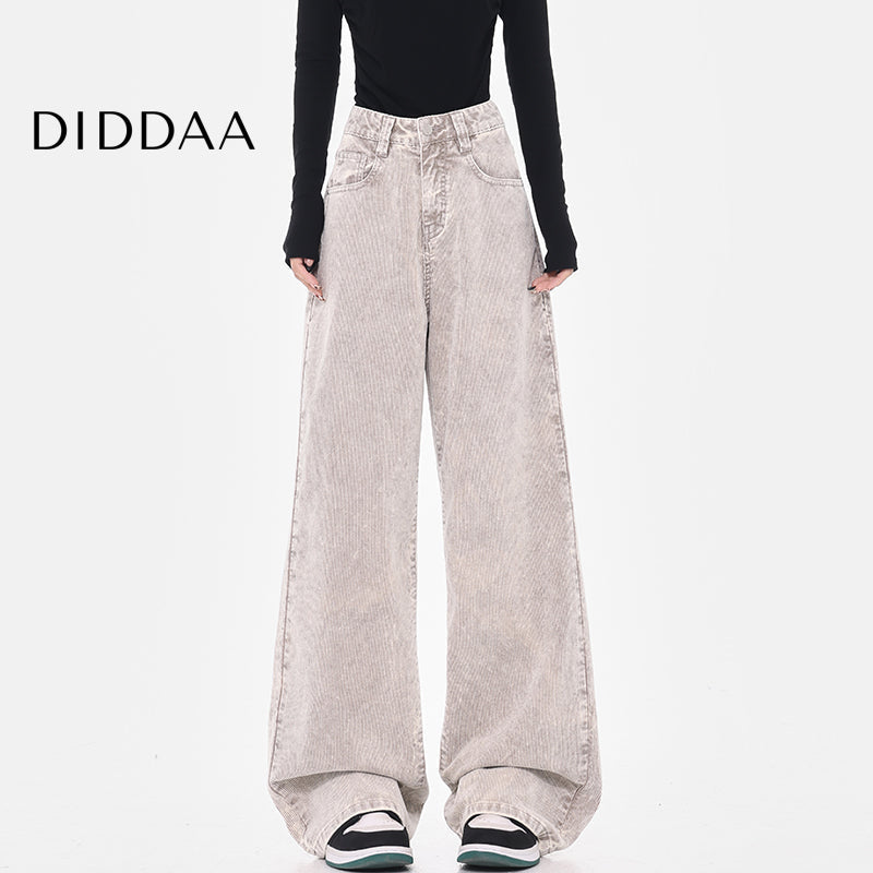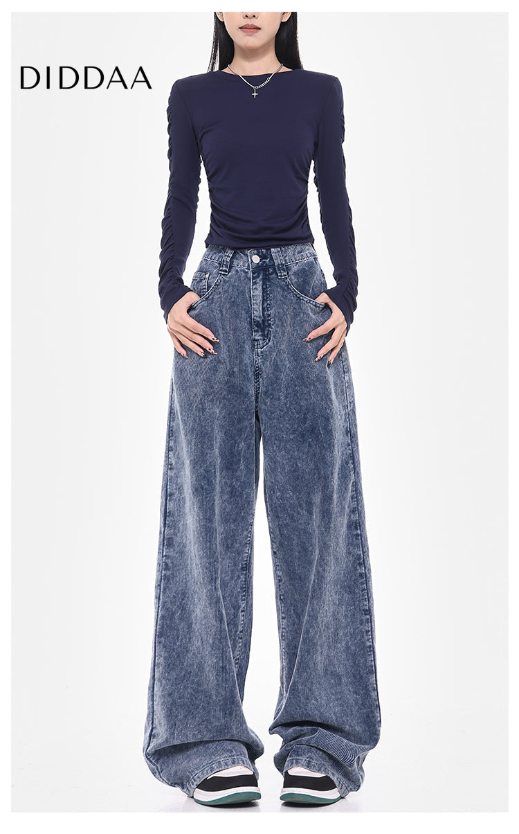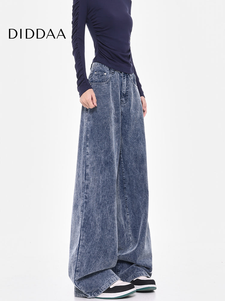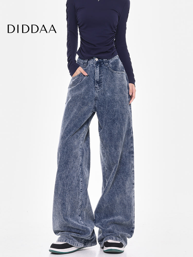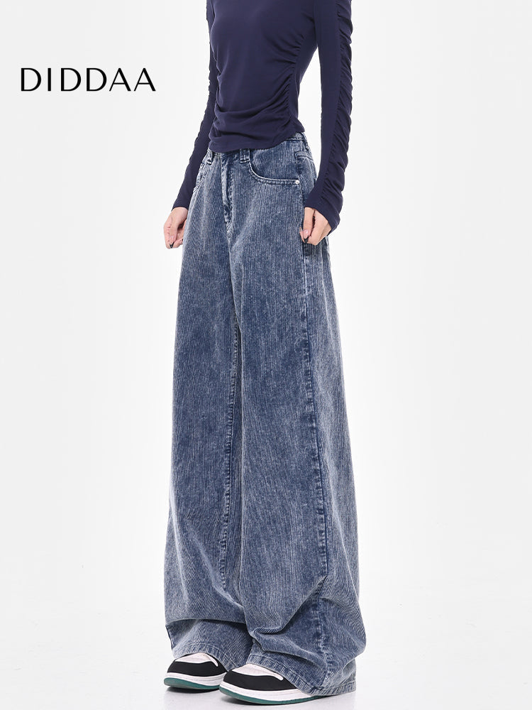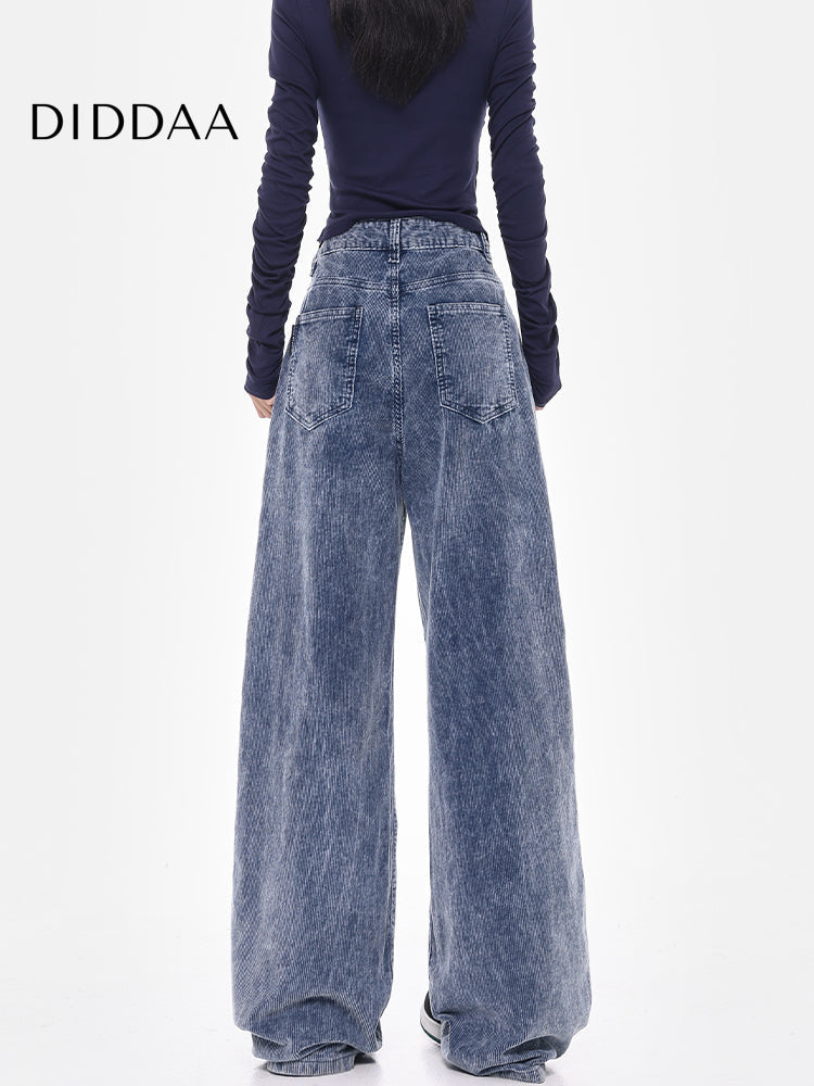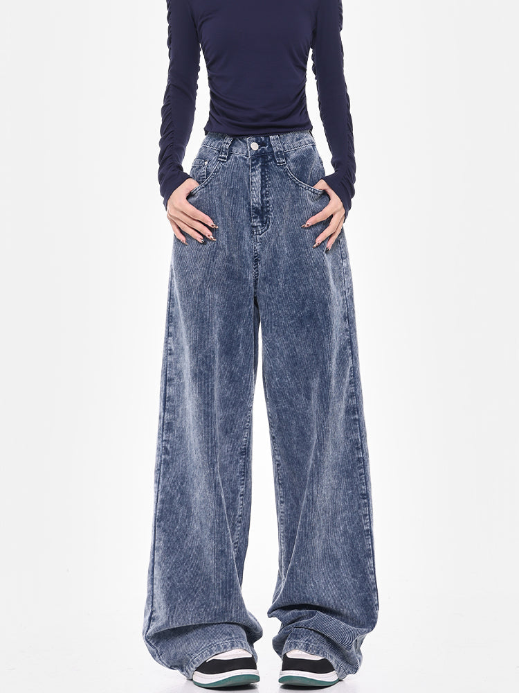 Blue High Waist Loose Wide-Leg Corduroy Jeans
