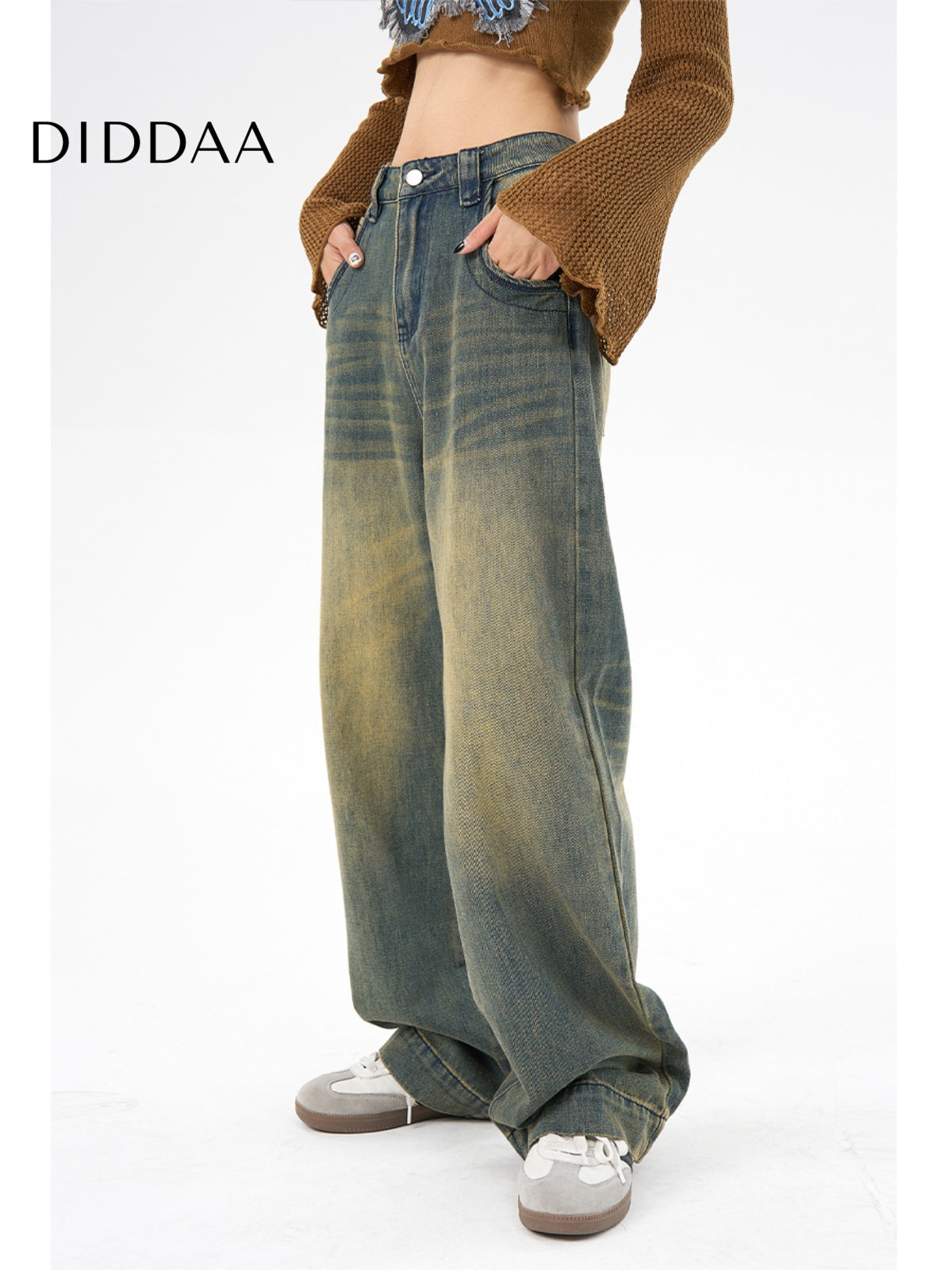 Blue High Waist Wide Leg Jeans Women AGUA Retro Style