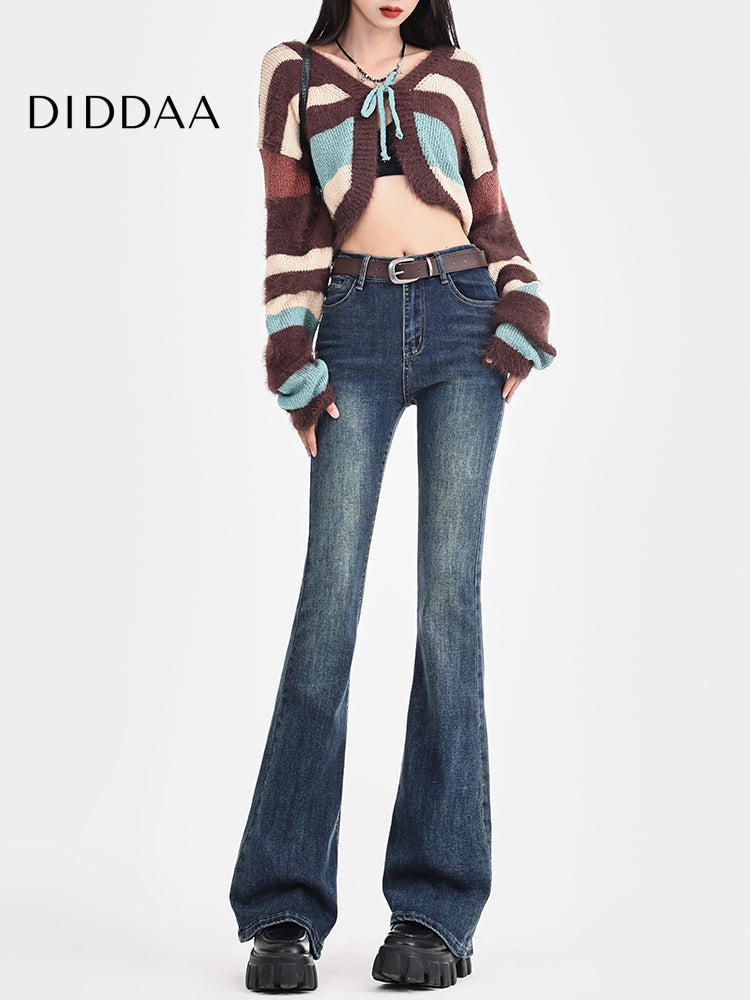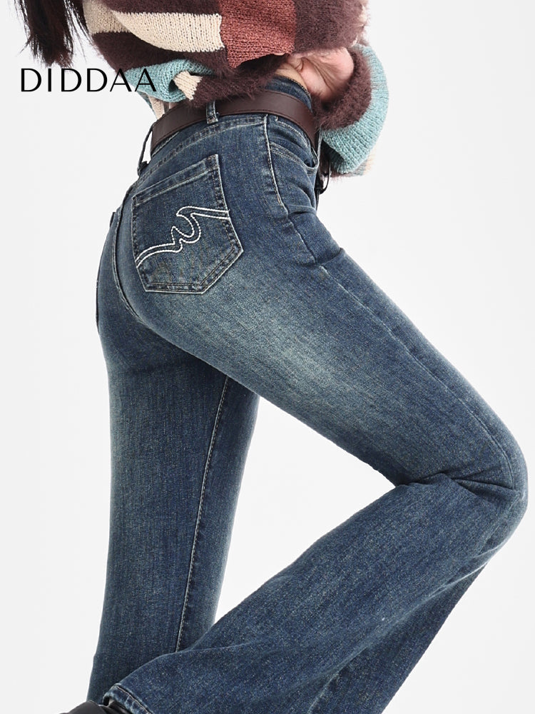 Blue High-Waisted Embroidered Retro Micro Flared Jeans