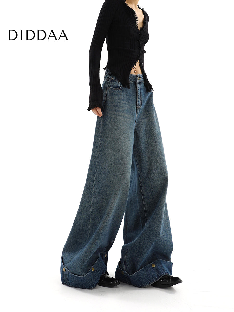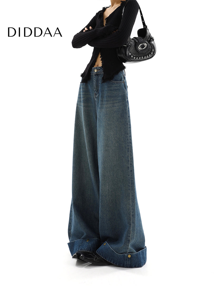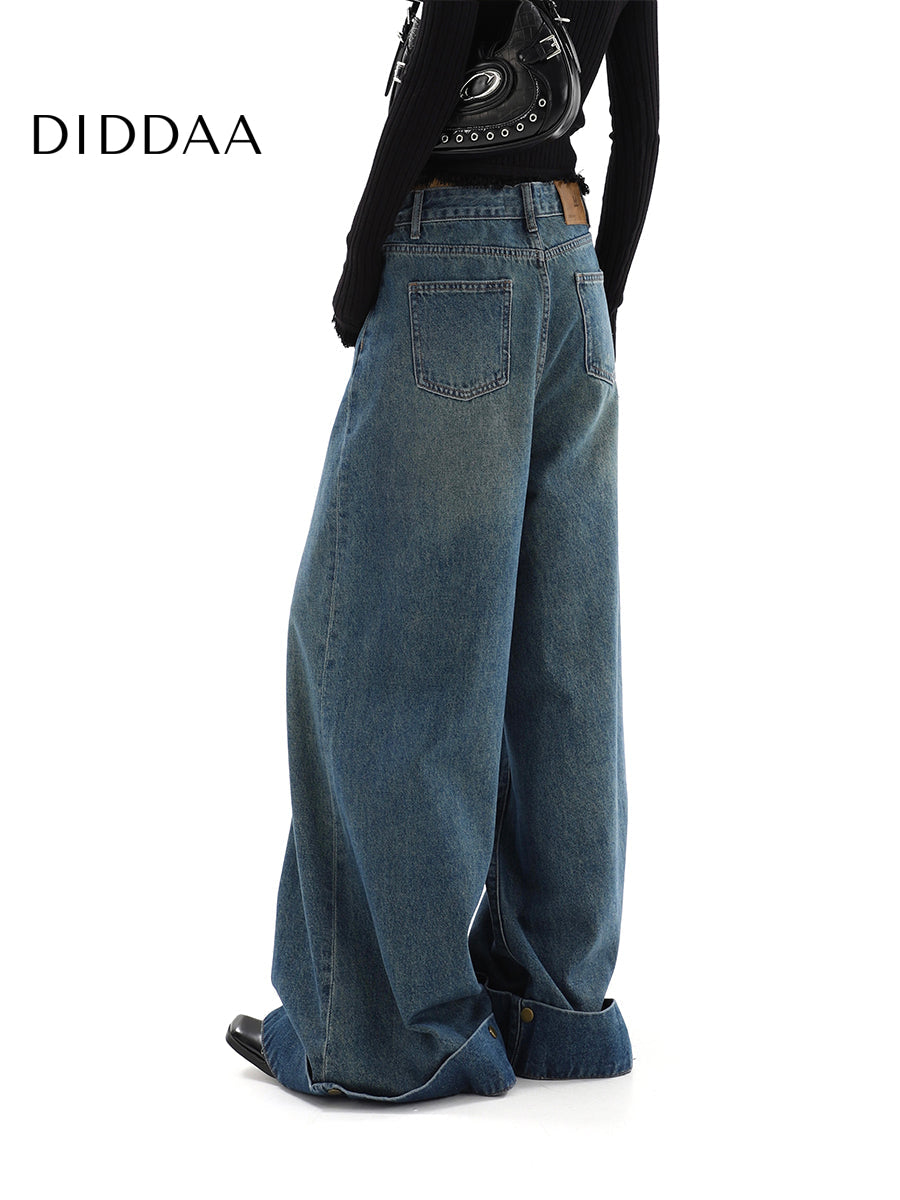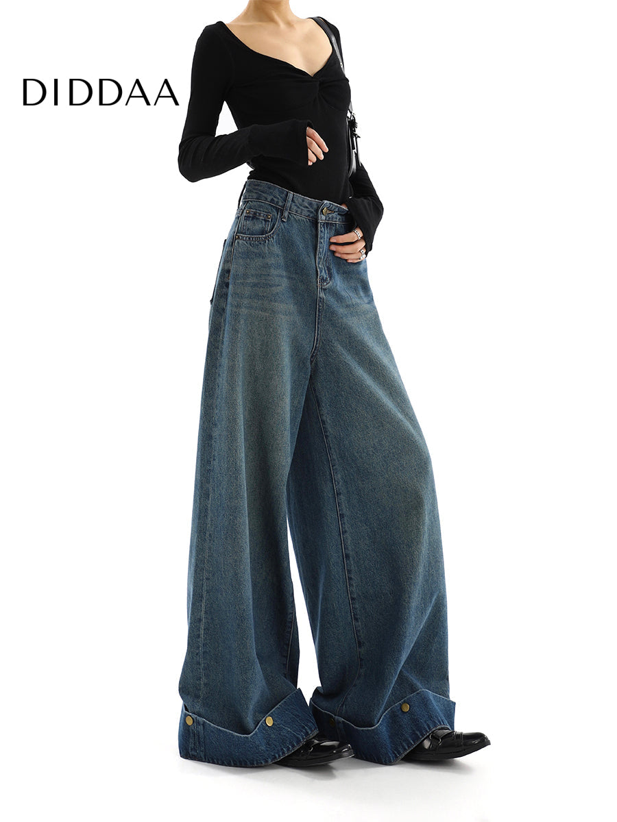 Blue High-Waisted Loose Fit Wide-Leg Jeans