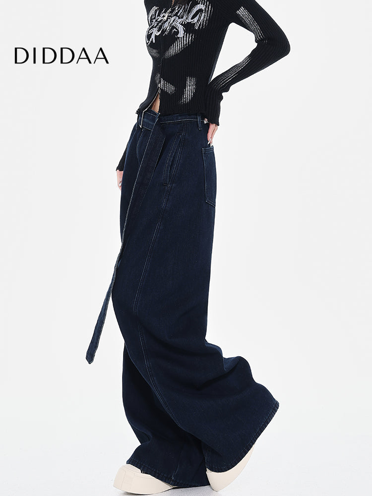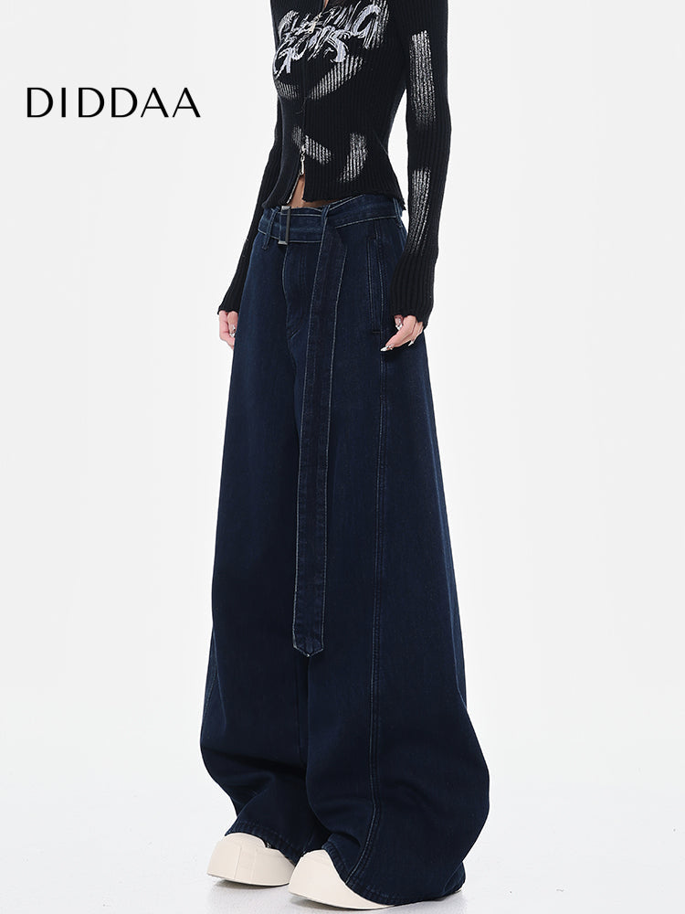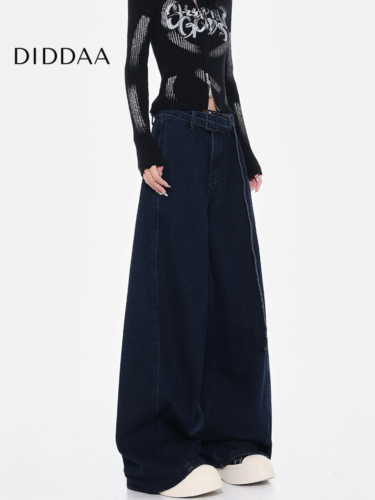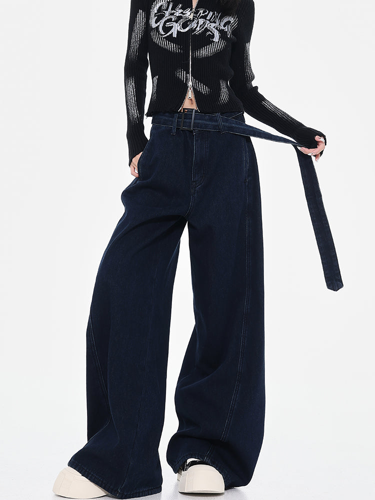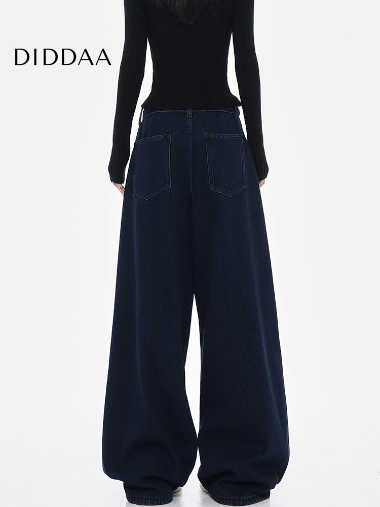 Blue High-Waisted Loose Wide-Leg Jeans Retro Design