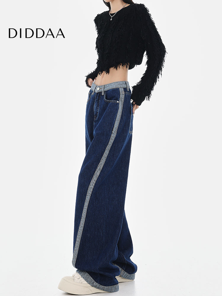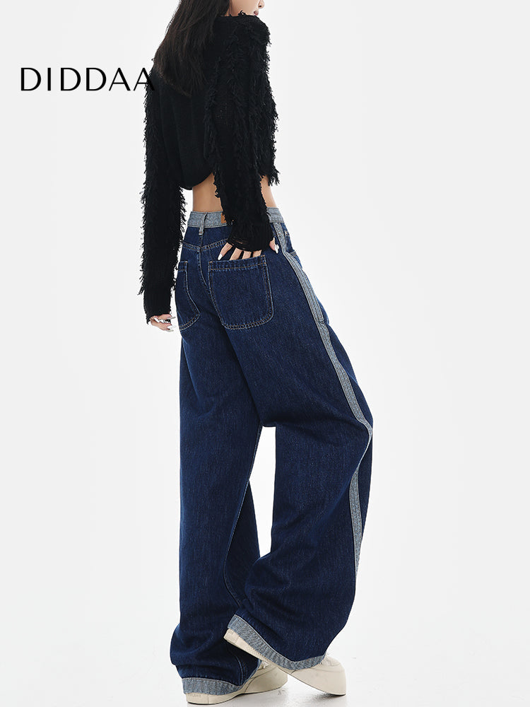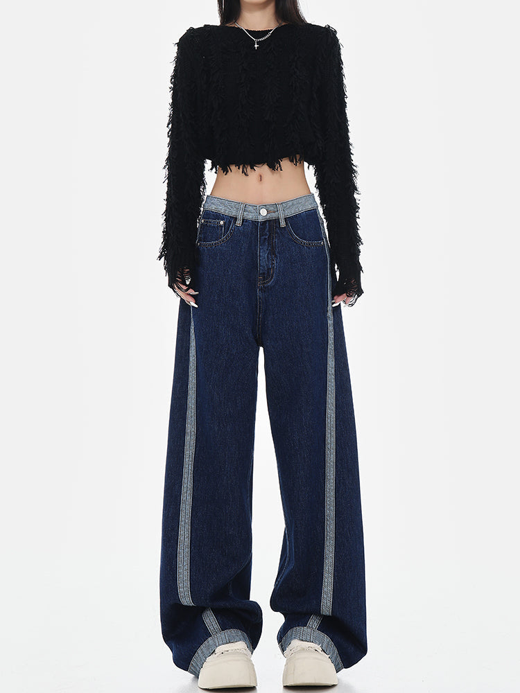 Blue High-Waisted Wide-Leg Contrasting Stitch Jeans