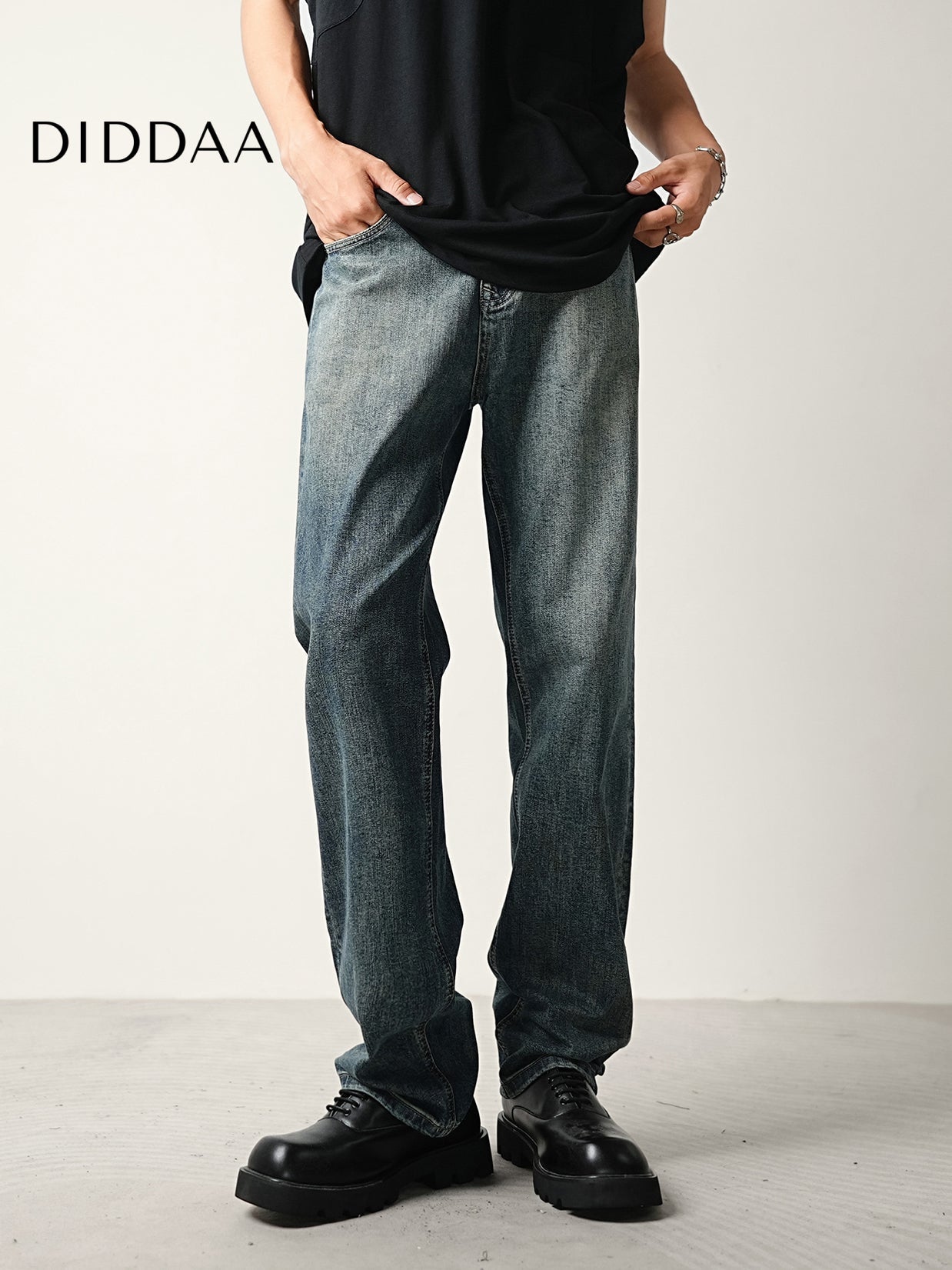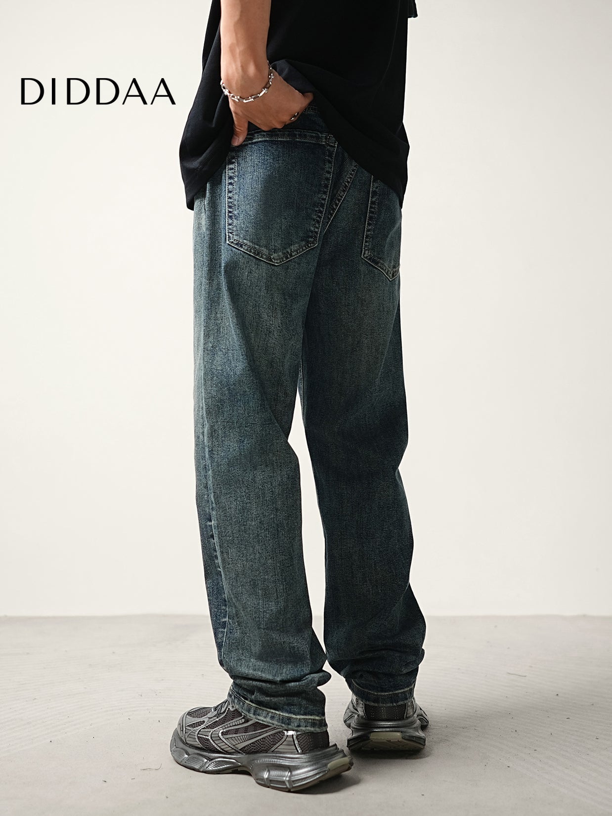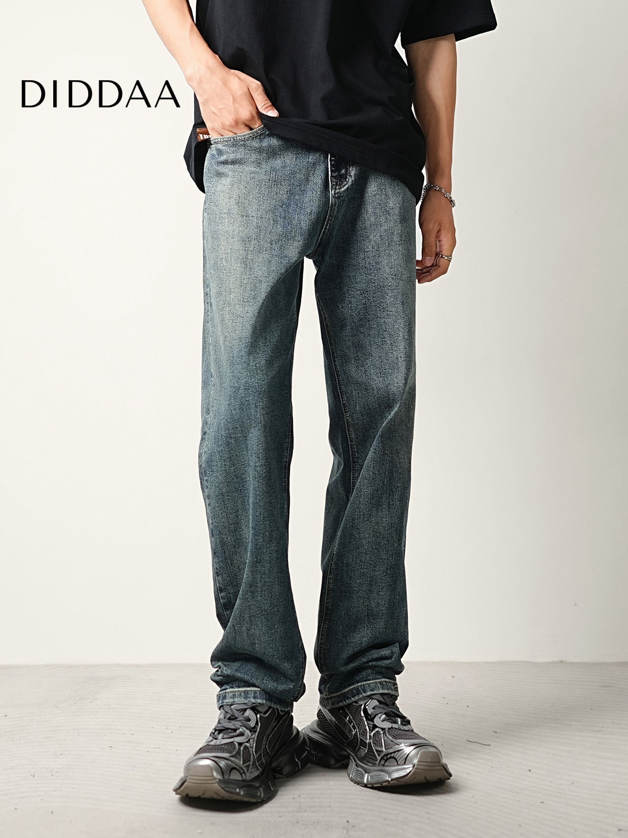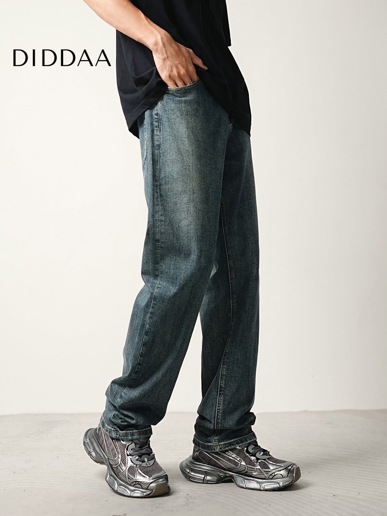 Blue Layered Wash Stretch Jeans Men's Summer Loose Trousers