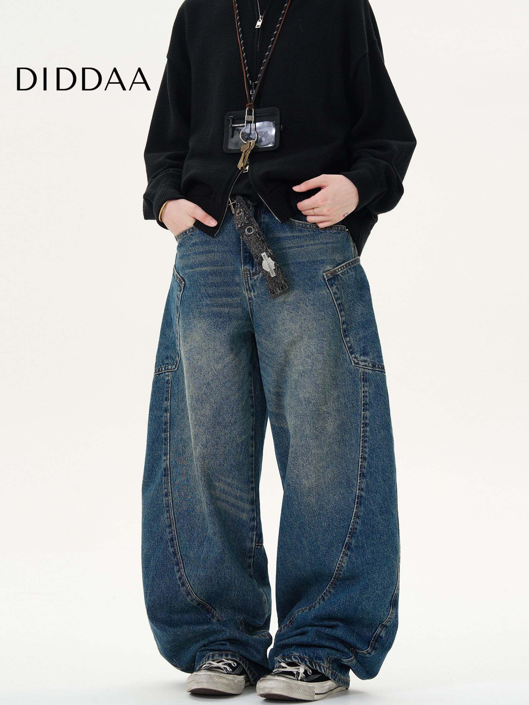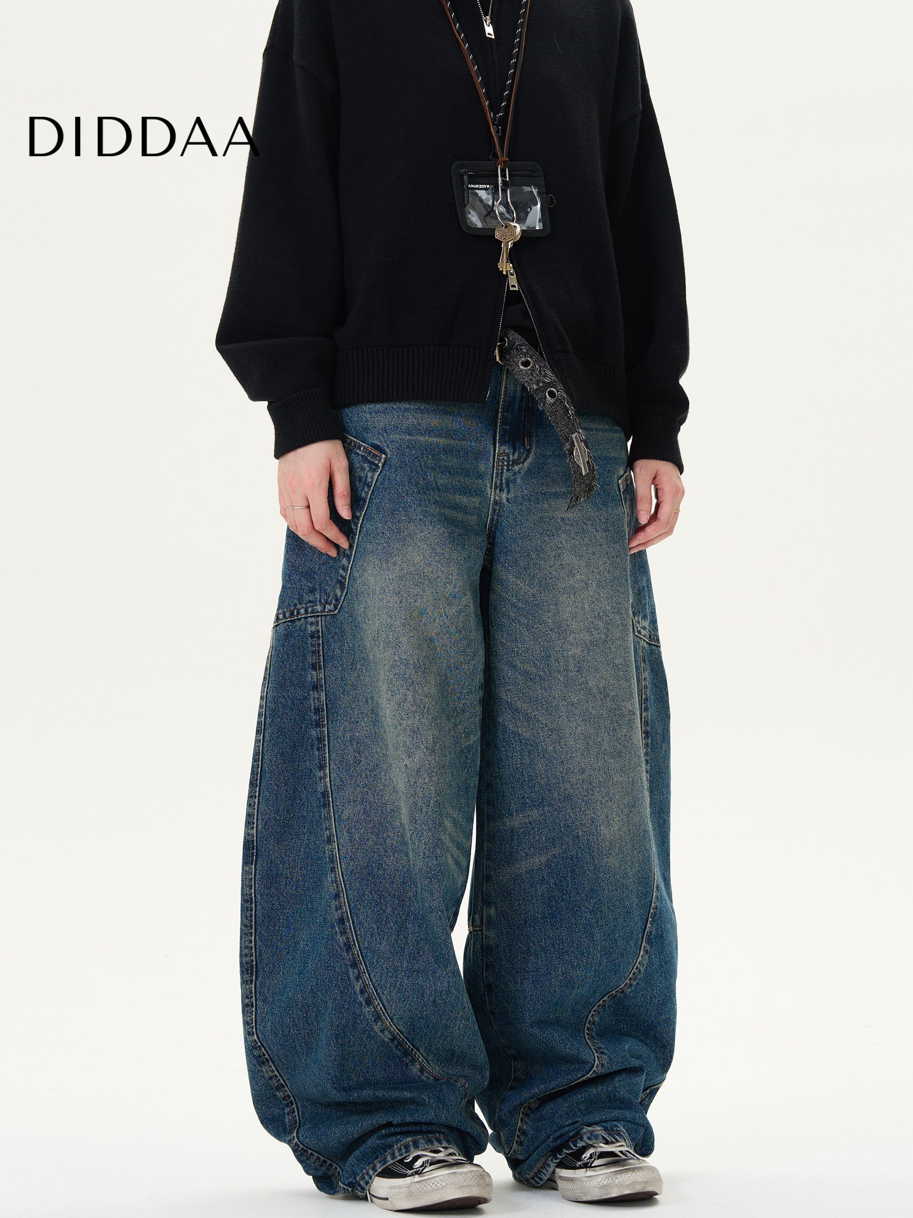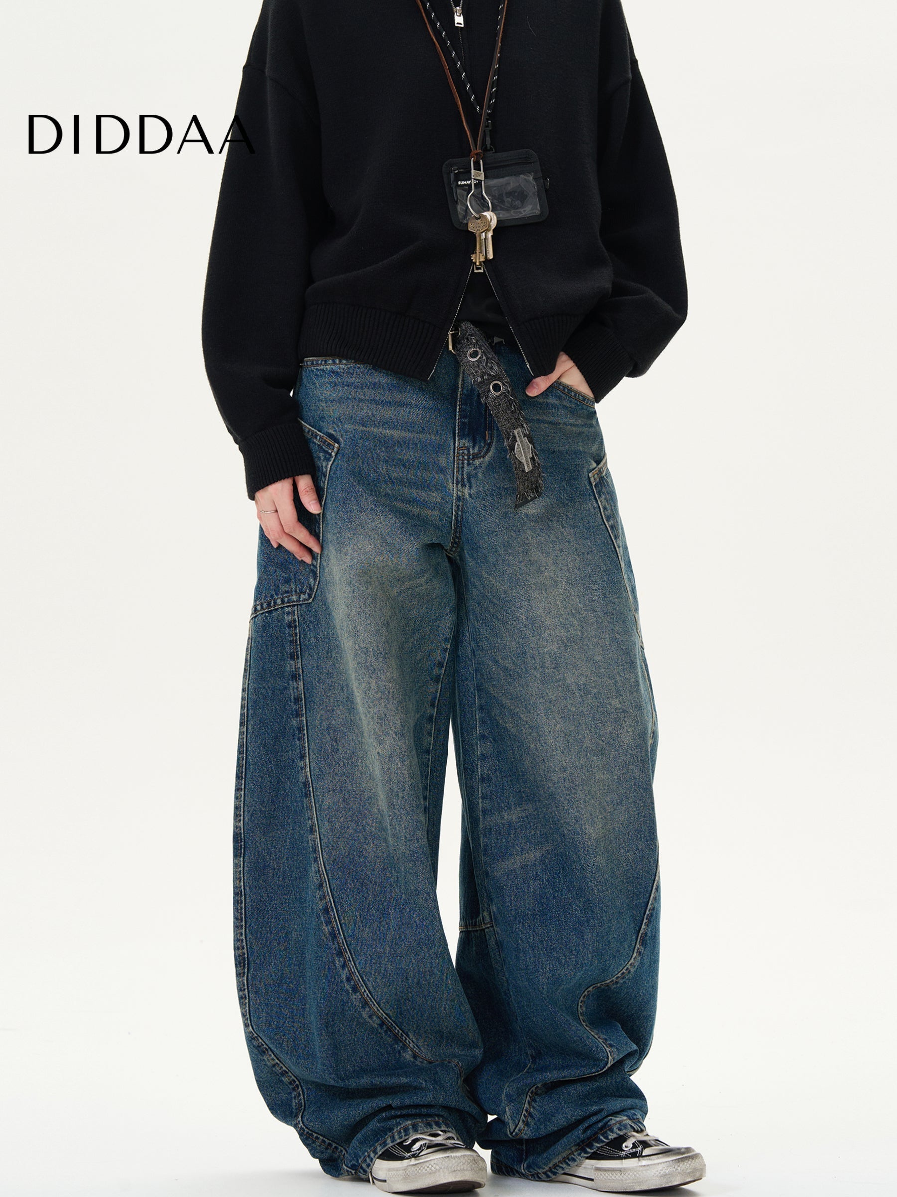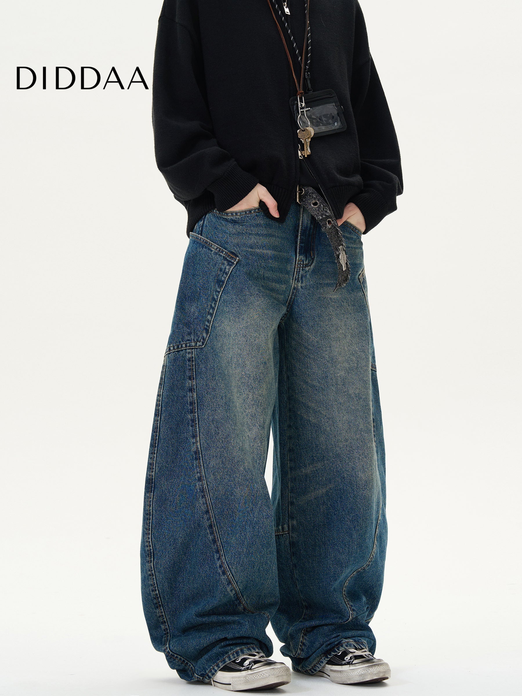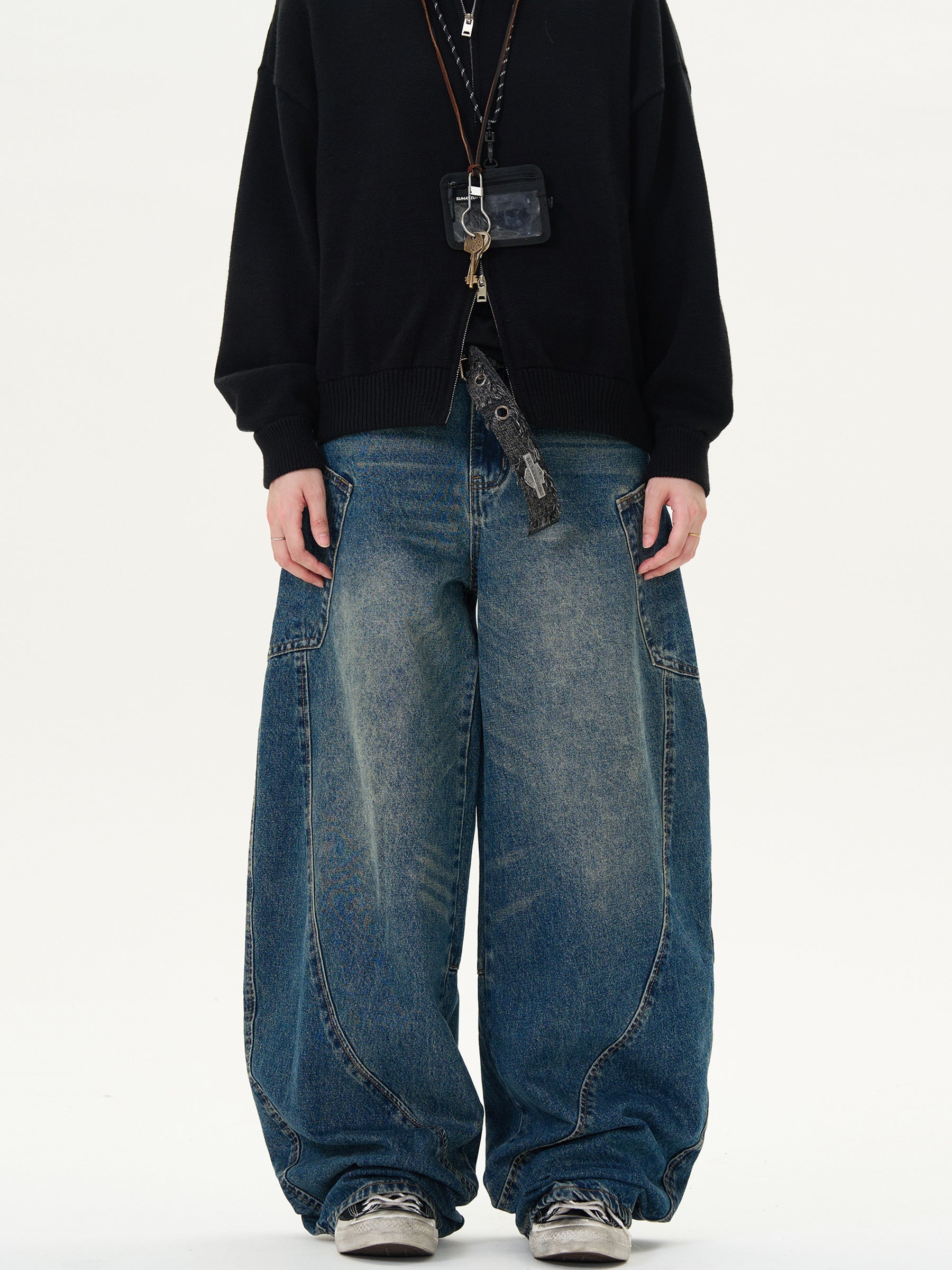 Blue Loose Fit Deconstructed Wide Leg Jeans