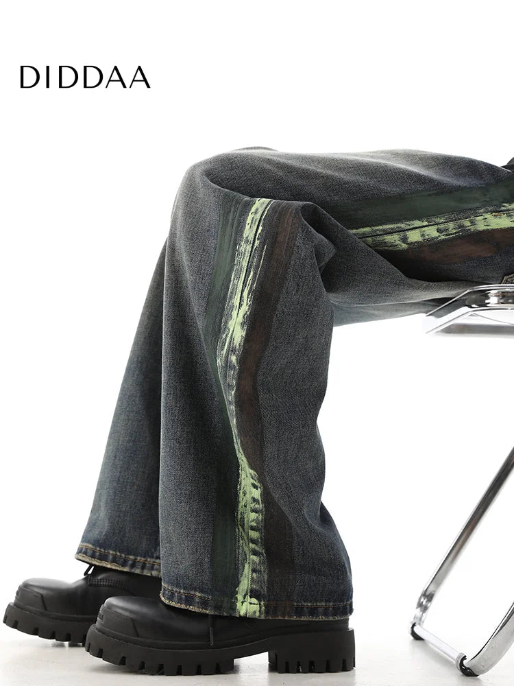 Blue Loose Fit Graffiti Straight Jeans for Men