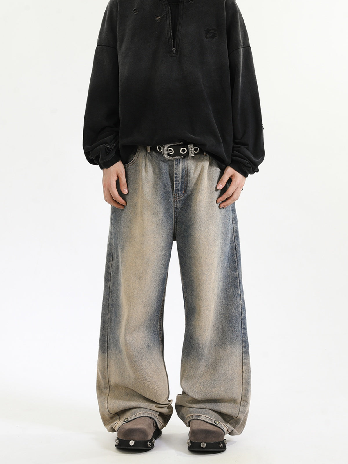 Blue Loose Fit Retro Wide-Leg Jeans for Men and Women