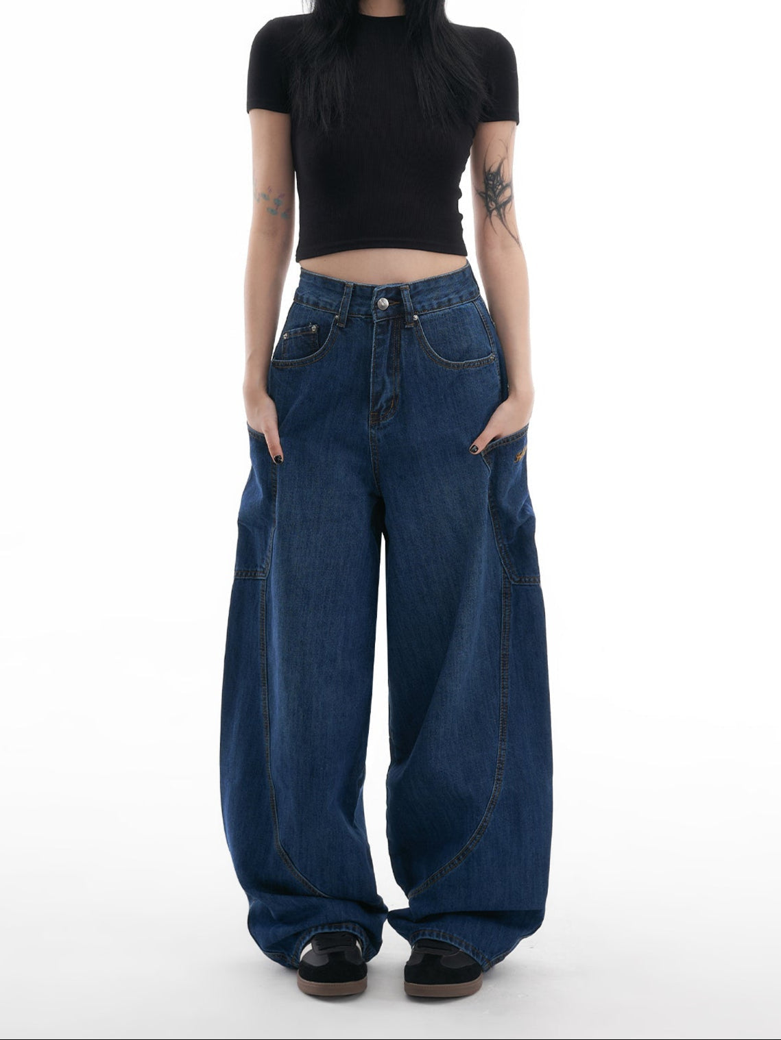 Blue Loose Fit Scimitar Jeans Women's Wide-Leg Trousers