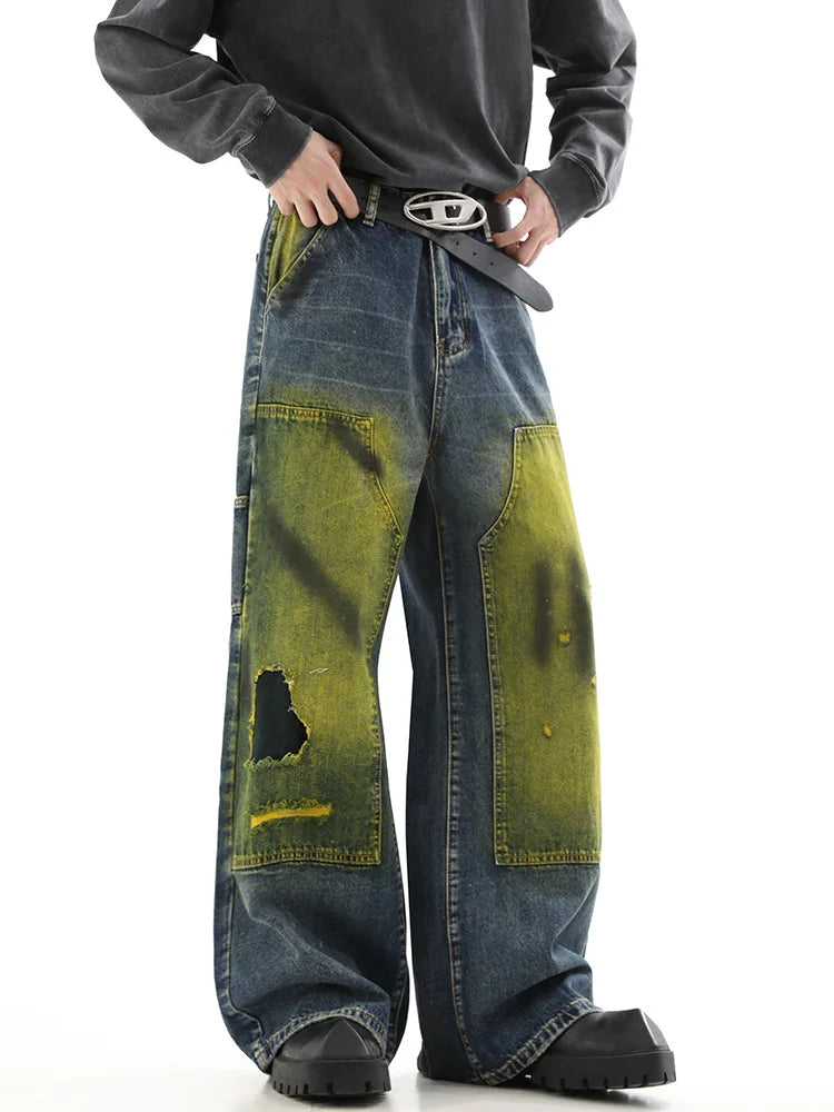 Blue Niche Design Loose Wide Leg Hip-Hop Jeans