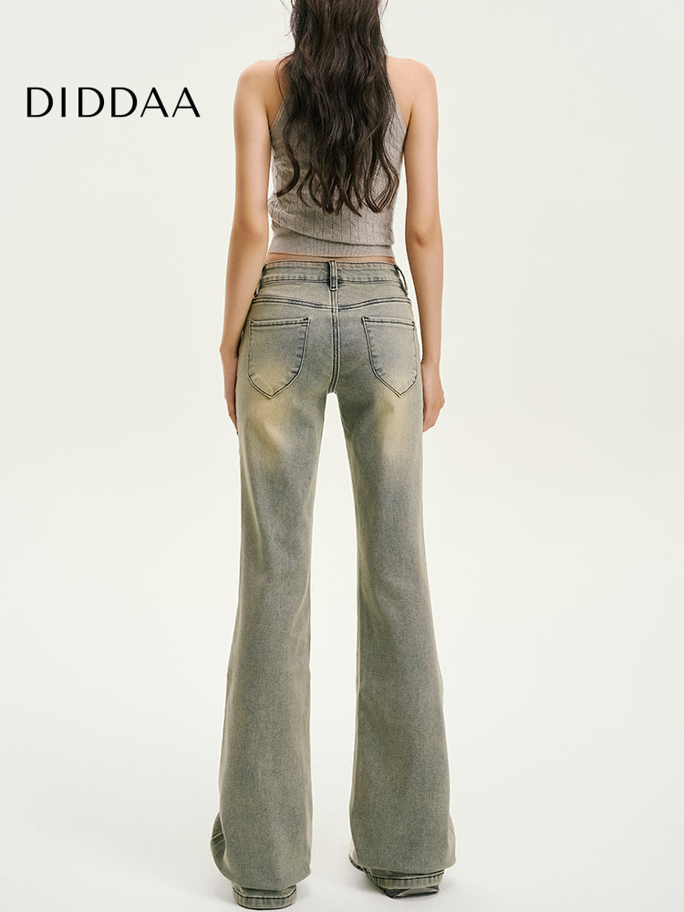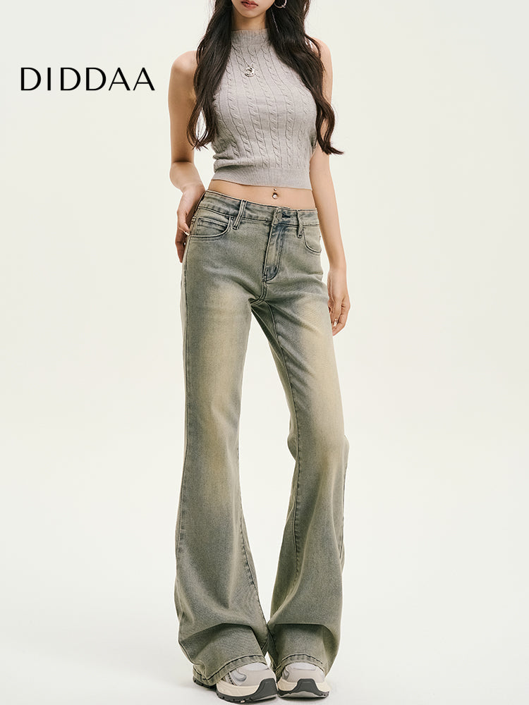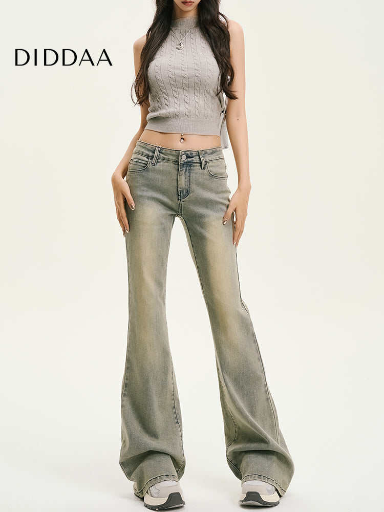 Blue Non-Sticky Bootcut Jeans for Women Retro Style