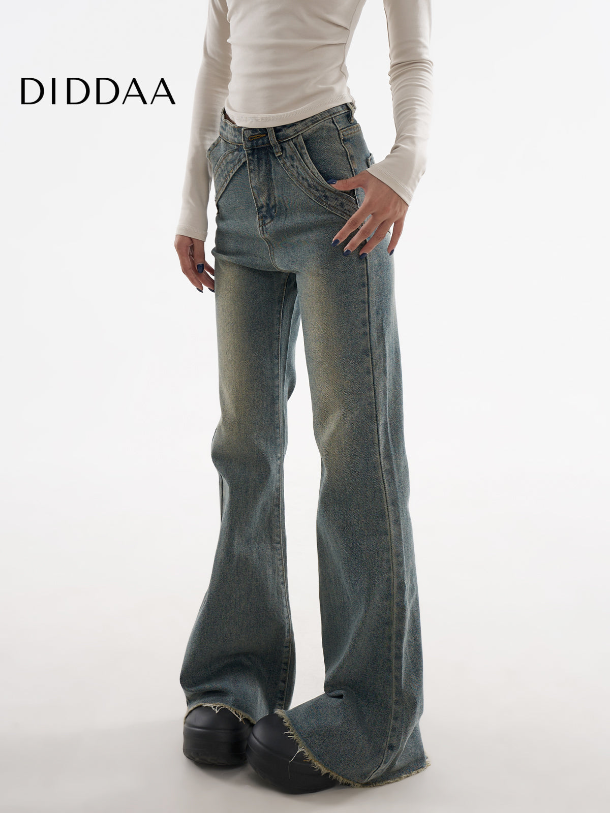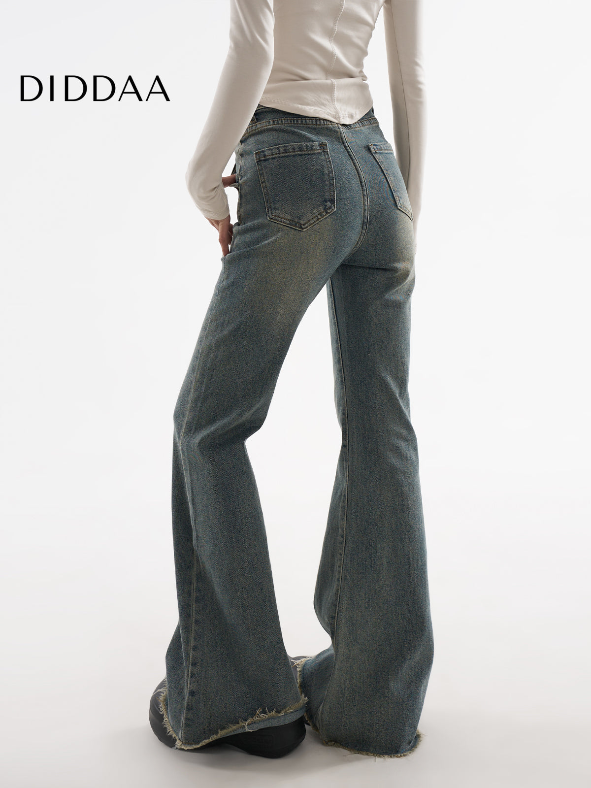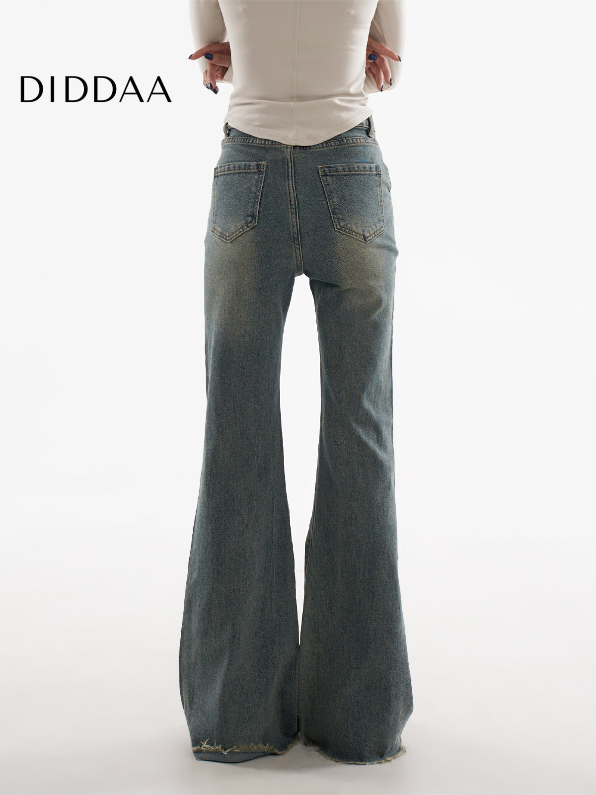 Blue Raw Edged Low Rise Flared Jeans for Women