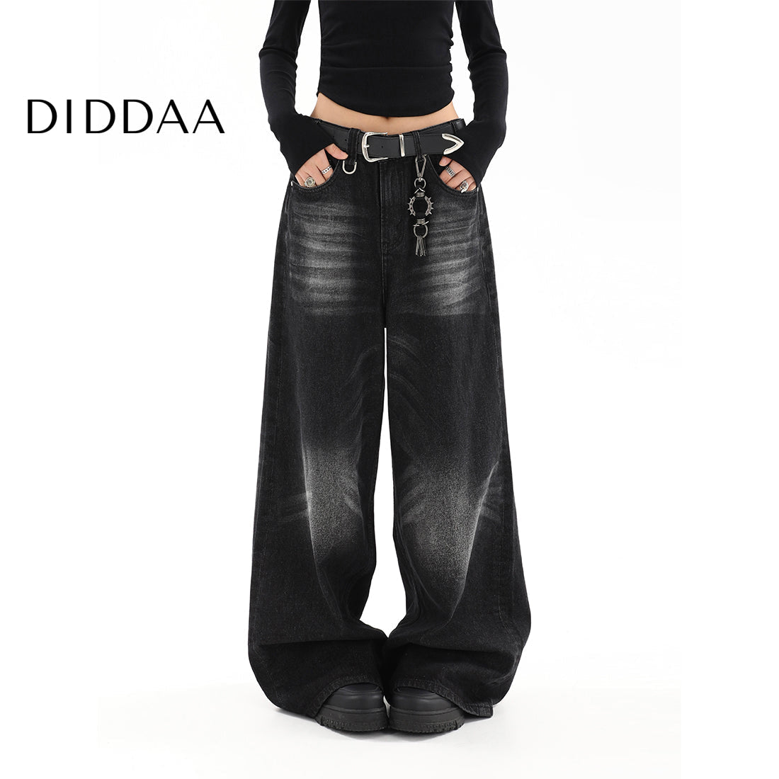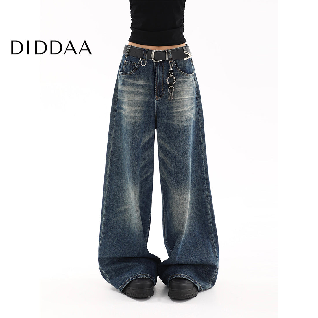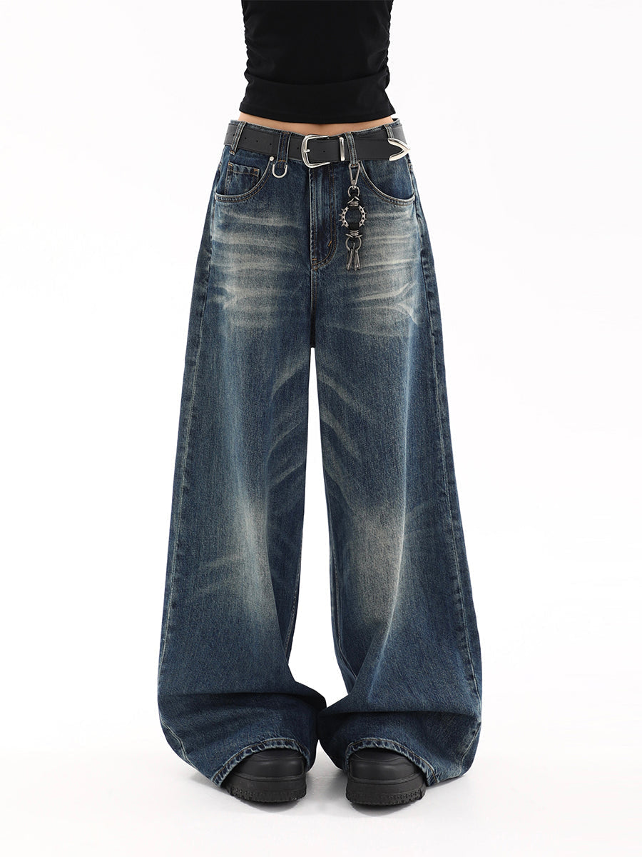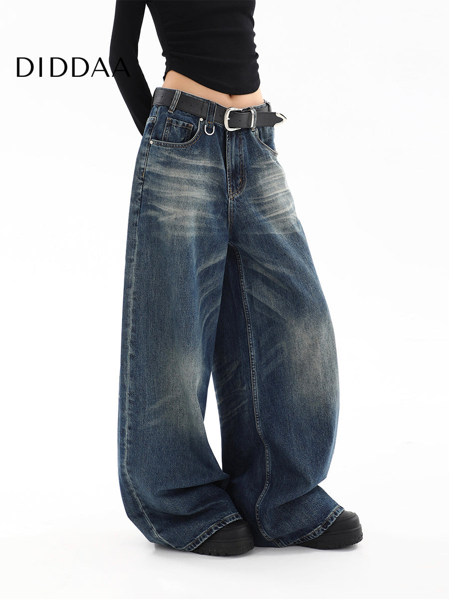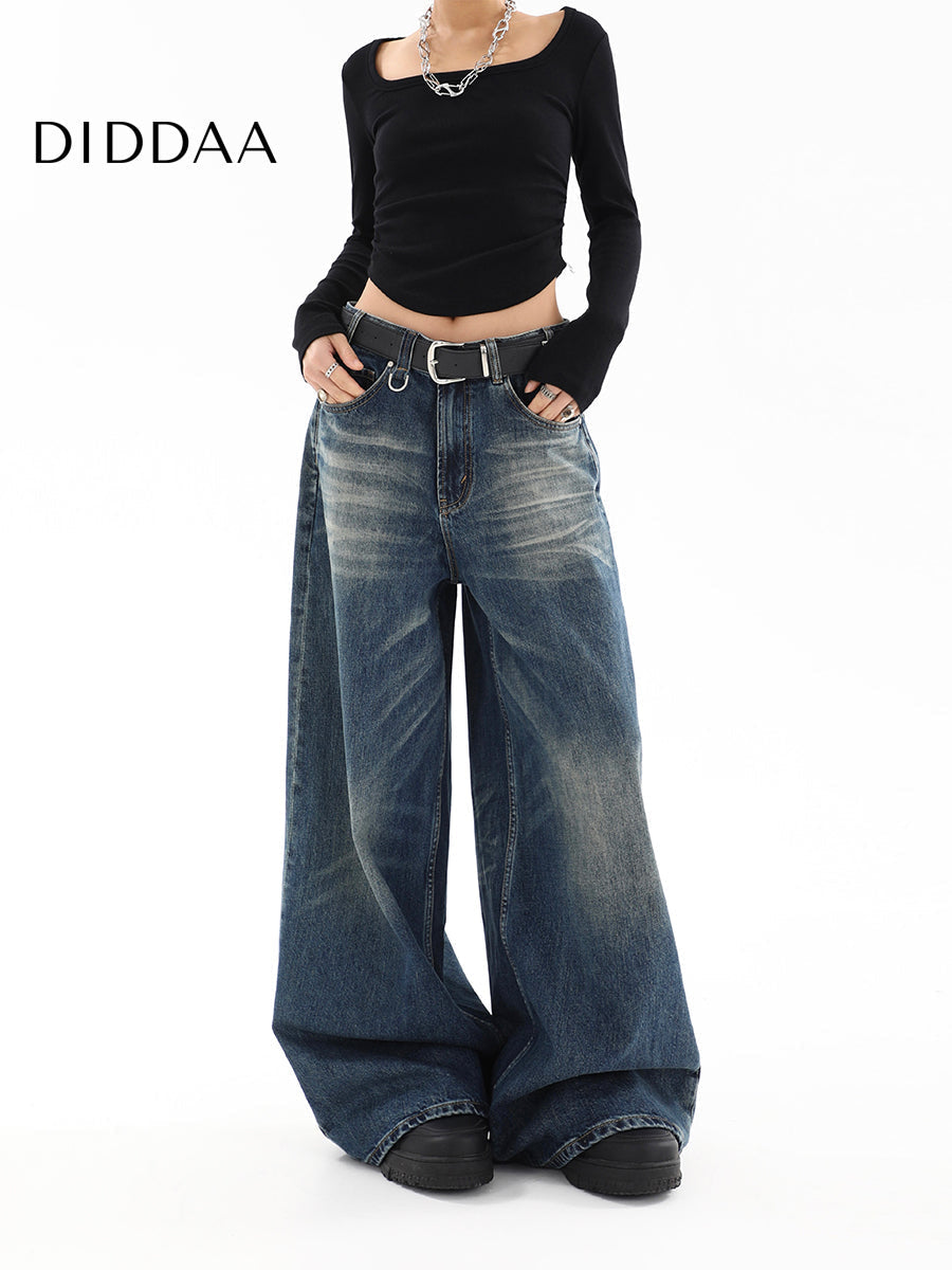 Blue Retro Distressed Wide-Leg Jeans Women's 2025