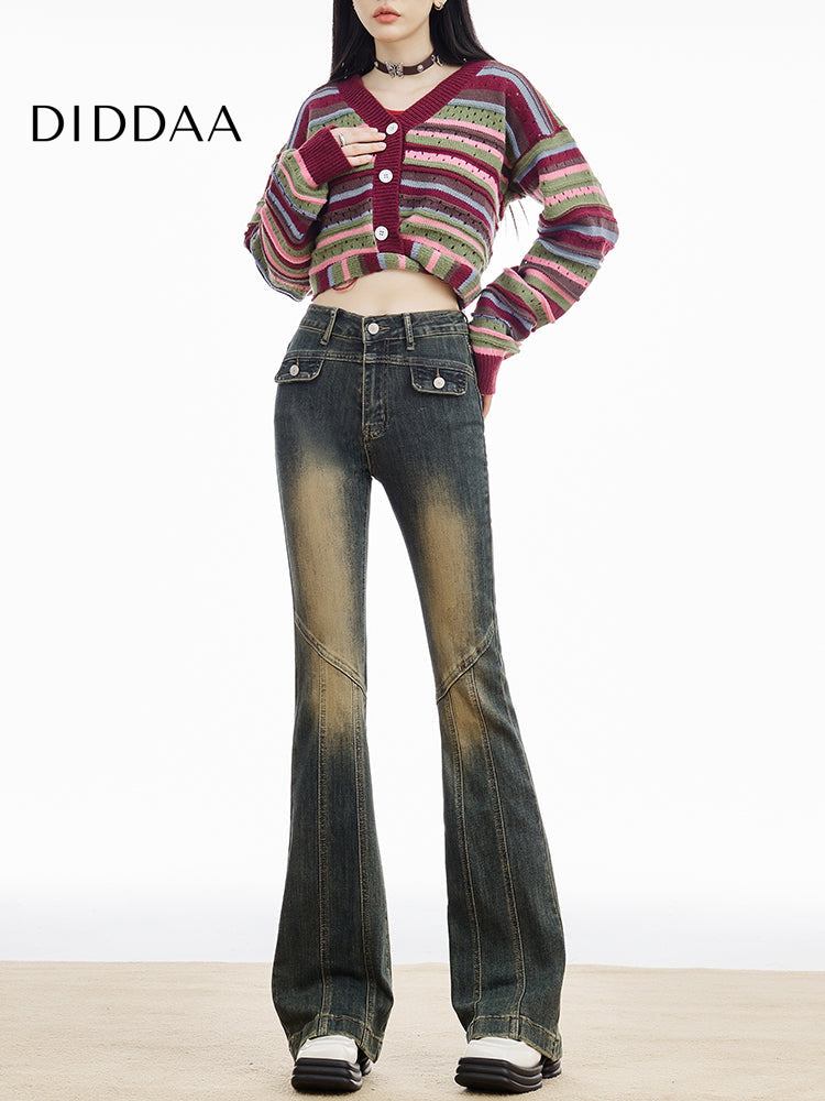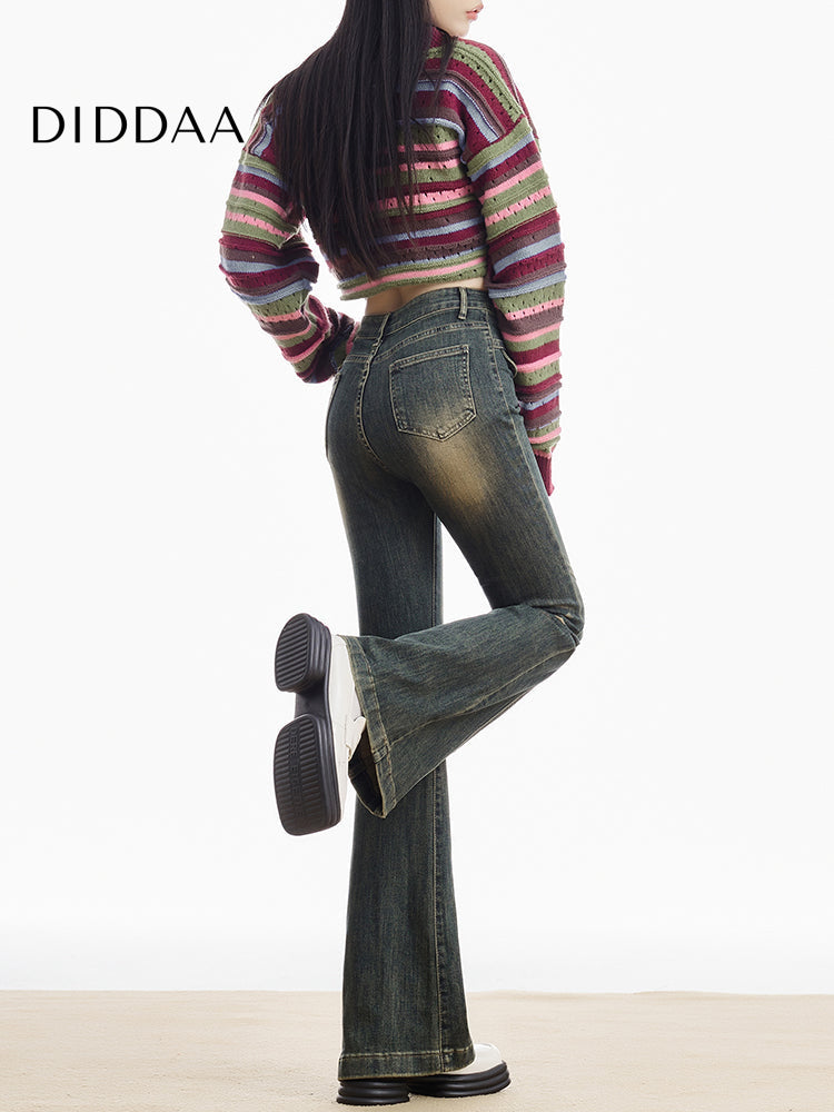 Blue Retro High-Waisted Slim Stretch Flared Jeans