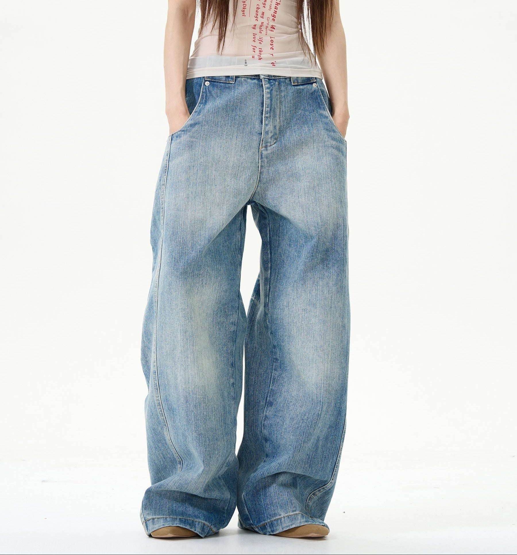 Blue Retro Slub Pattern Scimitar Pants