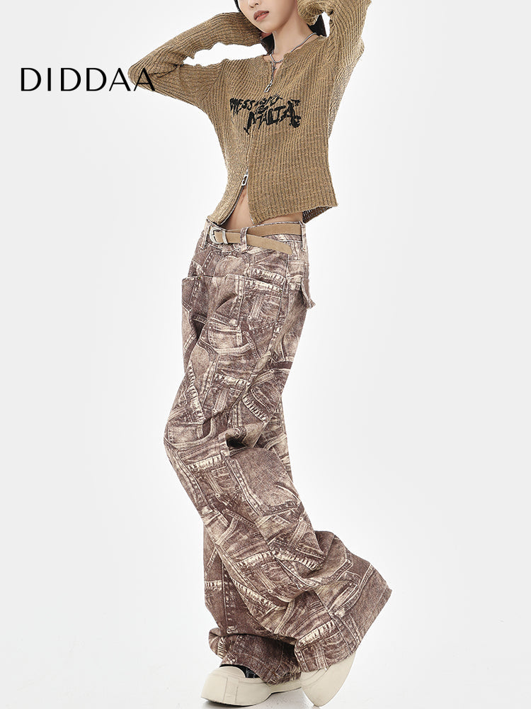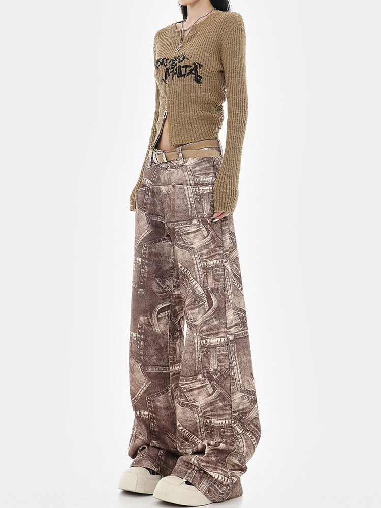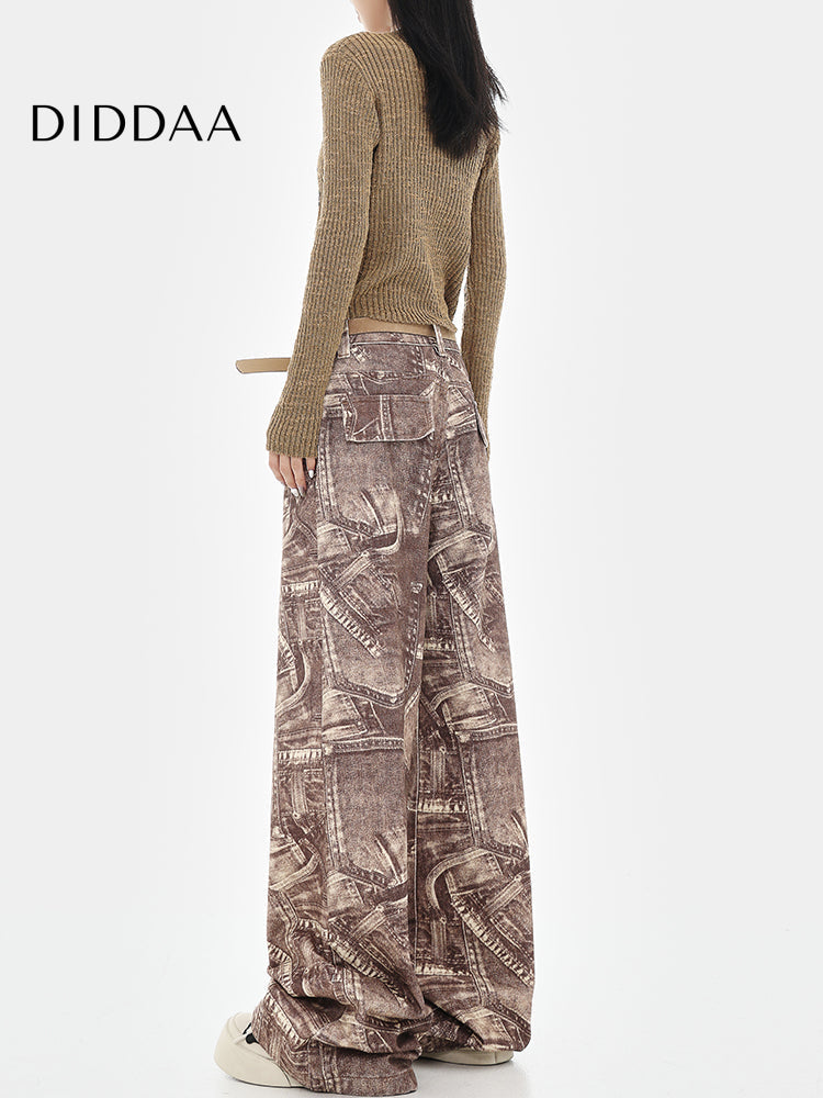 Blue Retro Tie-Dye High-Waisted Wide-Leg Jeans