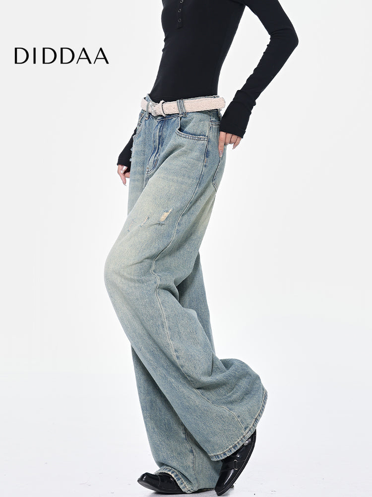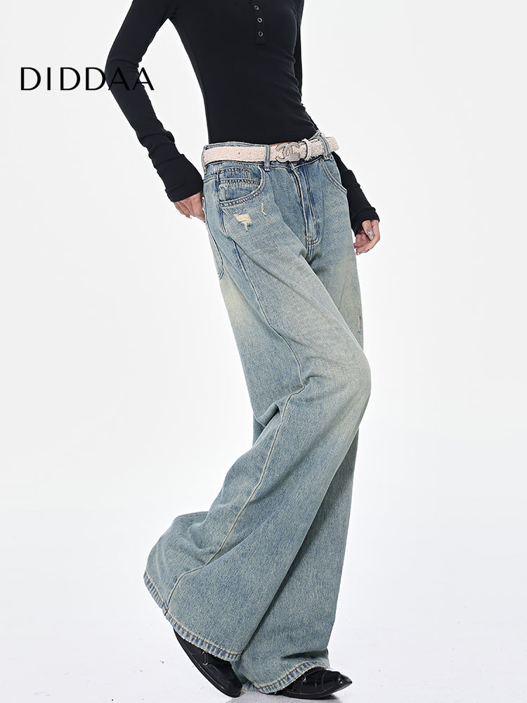 Blue Ripped High Waist Wide-Leg Jeans for Women